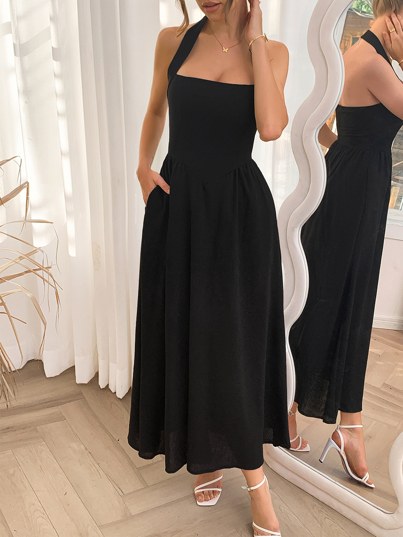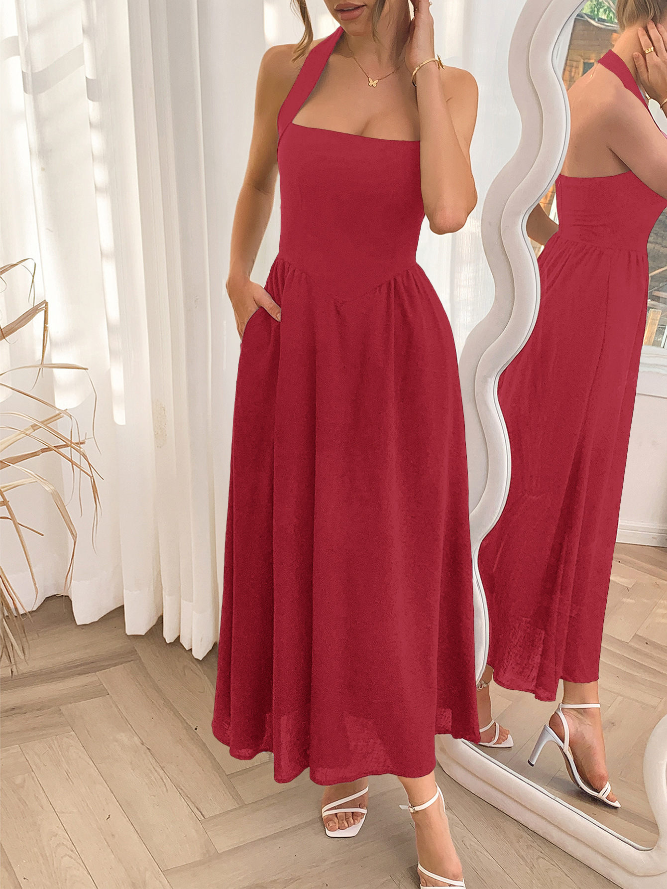 This Women Elegant Holidays Halter Neck Waist Dress Design Made Of High Quality polyester And Spandex Material. It Is Stretchy, Durable And Comfortable. Casual Dresses With Long Sleeves Can Not Only Be Worn As Outerwear In Spring And Autumn, But Also Matching a Jacket In Winter, It Is a Must Have Item For Every Season. Grab Really Great Buy Casual Dresses For Women And Grow Your Business. No Moq In BamBam.