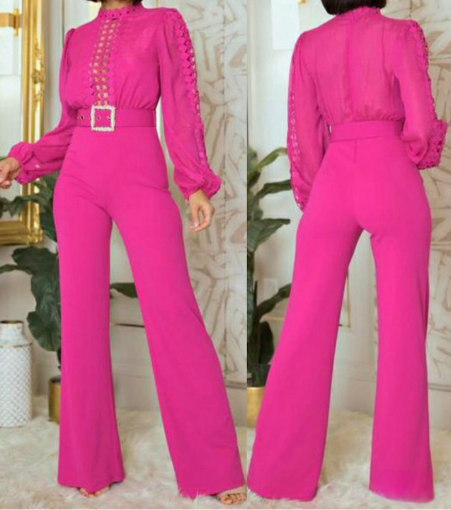 This Women Elegant Lace Patchwork Lace-Up Wide-Leg Jumpsuit Design Made Of High Quality Polyster And Spandex Material. It Is Stretchy, Durable And Comfortable. Affordable Sexy Jumpsuits For Women Has Long Been a Party Favorite. BamBam provides a Rich selection Of Sequin, Beaded, See Through Mesh, Leopard, Floral Lace, Leather, Velvet, Tight And Fitted retail Jumpsuit Without Moq Limit.