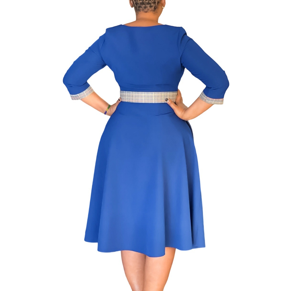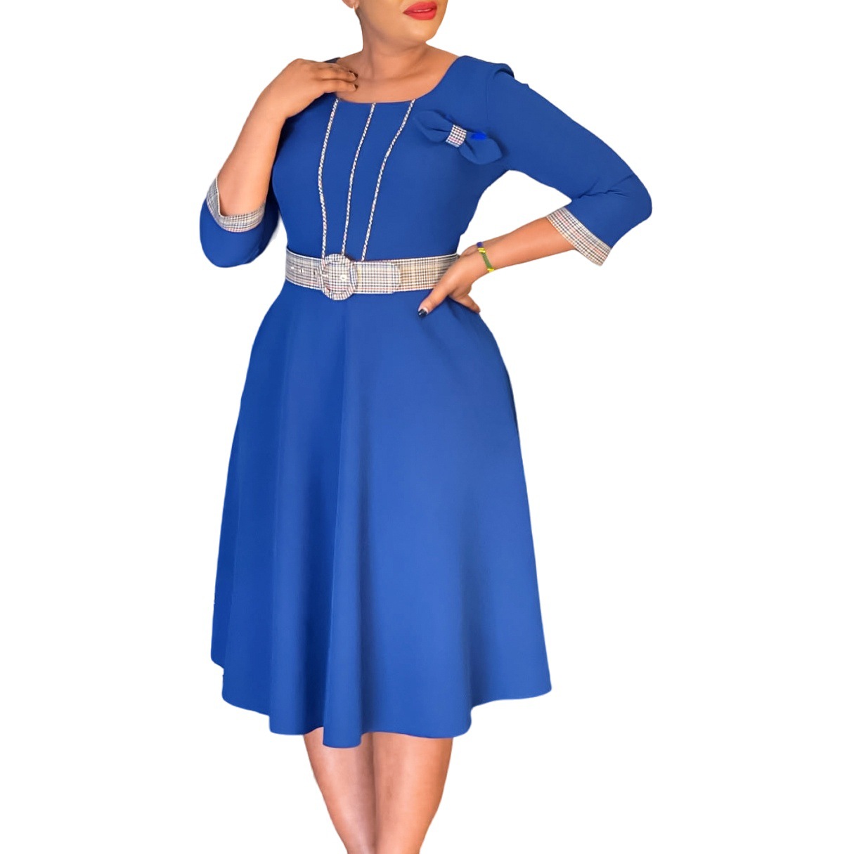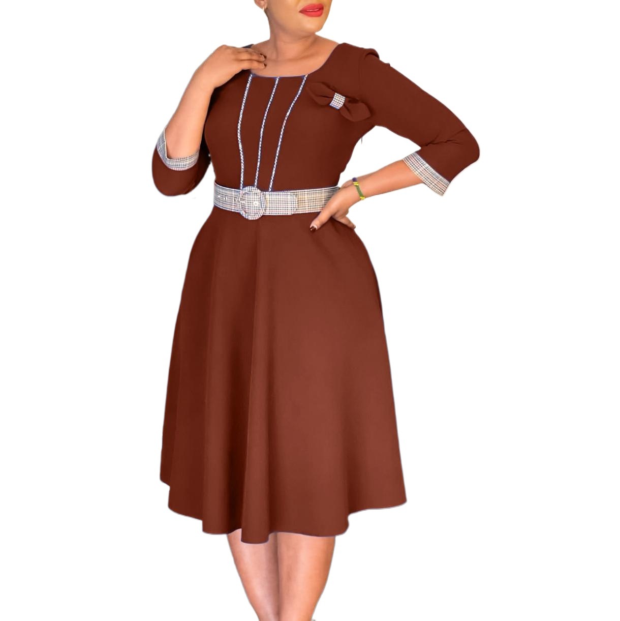This Women Elegant Round Neck Patchwork African Dress Design Made Of High Quality polyester And Spandex Material. It's nice and stretchy, feels and wears comfortably on your body. Women’s Midi dresses suits all Kinds Of Occasions - Daily Wear, Go To The Church, Commuting And Events Occasion. Midi Dresses can't be Boring, Find Best Midi Dresses At BamBam With Trendy Styles.