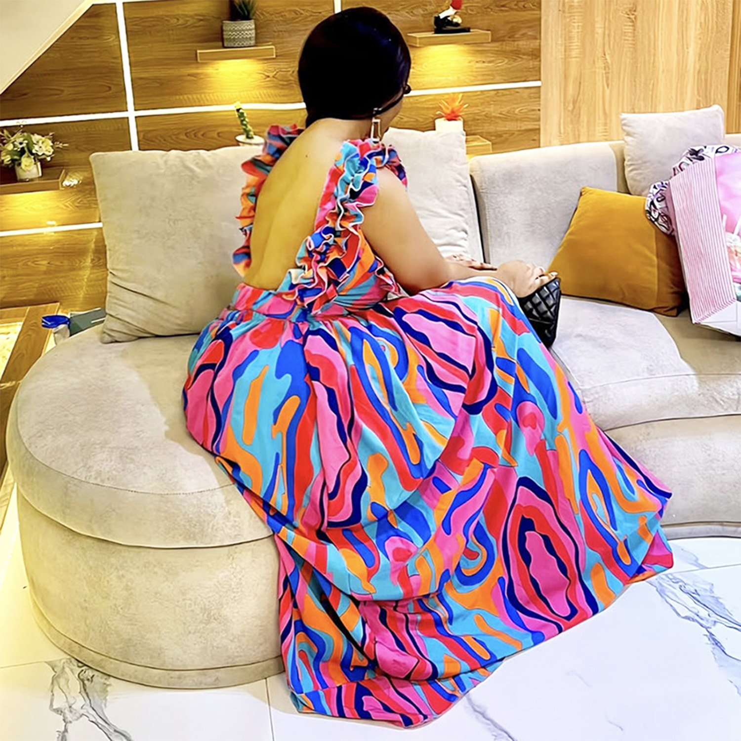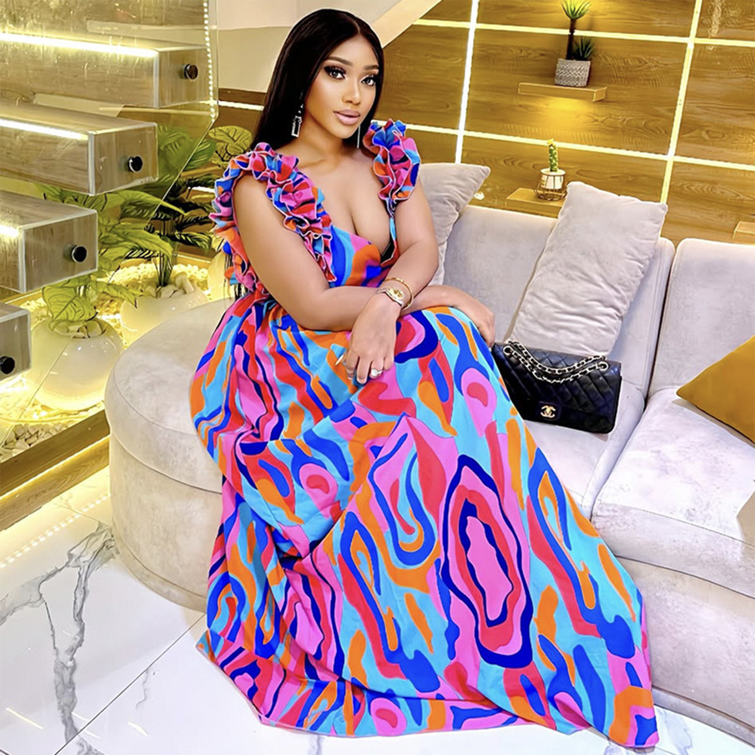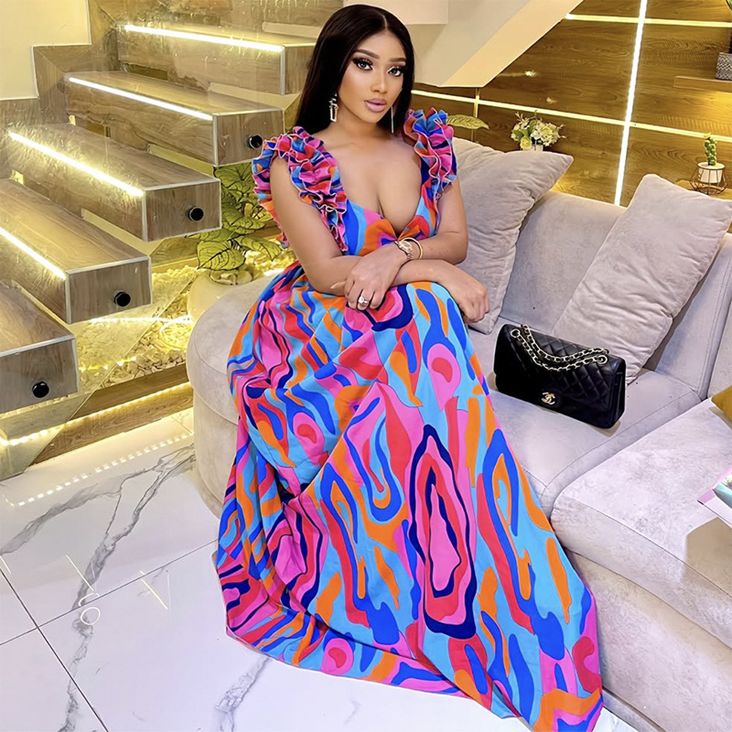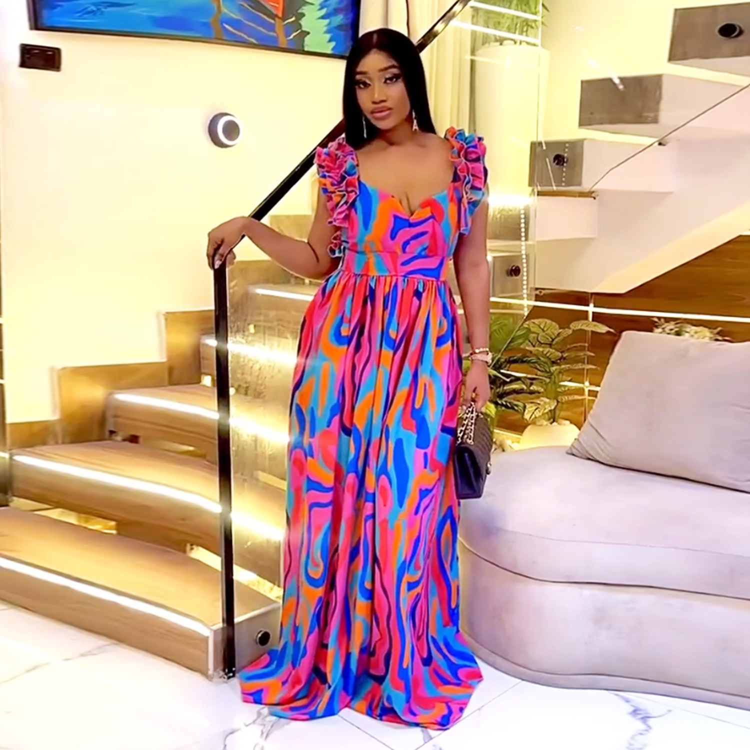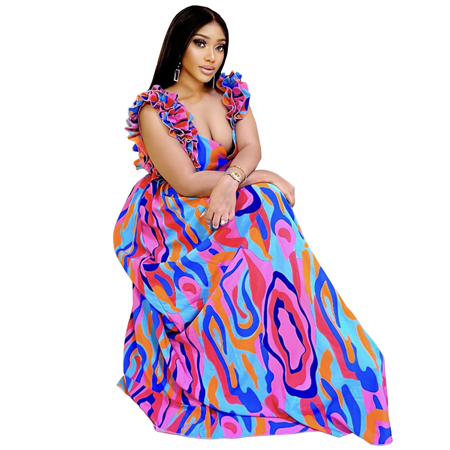 This Women Elegant Ruffled Shoulder Strap Printed Dress Design Made Of High Quality polyester And Spandex Material, Which Is Stretchy, Soft And Comfortable. The Is Always On Trend. This Casual Maxi Dresses Is a Must-Have For Vocations And Dating Occasions. Maxi Dresses At BamBam Comes With Huge Selections Of Colors, Sizes, Material, And Designs. When You Need retail affordable Maxi Dresses, You Can Always Find Vary Collection And No Moq On Our retail Women Fashion Online Store.