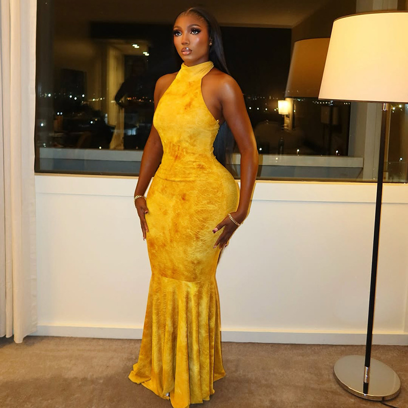 This Women Elegant Sexy Backless High Neck Bodycon Fishtail Dress Design Made Of High Quality polyester And Spandex Material. It smooth and stretchy And wears comfortably with a keen sense of freedom and ease. The Tight And Fitted Dress Is The Most Popular dress option for those that like to party hard. Shop Bodycon Dresses At BamBam And Find Amazing Designs Sequins, Beaded, Diamond, Crystals, Lace... BamBam retail Women Dresses Online Store is your one stop shop that helps By Providing Vary Dresses At quality and afforable prices with limitless variations.