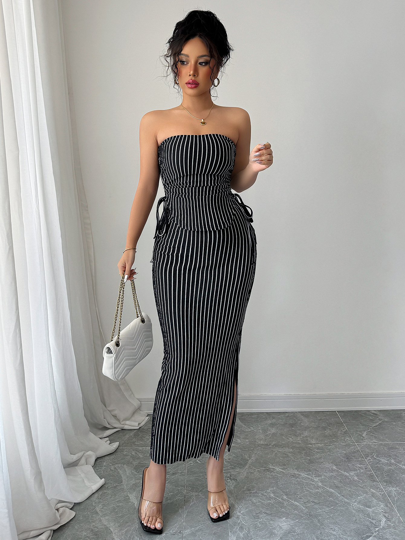 This Women Elegant Stripes Lace-Up Strapless Top And Bodycon Skirt Two-Piece Set Design Made Of High Quality polyester And Spandex Material. It Is Stretchy, Durable And Comfortable. It Come With The Top And Skirt Matching Set. Women’s Skirt Suit Sets Is a Great Alternative To One Piece Outfit. It Can Either Be Worn Together Or Individually, So You Can Combine Them Endlessly. Grab Different Two Piece Skirt Set retail On Our Website a Women's Clothing Store Online At Really affordable price And Enjoy fast delivery worldwide.
