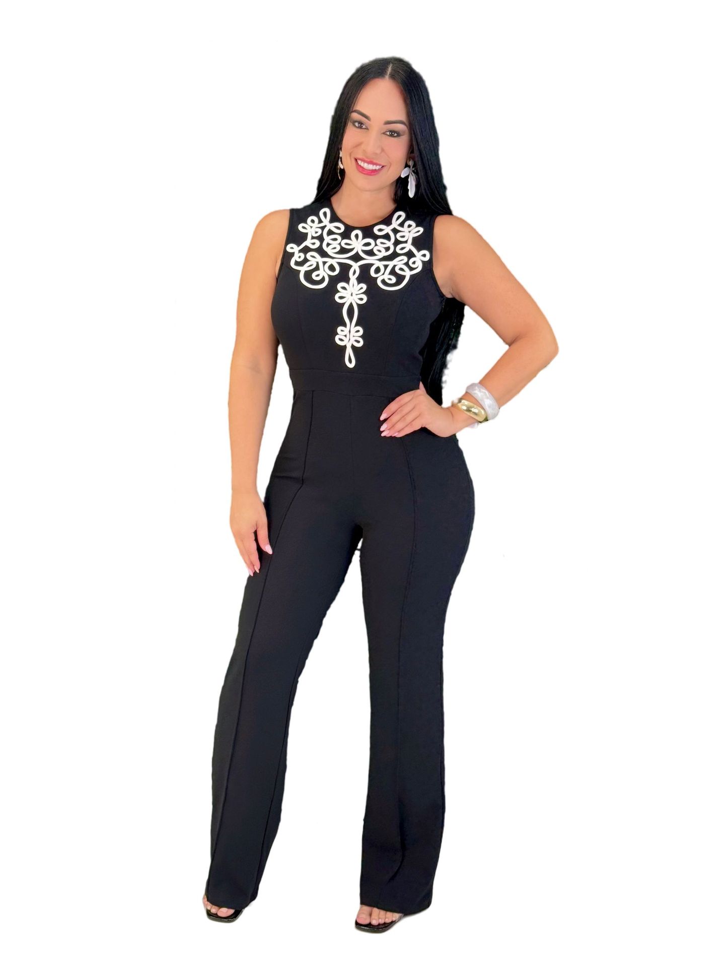 This Women Elegant Style Line Sleeveless Wide-Leg Jumpsuit Design Made Of High Quality Polyster And Spandex Material. It Is Stretchy, Durable And Comfortable. Affordable Sexy Jumpsuits For Women Has Long Been a Party Favorite. BamBam provides a Rich selection Of Sequin, Beaded, See Through Mesh, Leopard, Floral Lace, Leather, Velvet, Tight And Fitted retail Jumpsuit Without Moq Limit.