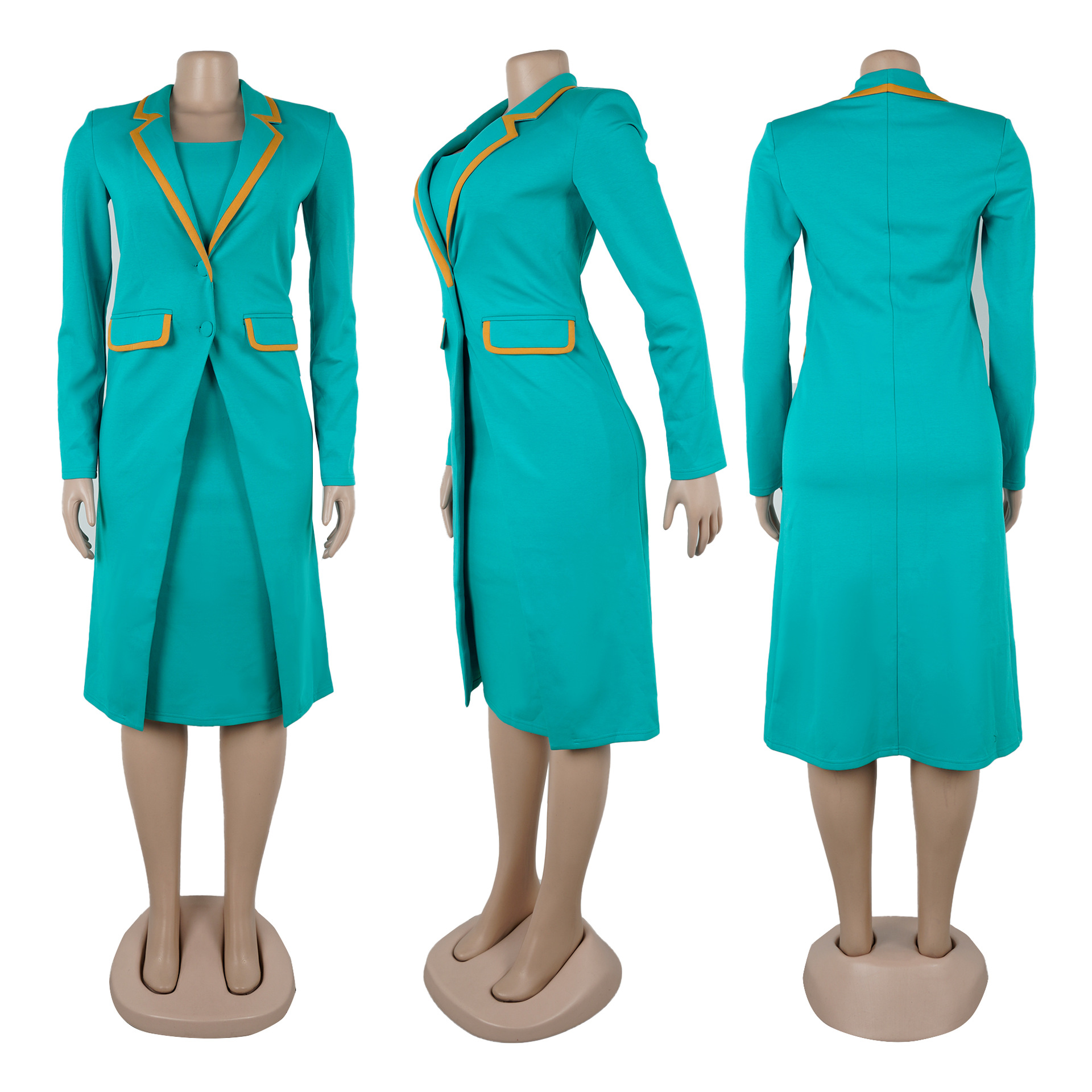 This Women Elegant Turndown Collar Stretchy Blazer Dress Two-Piece Set Made Of Durable And Comfortable Material. It Is a Must-Have Item For Commuting And Events. Ladies Blazer Can Be Found In All Seasons And All Occasions. No One Can Refuse The Temptation Of Blazers. Blazers Are No Longer Just Suitable For Business Occasions, Casual And Loose Cut Style Cheap retail Women’s Blazer Jackets Can Be Worn daily. Blazer Matching Women’s Pants Suits Looks More Business-Friendly And Can Be Worn To Work And Formal Occasions. When You Need More retail Women Blazers And Blazer Sets, You Can Always Find What You Need On Our retail Women Clothing Online Store.