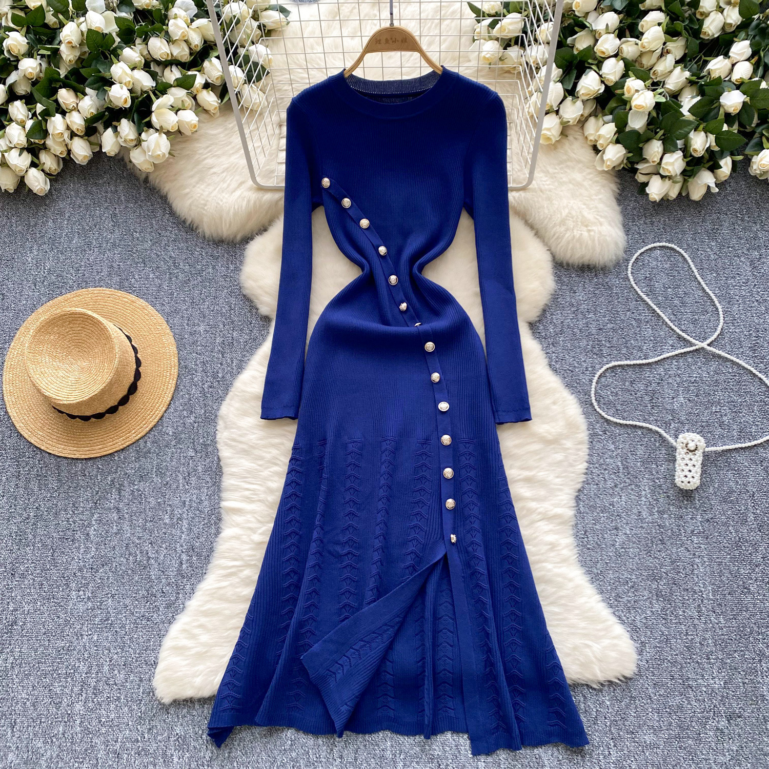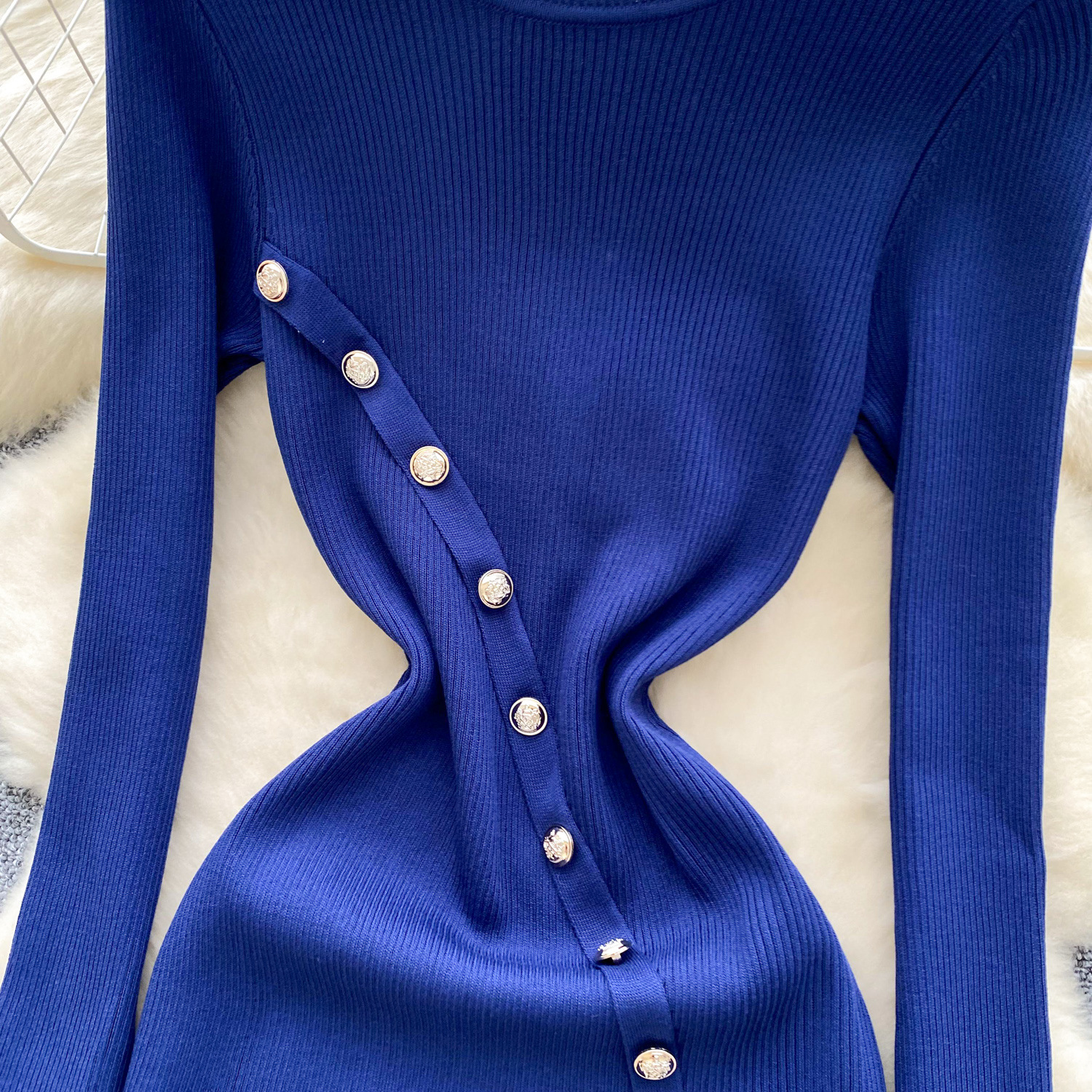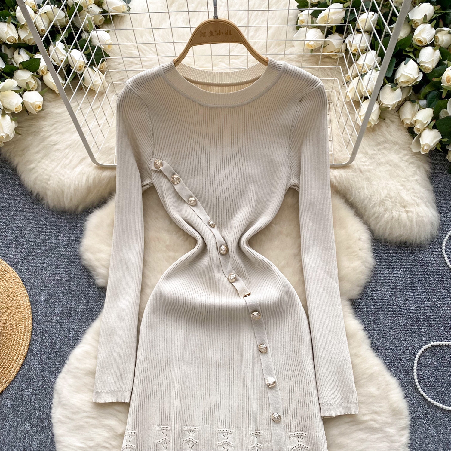 This Women Fall French Elegance Metal Button Ribbed Knitting Dress combines warmth with fashion. It Is a Must-Have Item For This Winter. Sweater Dresses For Women At BamBam are used for Different Occasions - Daily Life, Party Knitting Dresses, And Sweater Dresses For Work. When You Need retail Sweater Dresses, You Can Always Find What You Need On Our retail Female Garment Online Store.