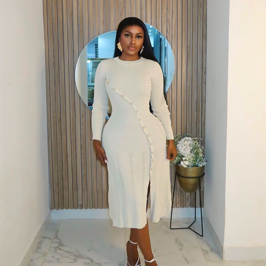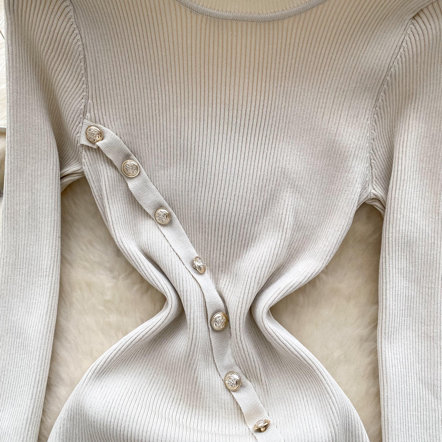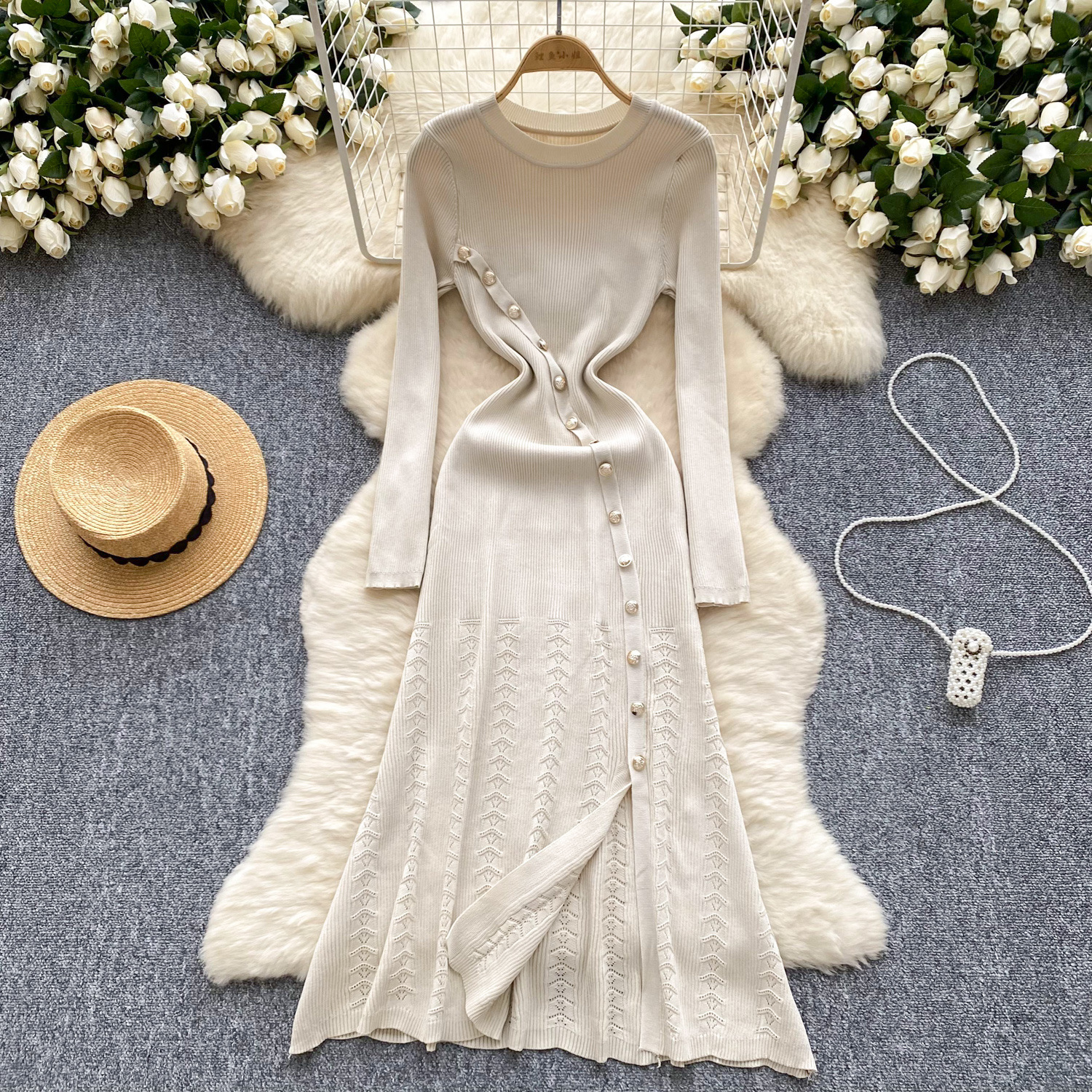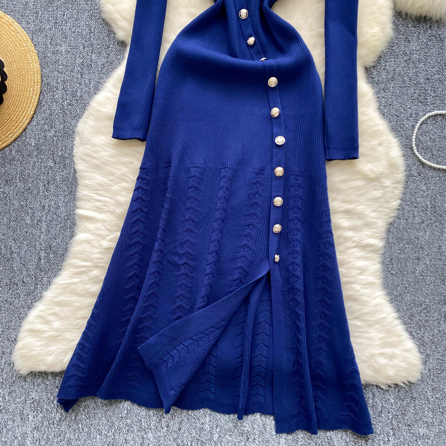 This Women Fall French Elegance Metal Button Ribbed Knitting Dress combines warmth with fashion. It Is a Must-Have Item For This Winter. Sweater Dresses For Women At BamBam are used for Different Occasions - Daily Life, Party Knitting Dresses, And Sweater Dresses For Work. When You Need retail Sweater Dresses, You Can Always Find What You Need On Our retail Female Garment Online Store.