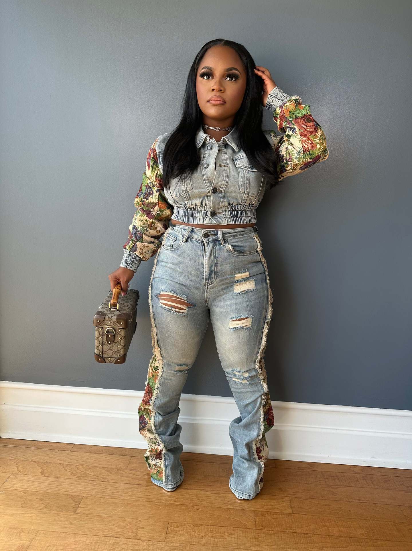This Women Fall Retro Patchwork Camouflage Print Top And Denim Pants Two Piece Set Design Made Of High Quality polyester And Spandex Material. It Is Stretchy, Durable And Comfortable. It Is a Must-Have Outfit For All Seasons. retail Two Piece Pant Sets Can Solve Your cloth selection Troubles. Explore More 2 Piece Pants Set On BamBam retail Women Clothing Online Store.