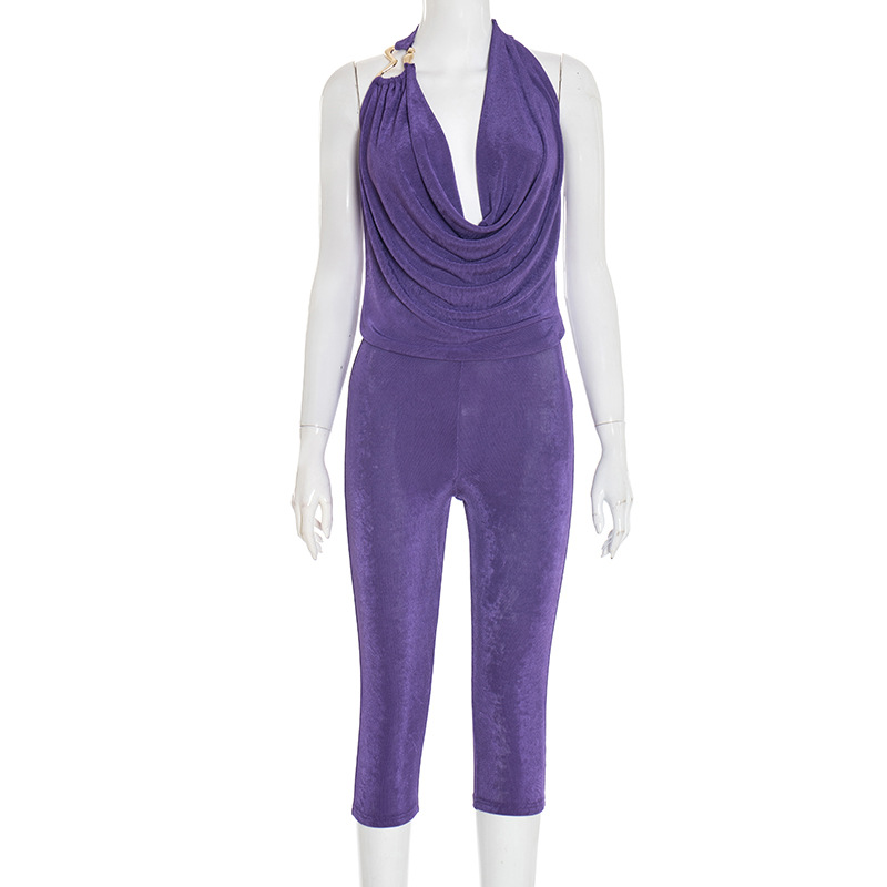 This Women Fall Sexy Halter Neck Top And Capri Two-Piece Set Design Made Of High Quality polyester And Spandex Material. It Is Stretchy, Durable And Comfortable. It Come With The Top And Shorts. retail Short Sets Saves Some People From The Trouble Of Matching. And For Matchmakers It Is More Flexible Than One-Piece Outfit. Two Piece Short Set Can Be Worn Together Or Individually, Ladies Can Match Them According To Different Occasions. Grab Different Two Piece Short Sets For This Spring And Summer.