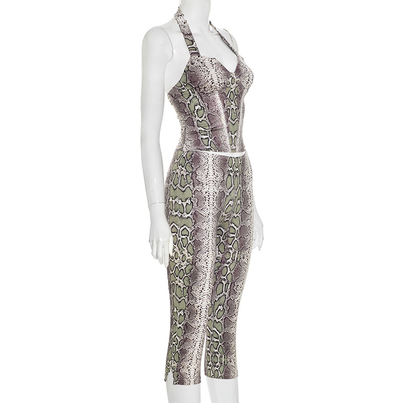 This Women Fall Snake Print Halter Neck Sleeveless Top And Pants Two-Piece Set Design Made Of High Quality polyester And Spandex Material. It Is Stretchy, Durable And Comfortable. It Come With The Top And Shorts. retail Short Sets Saves Some People From The Trouble Of Matching. And For Matchmakers It Is More Flexible Than One-Piece Outfit. Two Piece Short Set Can Be Worn Together Or Individually, Ladies Can Match Them According To Different Occasions. Grab Different Two Piece Short Sets For This Spring And Summer.