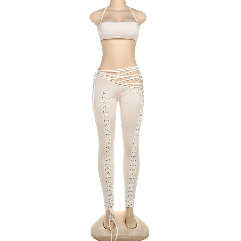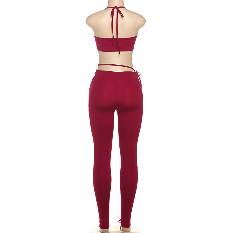 This Women Fall Solid Halter Neck Lace-Up Top And Pants Two-Piece Set Design Made Of High Quality polyester And Spandex Material. It Is Stretchy, Durable And Comfortable. It Is a Must-Have Outfit For All Seasons. retail Two Piece Pant Sets Can Solve Your cloth selection Troubles. Explore More 2 Piece Pants Set On BamBam retail Women Clothing Online Store.