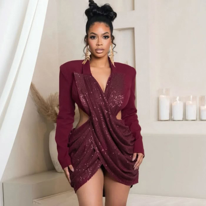 This Women Fall Solid Sequined Long-Sleeved Elegant Patchwork Dress Design Made Of High Quality polyester And Spandex Material. It Is Stretchy, Durable And Comfortable. Casual Dresses With Long Sleeves Can Not Only Be Worn As Outerwear In Spring And Autumn, But Also Matching a Jacket In Winter, It Is a Must Have Item For Every Season. Grab Really Great Buy Casual Dresses For Women And Grow Your Business. No Moq In BamBam.