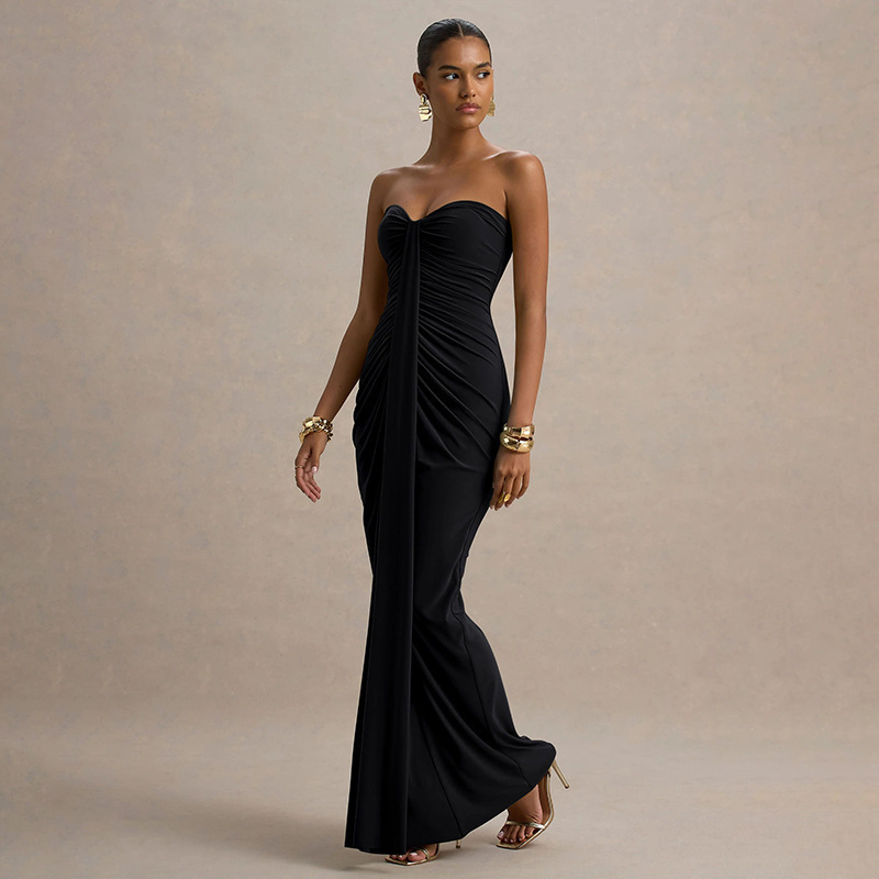 This Women Fall Strapless Solid Pleated Ribbon Dress Design Made Of Good Quality Polyester And Spandex Material, Which Is Stretchy, Durable And Comfortable. The Long Evening Dresses And Gowns Is Always The main Choice For All Kinds Of Parties, Cocktail, Prom, Events, And Dating Occasions. Evening Gowns At BamBam Comes With Huge Selections - Sequins, Beaded, Satin, Velvet, Lace.... When You Need retail Evening Dresses, BamBam retail Women Garment Online Shop Is Your One-Stop Online Shopping Choice.