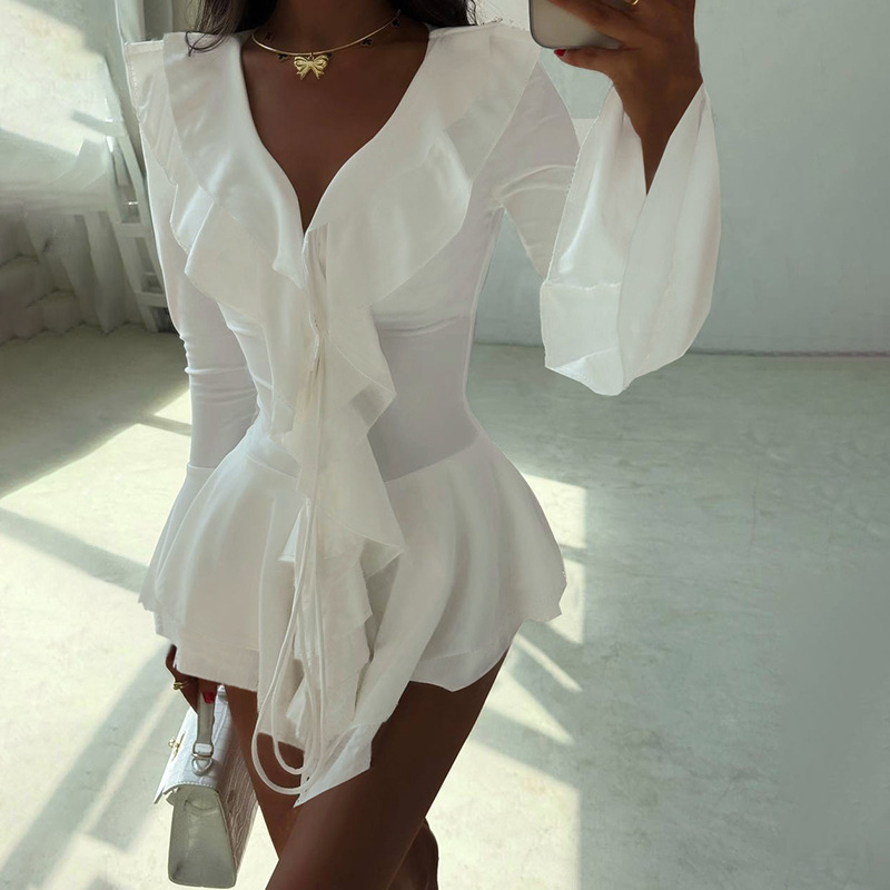 This Women Fall v-Neck Lace-Up Ruffle Bell Bottom Sleeve Dress Design Made Of High Quality polyester And Spandex Material. It Is Stretchy, Durable And Comfortable. Casual Dresses With Long Sleeves Can Not Only Be Worn As Outerwear In Spring And Autumn, But Also Matching a Jacket In Winter, It Is a Must Have Item For Every Season. Grab Really Great Buy Casual Dresses For Women And Grow Your Business. No Moq In BamBam.