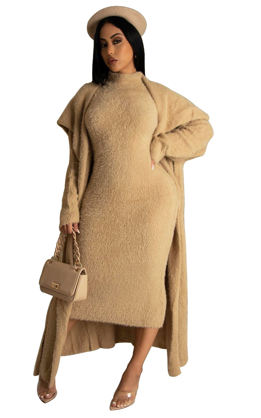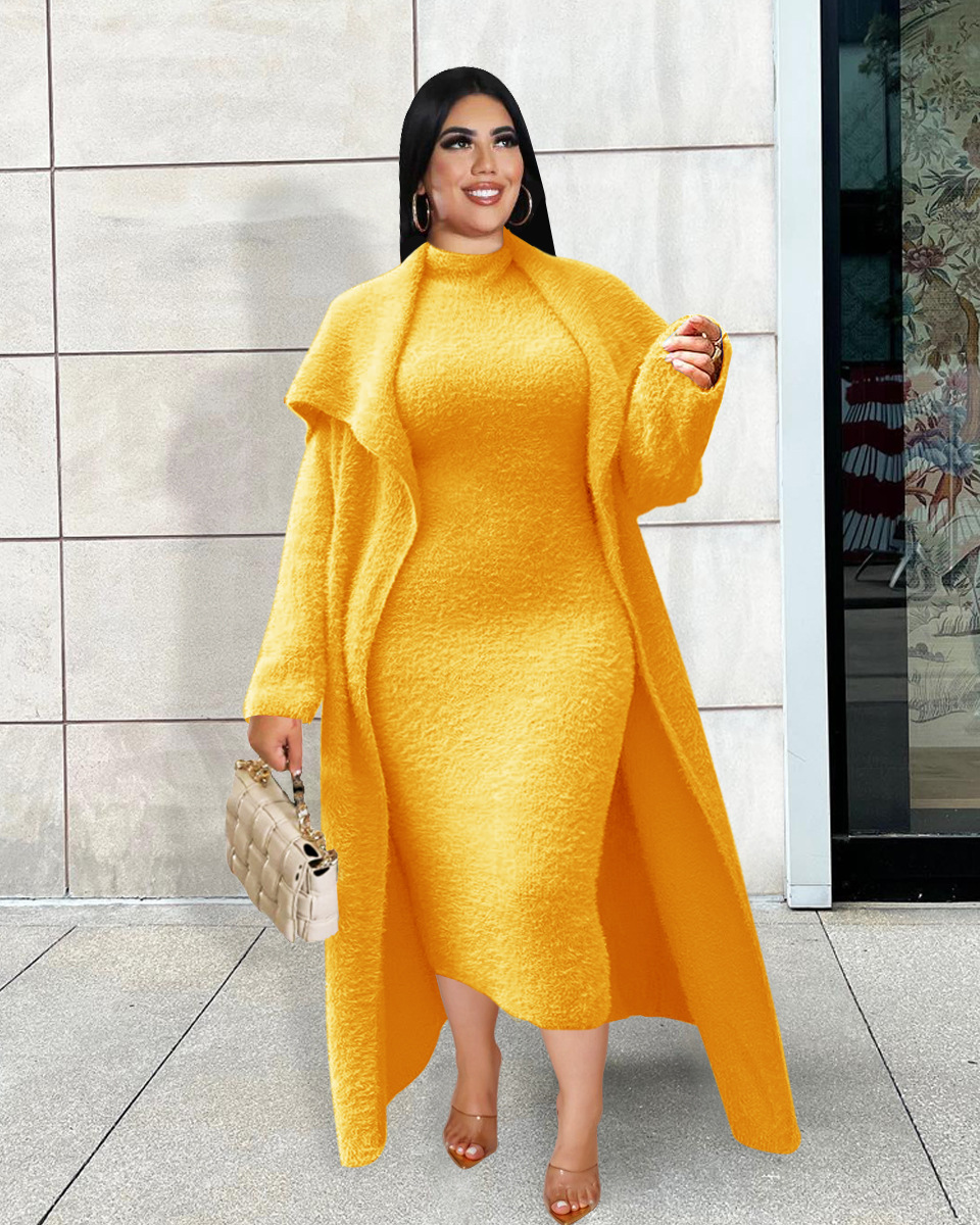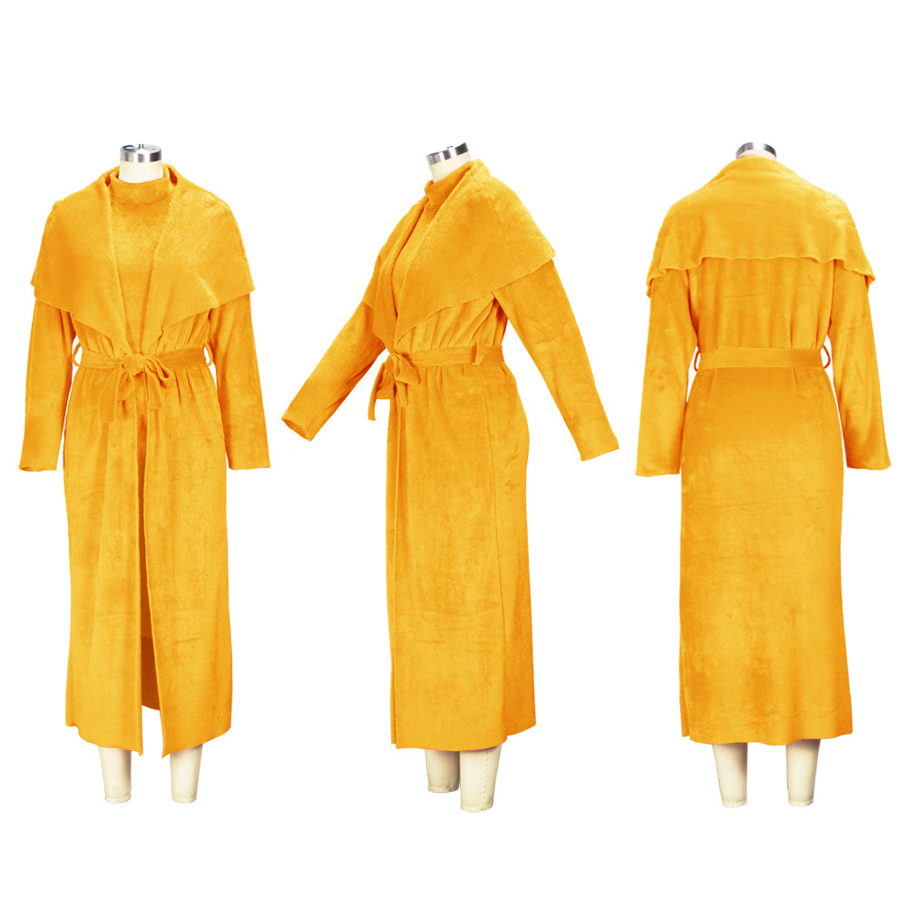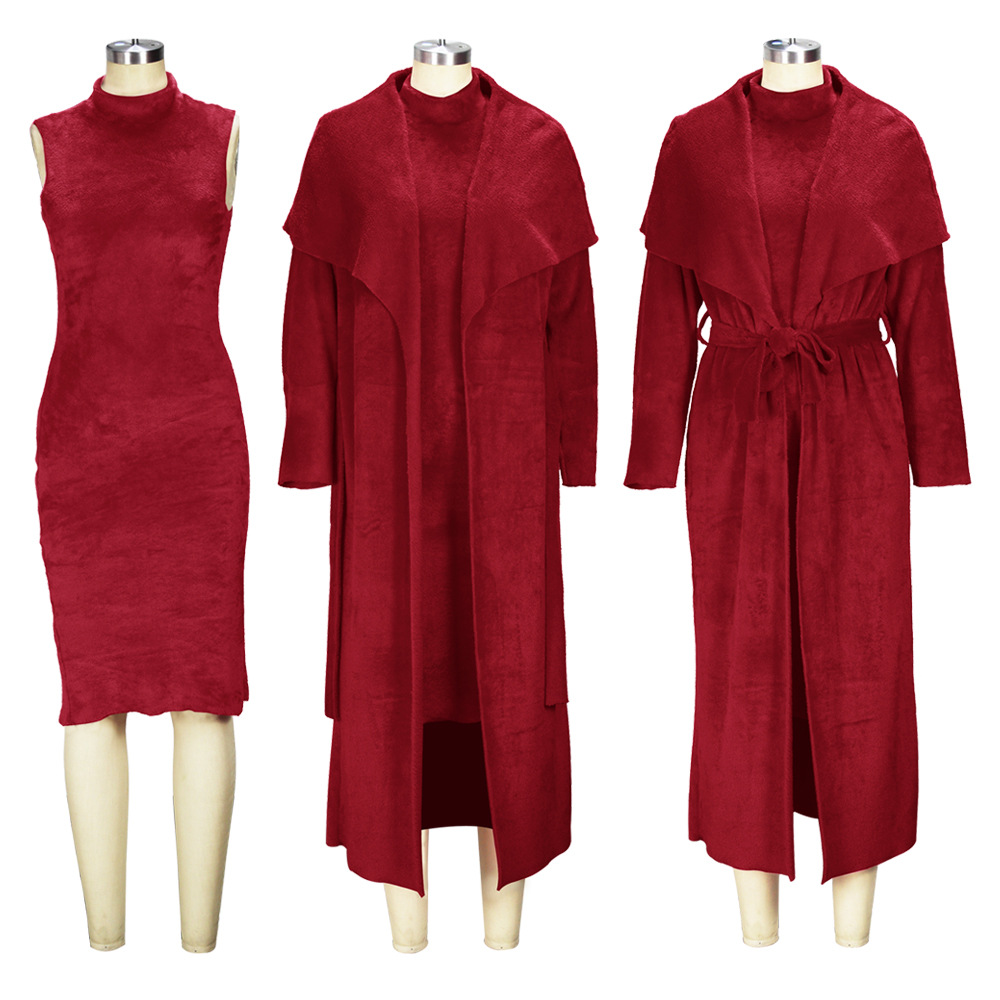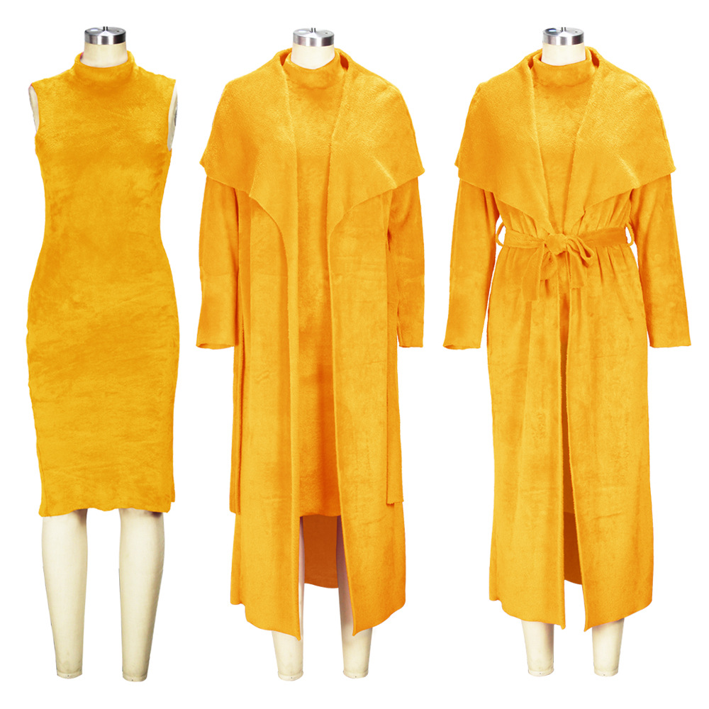 This Women Fall/Winter Dress And Jacket Two-Piece Set Design Made Of High Quality polyester And Spandex Material. It Is Stretchy, Durable And Comfortable. Casual Dresses With Long Sleeves Can Not Only Be Worn As Outerwear In Spring And Autumn, But Also Matching a Jacket In Winter, It Is a Must Have Item For Every Season. Grab Really Great Buy Casual Dresses For Women And Grow Your Business. No Moq In BamBam.
