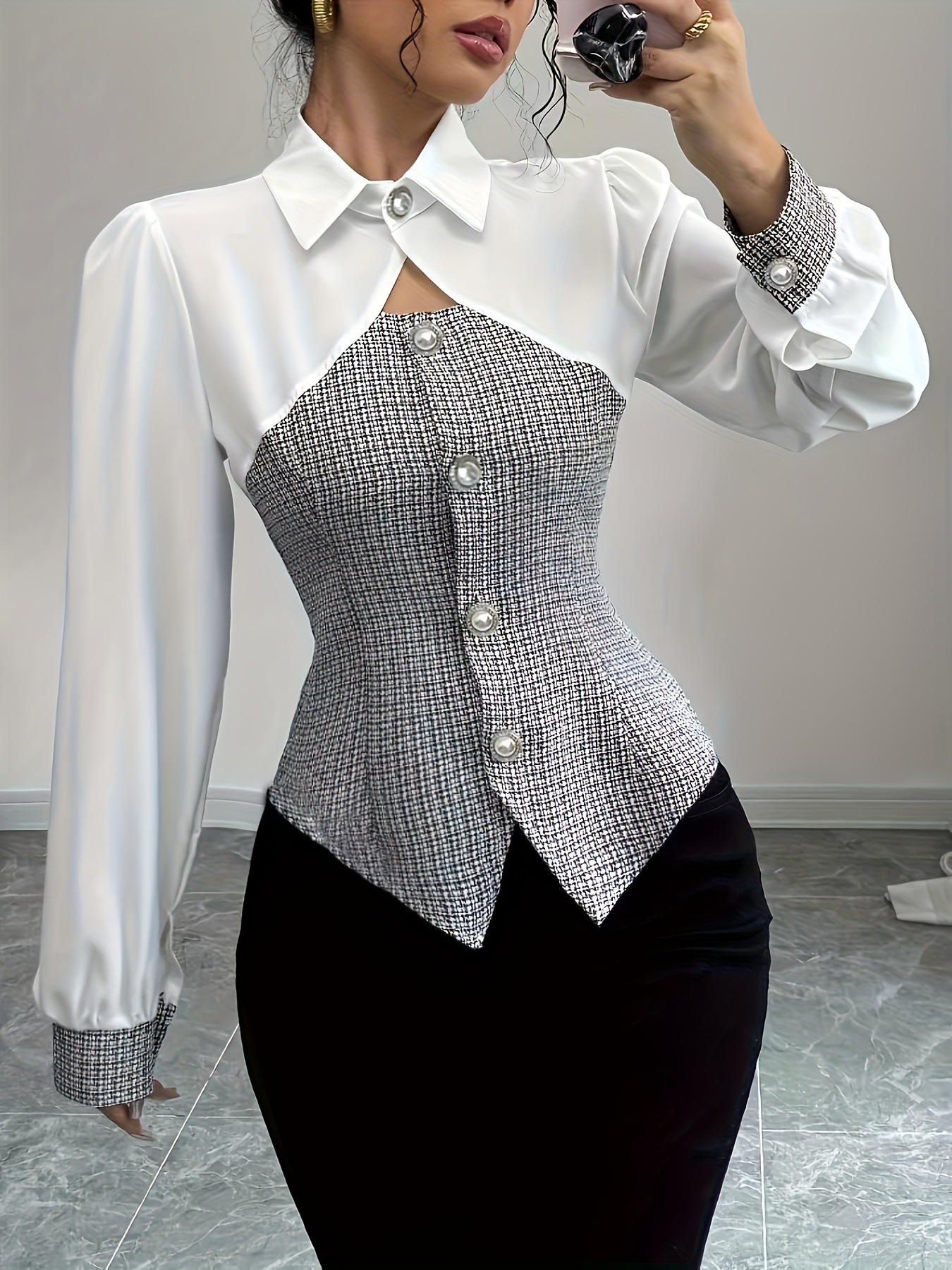 This Women Fall/Winter Elegant Contrasting Long-Sleeved Turndown Collar Lining Is Soft And Comfortable. From Street Style cropped inspired design To Party Sexy Satin Tunics Blouse, From Office Elegant Silk To Holiday Loose Cut Chiffon Blouse, From Classic Stripes To Plaid Shirt, From Basic White Color To Printed Floral Blouse. retail Blouses And Tops For Ladies Is a Must-Have Item in your wardrobe. BamBam Shirts And Blouses Online Are Available In Wide Range Designs. When You Need More retail Women Clothing, You Can Always Find Something Special That You Really Can Not Get From Other Places.