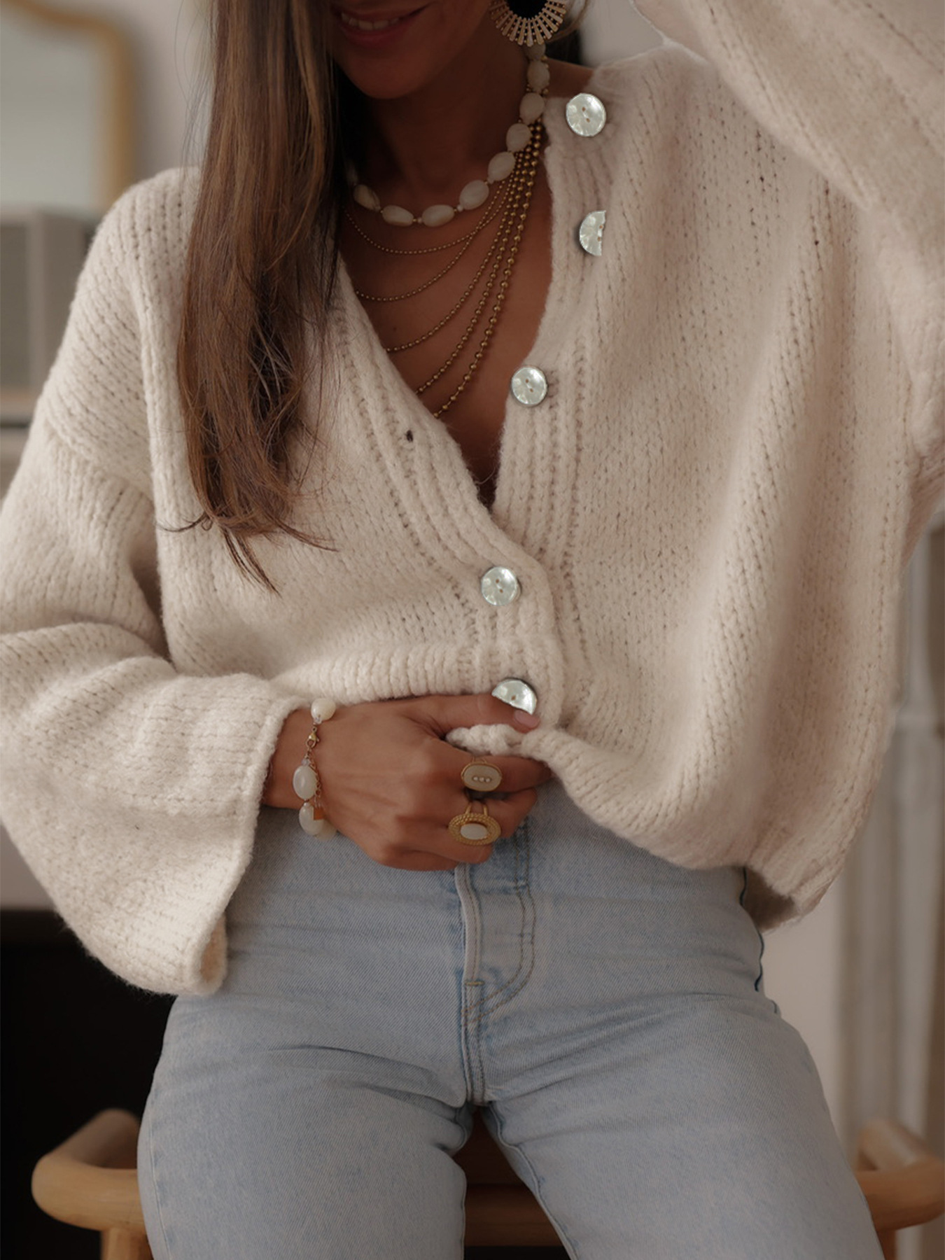 This Women Fall/Winter French Elegant Solid Knitting Coat And Sweater Is An Indispensable Beautiful piece to have to keep warm In Cozy Winter. Women’s retail Sweaters And Cardigans At BamBam Combine warmth with Fashion. Best Oversized Sweaters Have Long Been The main Favorite. It’s So Easy To Match a Large Sweater, Sometimes The Coat Can Be Ignored. Oversized Sweater With Short Skirt Is Dignified And Attractive. Oversized Sweater With Skirt Is Elegant And Sweet. Oversized Sweaters With Over-The-Knee Boots Can Easily Create a Sense Of Maturity And Femininity. Oversized Sweaters Paired With Shorts Are Full Of Youthful Vitality And Look More Dynamic And Energetic!