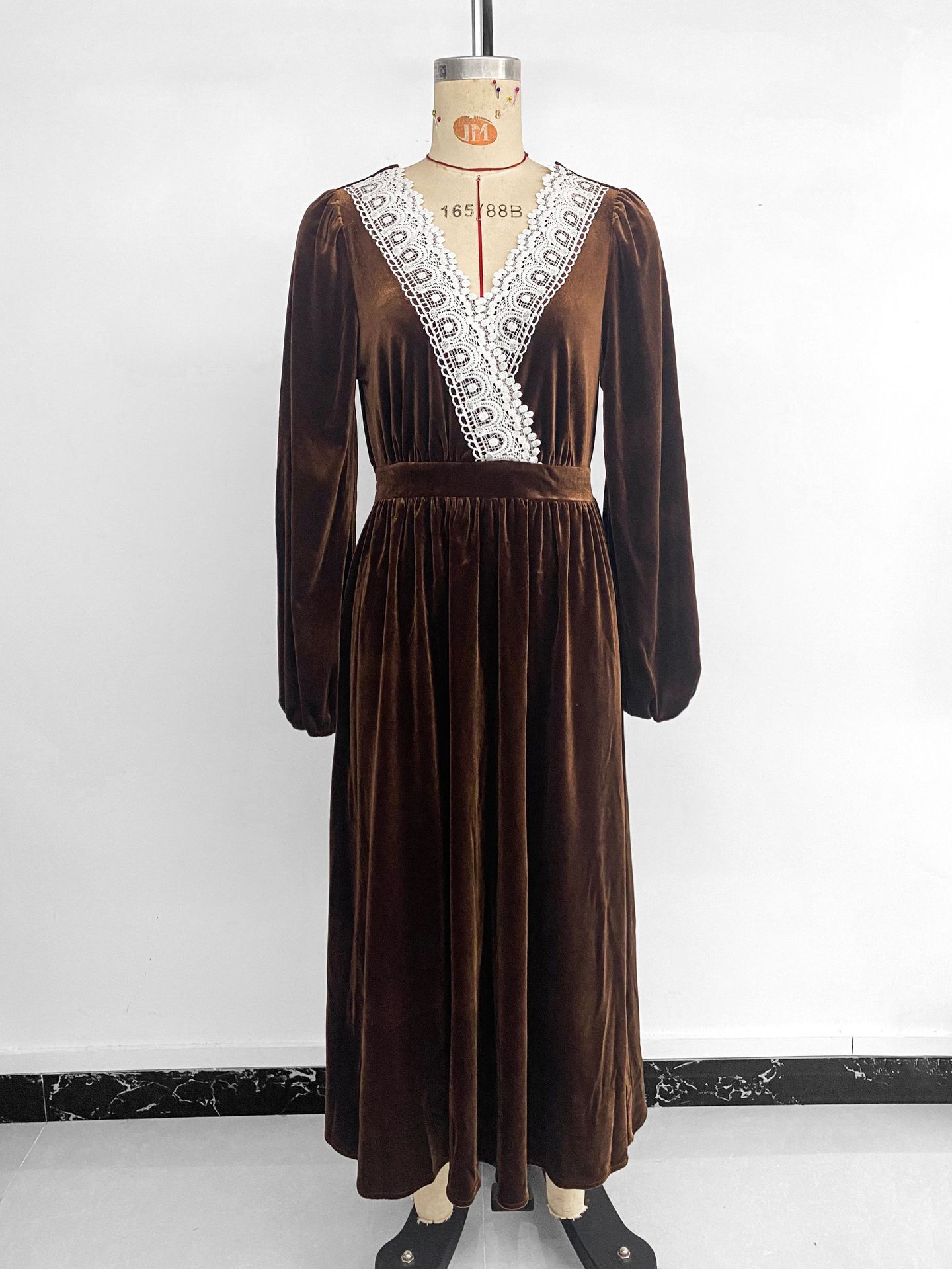 This Women Fall/Winter Patchwork Lace v-Neck Long-Sleeved Velvet Maxi Dress Design Made Of High Quality polyester And Spandex Material. It's nice and stretchy, feels and wears comfortably on your body. Women’s Midi dresses suits all Kinds Of Occasions - Daily Wear, Go To The Church, Commuting And Events Occasion. Midi Dresses can't be Boring, Find Best Midi Dresses At BamBam With Trendy Styles.