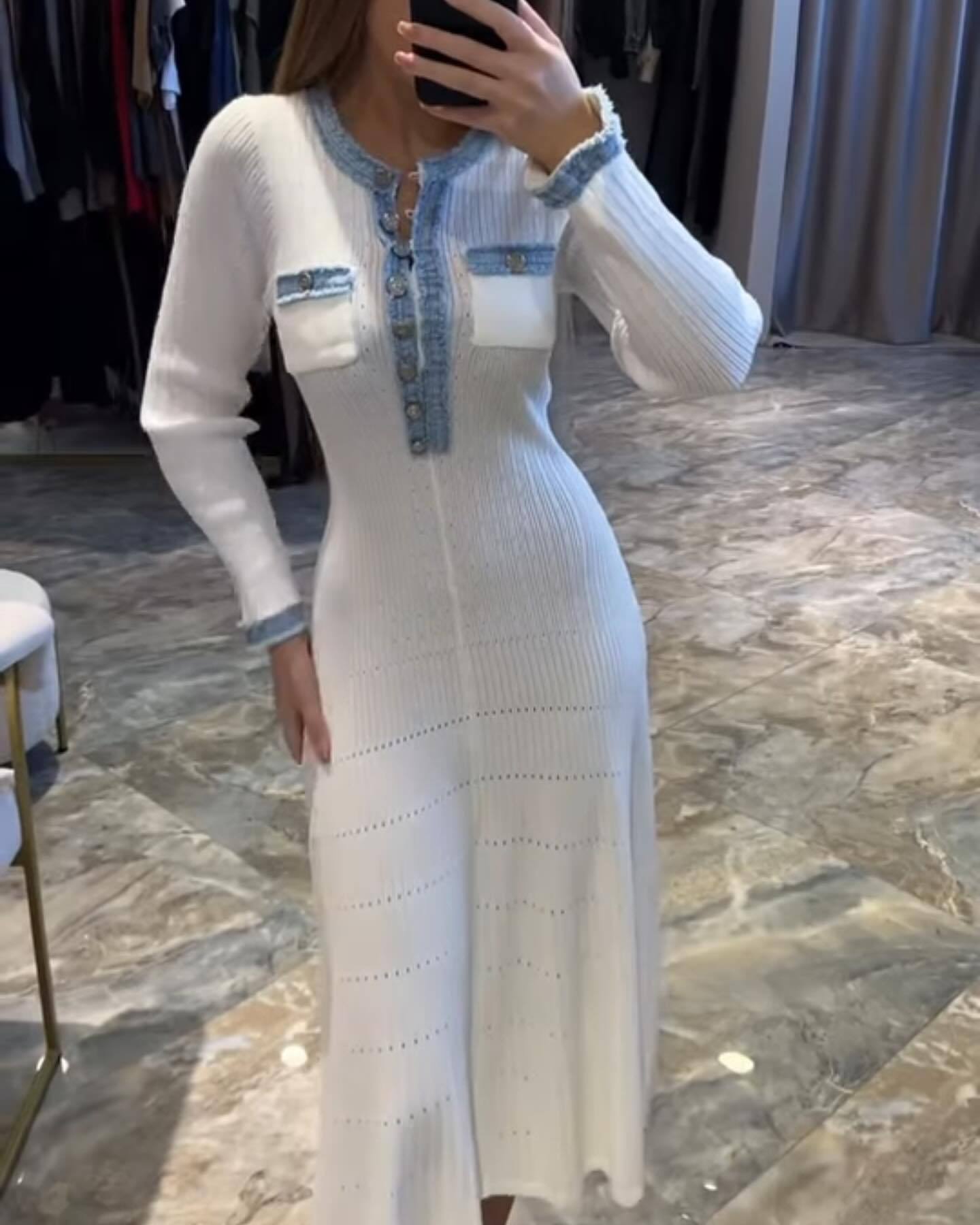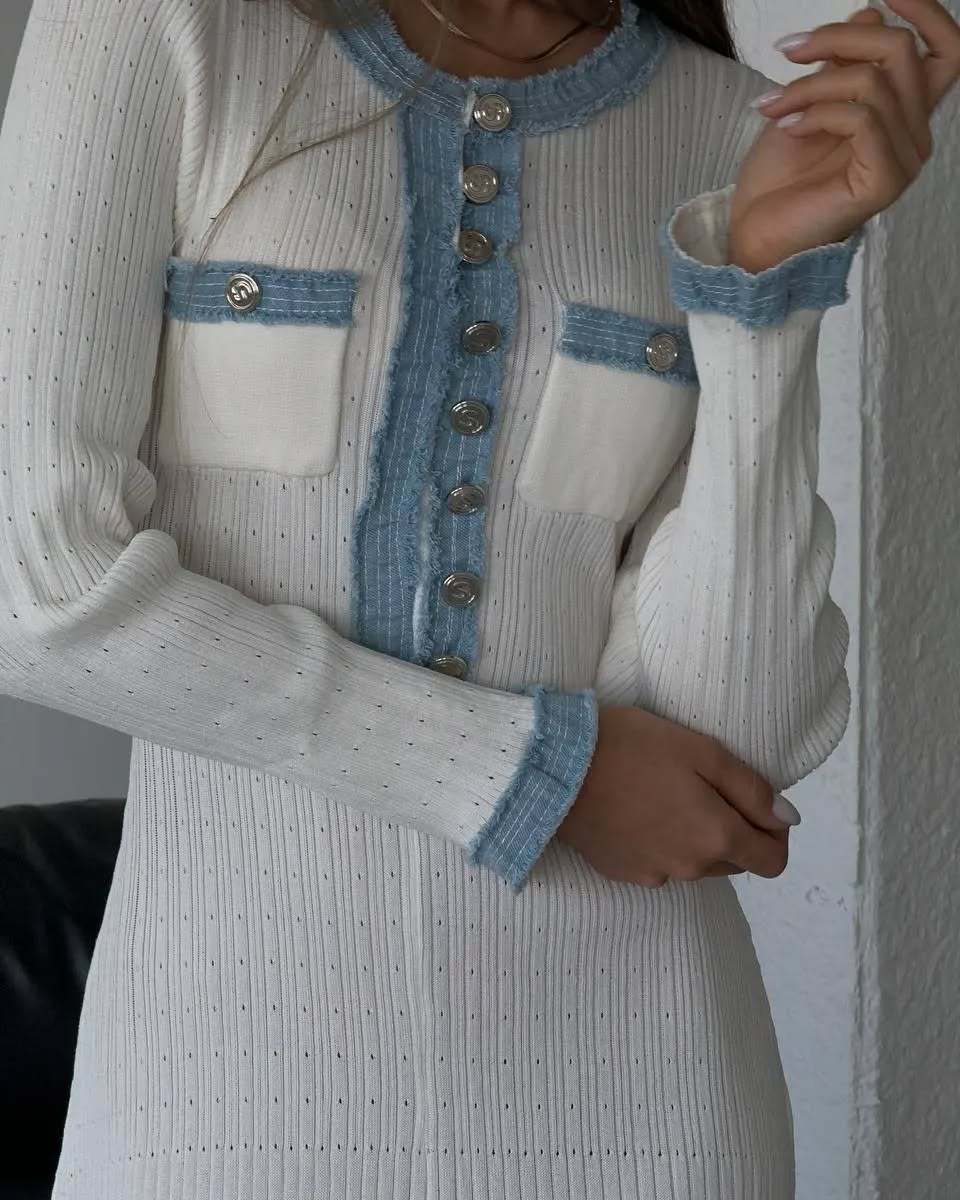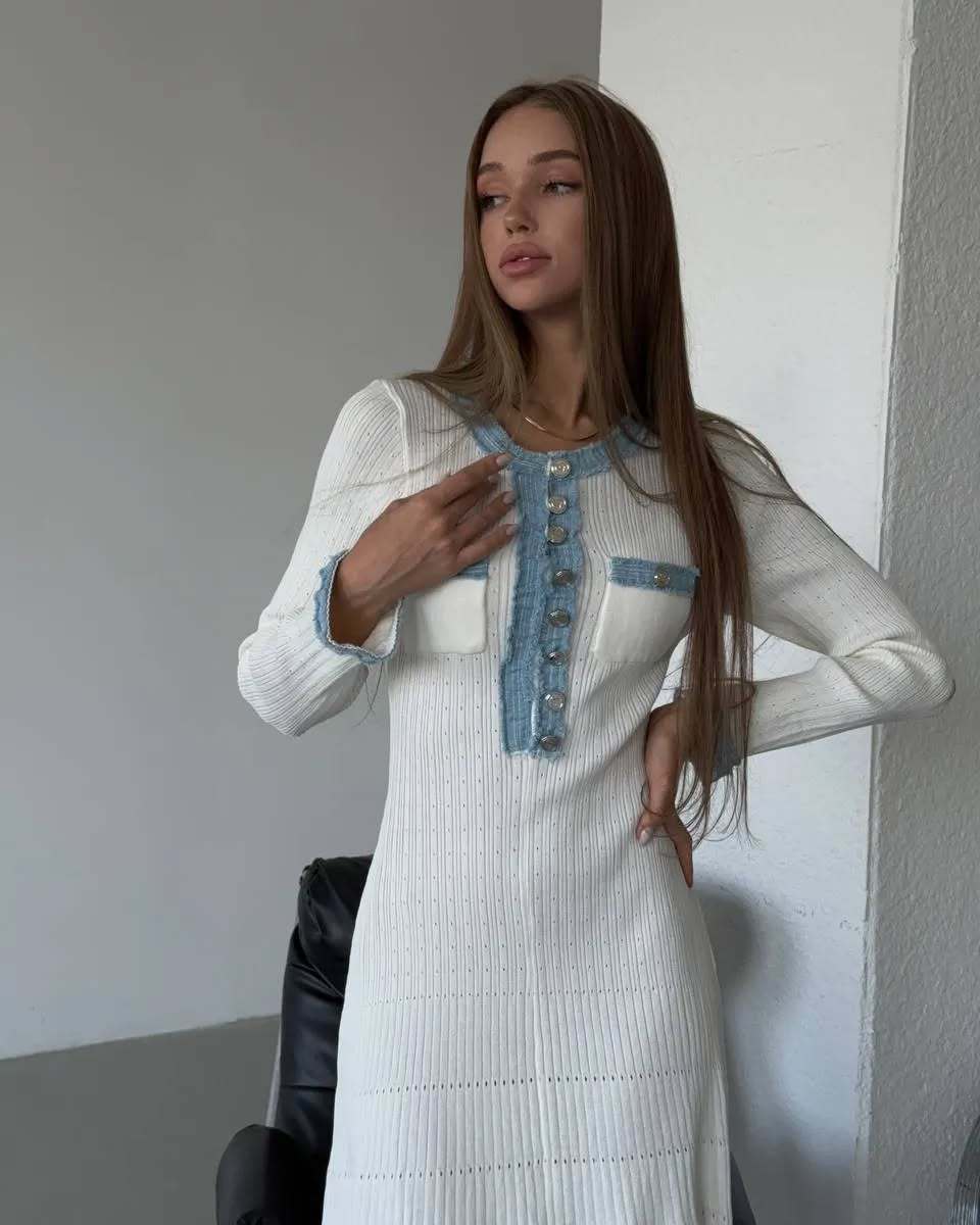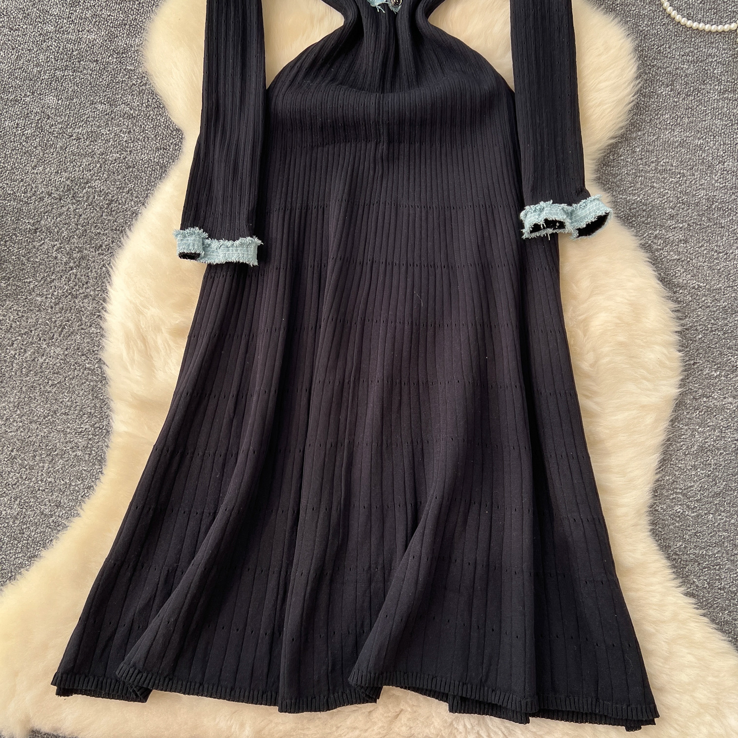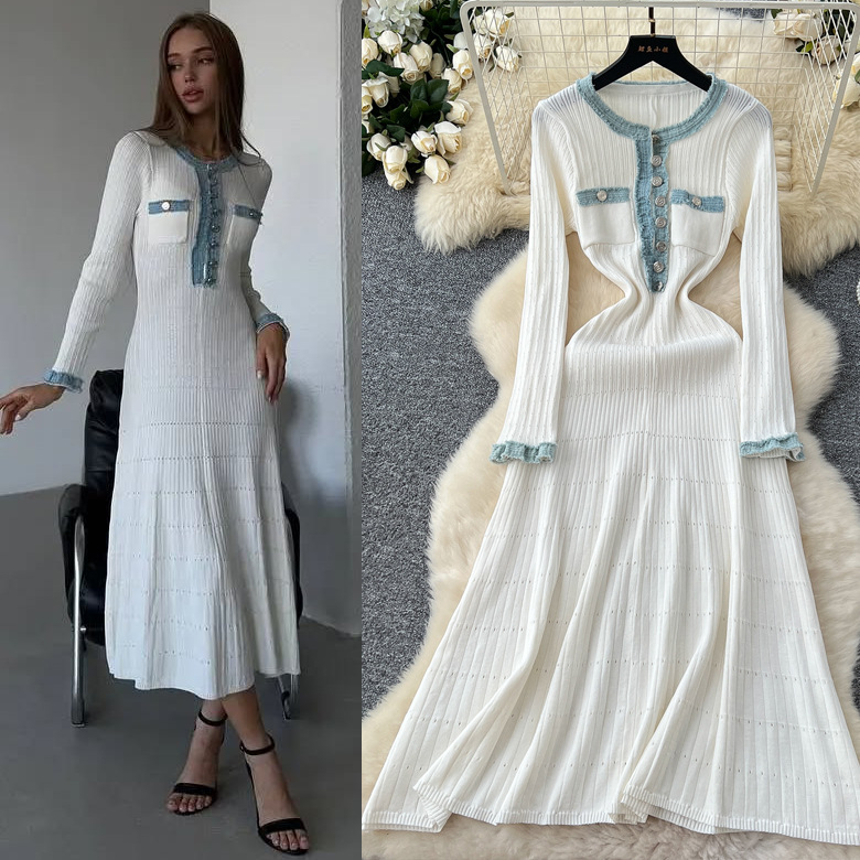 This Women Fall/Winter Round Neck Denim Patchwork Long-Sleeved Knitting Dress combines warmth with fashion. It Is a Must-Have Item For This Winter. Sweater Dresses For Women At BamBam are used for Different Occasions - Daily Life, Party Knitting Dresses, And Sweater Dresses For Work. When You Need retail Sweater Dresses, You Can Always Find What You Need On Our retail Female Garment Online Store.