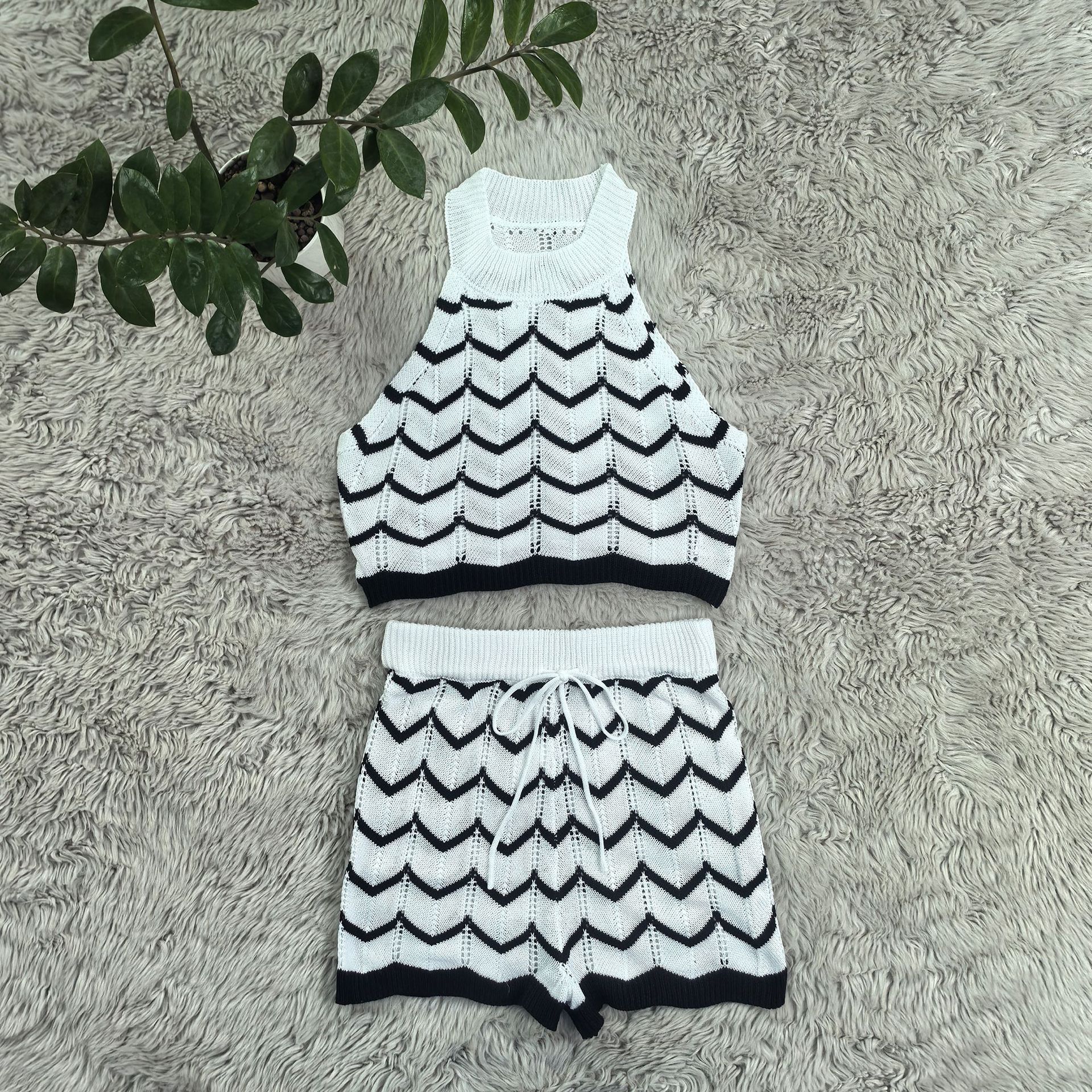 This Women Fashion Casual Stripes Halter Neck Knitting Tank Shorts Set Design Made Of High Quality polyester And Spandex Material. It Is Stretchy, Durable And Comfortable. It Come With The Top And Shorts. retail Short Sets Saves Some People From The Trouble Of Matching. And For Matchmakers It Is More Flexible Than One-Piece Outfit. Two Piece Short Set Can Be Worn Together Or Individually, Ladies Can Match Them According To Different Occasions. Grab Different Two Piece Short Sets For This Spring And Summer.