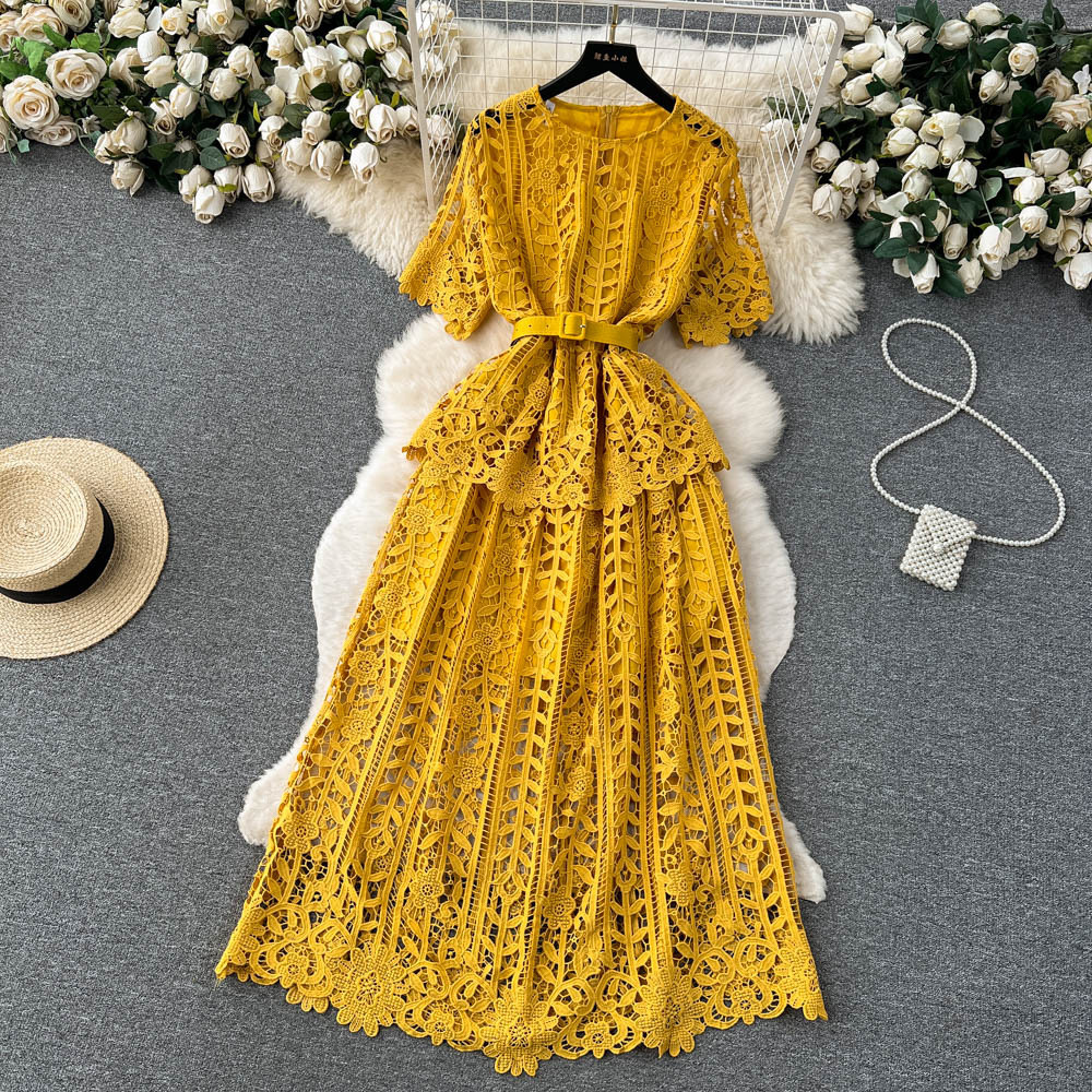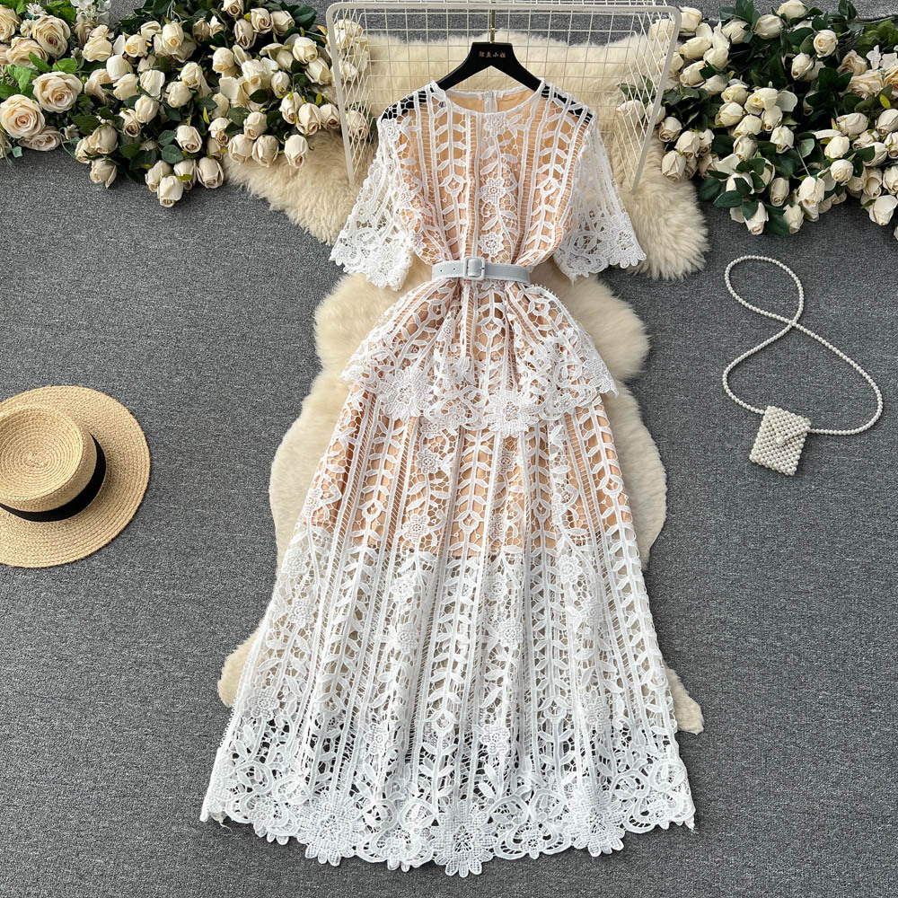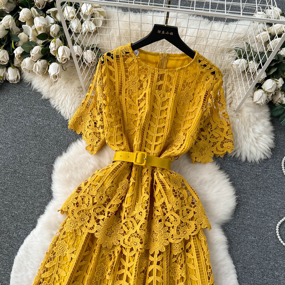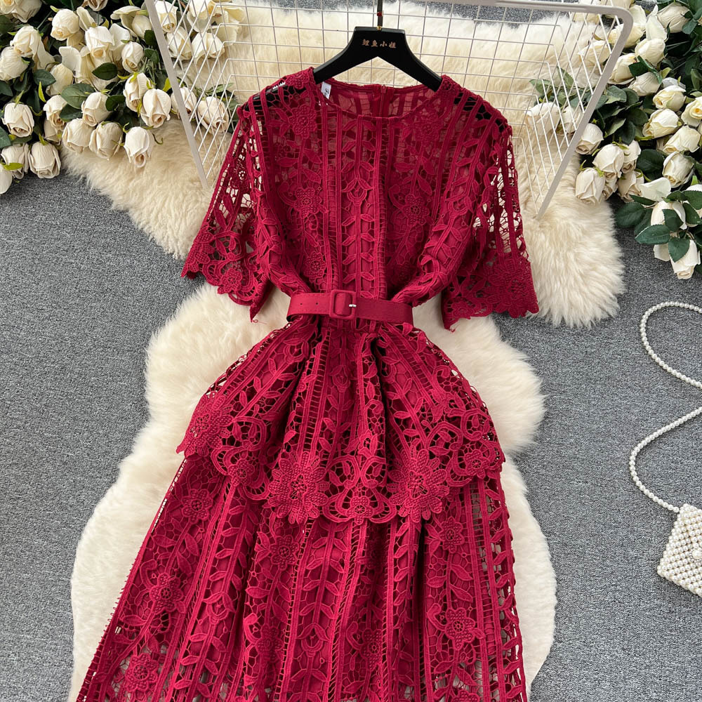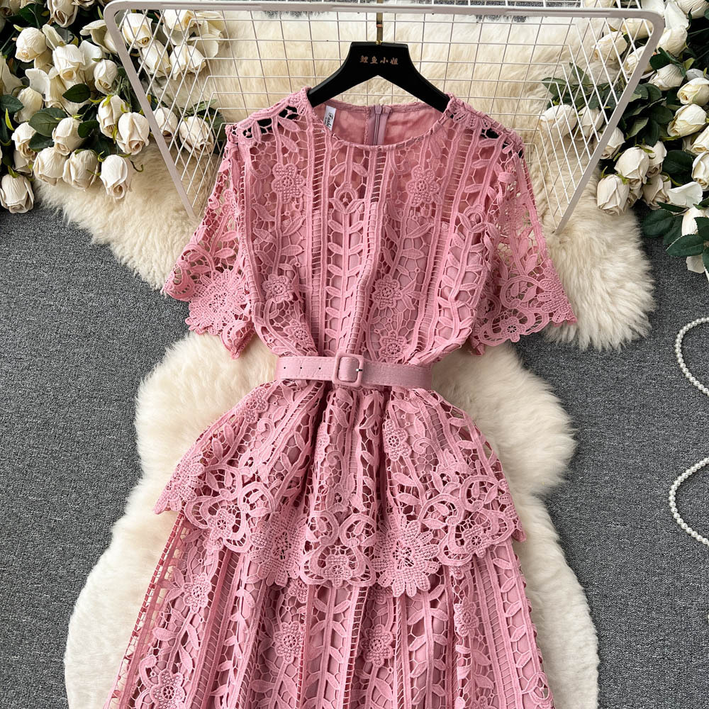 This Women French-Style Short-Sleeved Openwork Lace Dress Design Made Of High Quality polyester And Spandex Material. It Is Stretchy, Durable And Comfortable. Casual Dresses With Long Sleeves Can Not Only Be Worn As Outerwear In Spring And Autumn, But Also Matching a Jacket In Winter, It Is a Must Have Item For Every Season. Grab Really Great Buy Casual Dresses For Women And Grow Your Business. No Moq In BamBam.