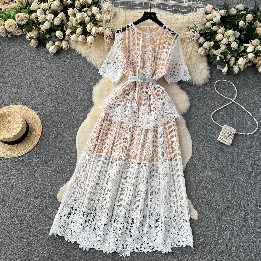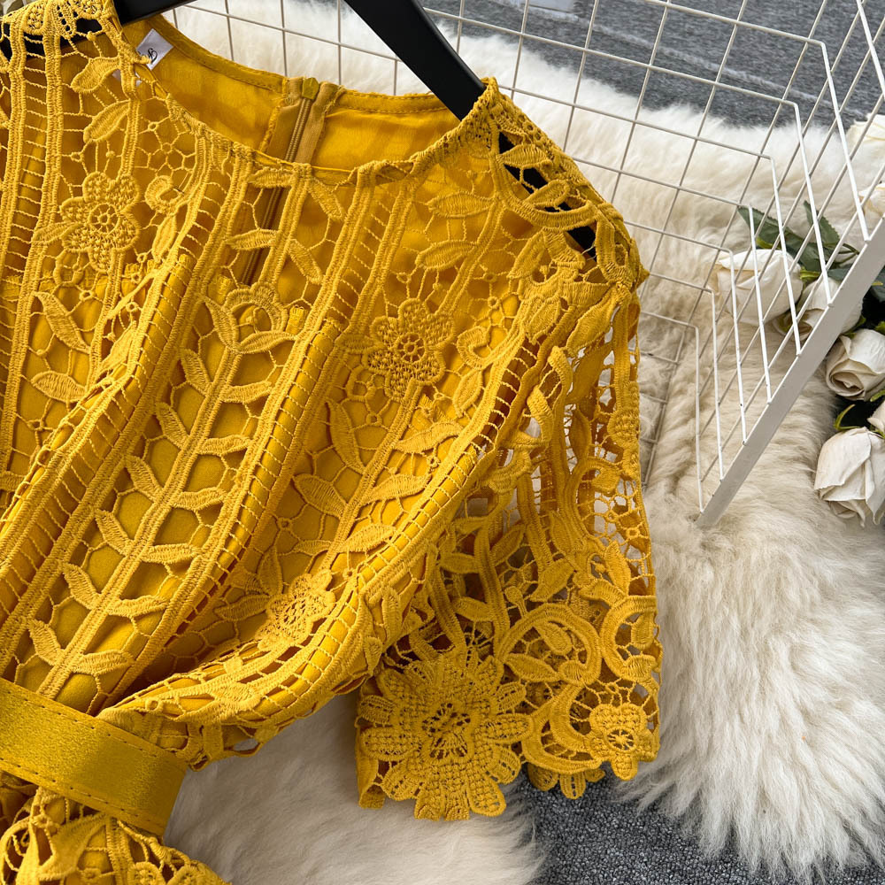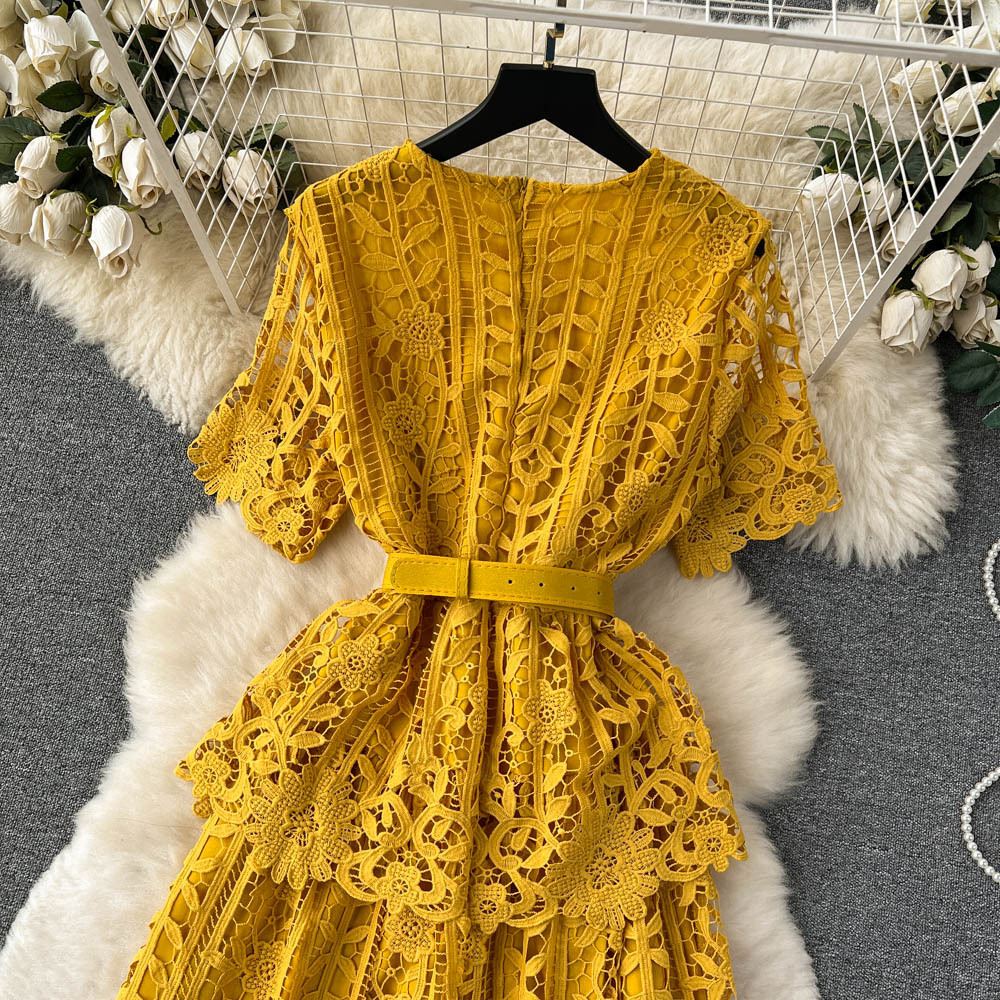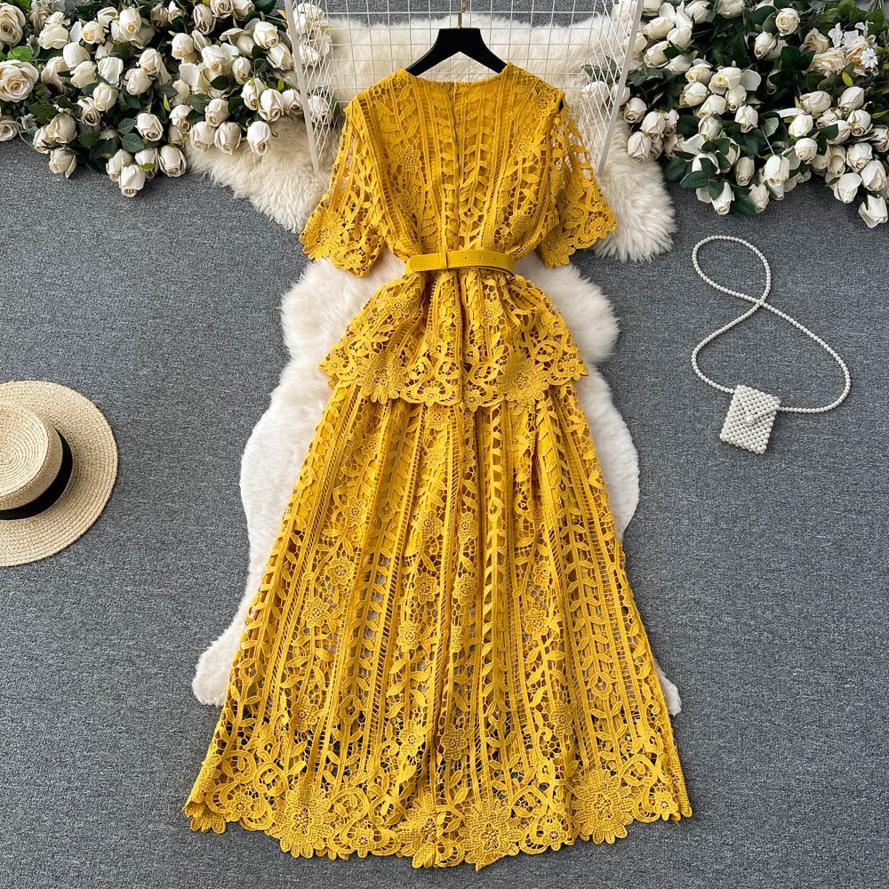This Women French-Style Short-Sleeved Openwork Lace Dress Design Made Of High Quality polyester And Spandex Material. It Is Stretchy, Durable And Comfortable. Casual Dresses With Long Sleeves Can Not Only Be Worn As Outerwear In Spring And Autumn, But Also Matching a Jacket In Winter, It Is a Must Have Item For Every Season. Grab Really Great Buy Casual Dresses For Women And Grow Your Business. No Moq In BamBam.