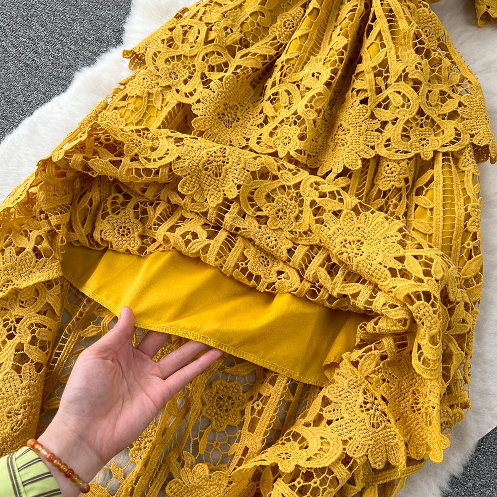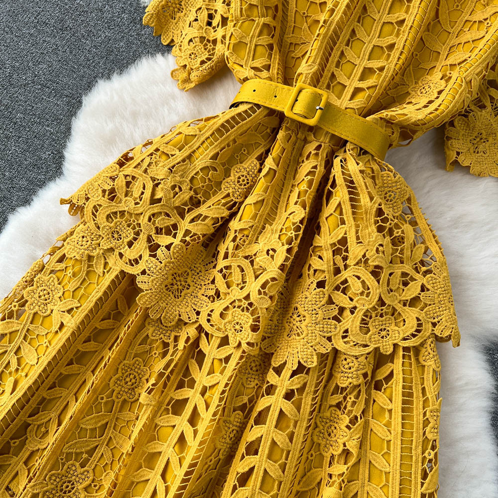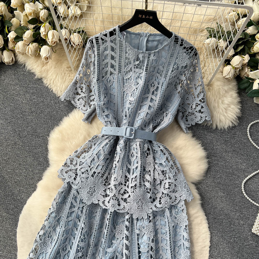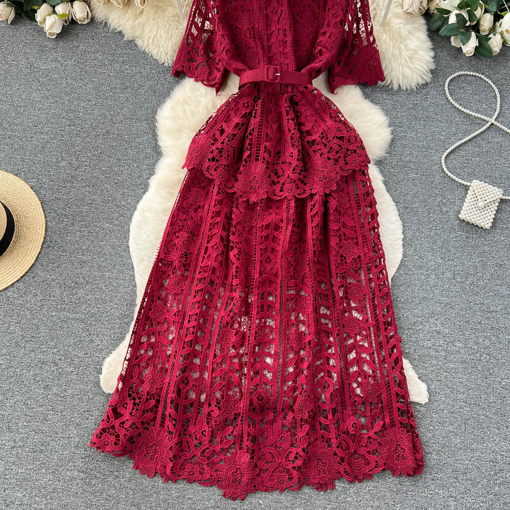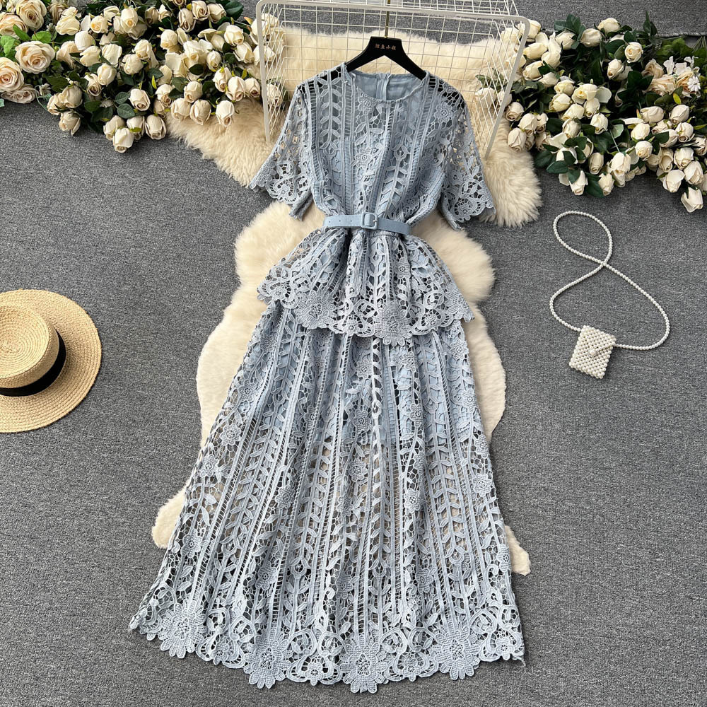 This Women French-Style Short-Sleeved Openwork Lace Dress Design Made Of High Quality polyester And Spandex Material. It Is Stretchy, Durable And Comfortable. Casual Dresses With Long Sleeves Can Not Only Be Worn As Outerwear In Spring And Autumn, But Also Matching a Jacket In Winter, It Is a Must Have Item For Every Season. Grab Really Great Buy Casual Dresses For Women And Grow Your Business. No Moq In BamBam.