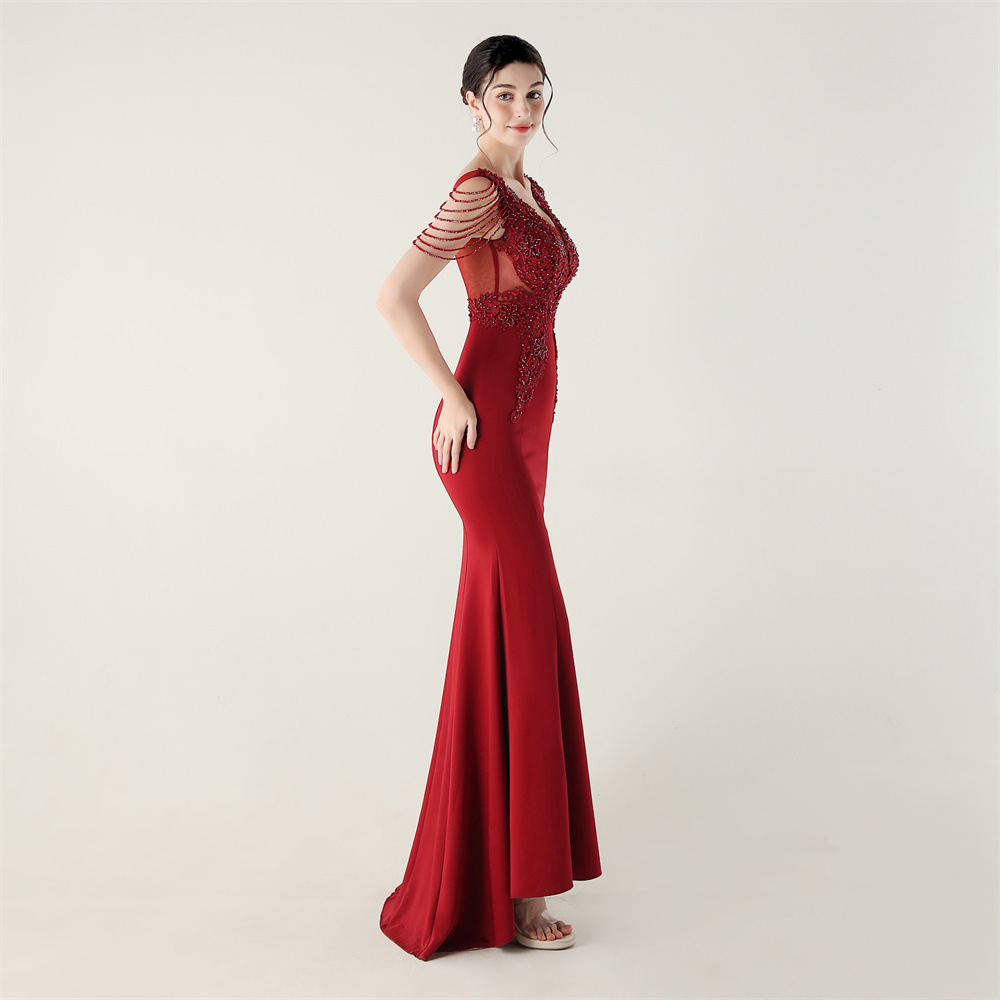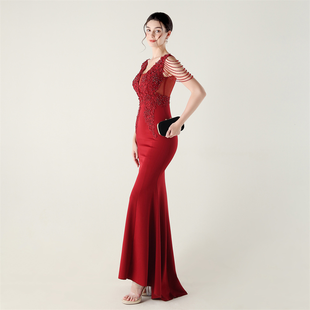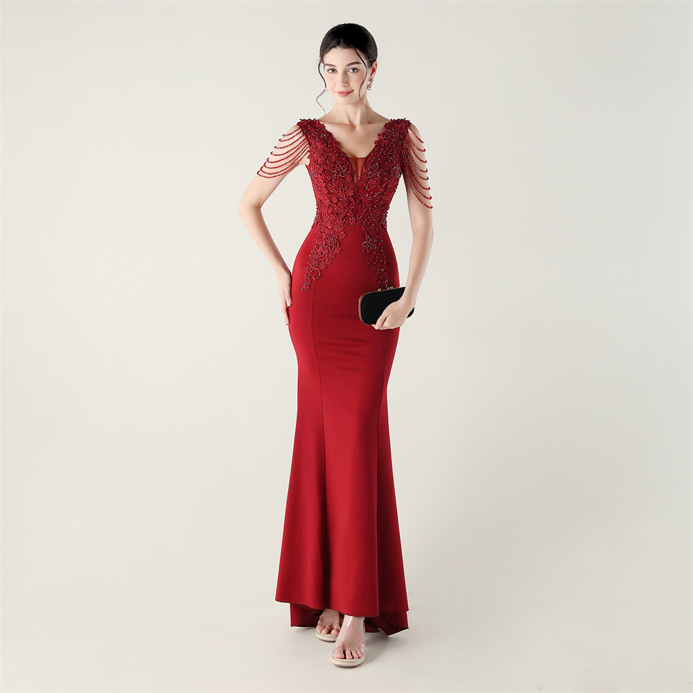 This Women Heavy Beaded Applique Fishbone Train Lace-Up Formal Party Evening Dress Design Made Of Good Quality Polyester And Spandex Material, Which Is Stretchy, Durable And Comfortable. The Long Evening Dresses And Gowns Is Always The main Choice For All Kinds Of Parties, Cocktail, Prom, Events, And Dating Occasions. Evening Gowns At BamBam Comes With Huge Selections - Sequins, Beaded, Satin, Velvet, Lace.... When You Need retail Evening Dresses, BamBam retail Women Garment Online Shop Is Your One-Stop Online Shopping Choice.