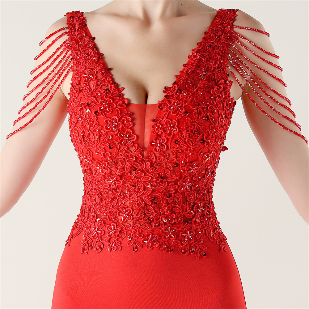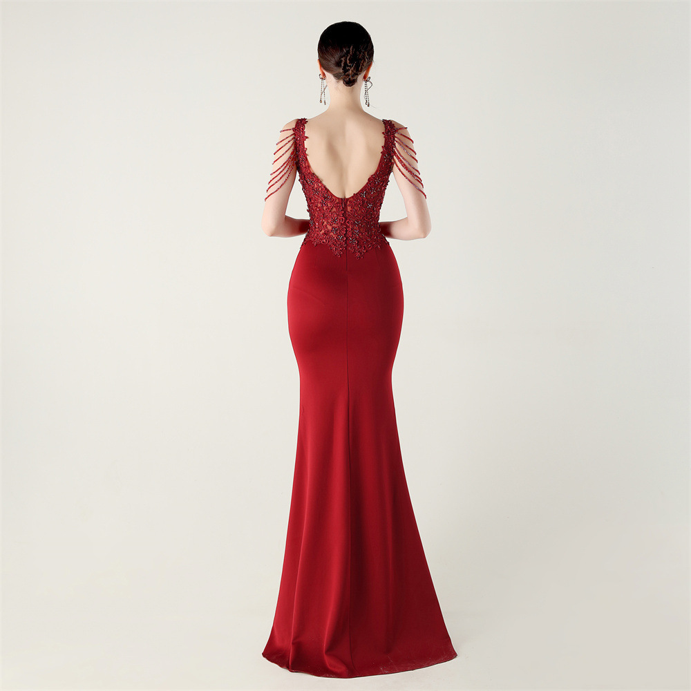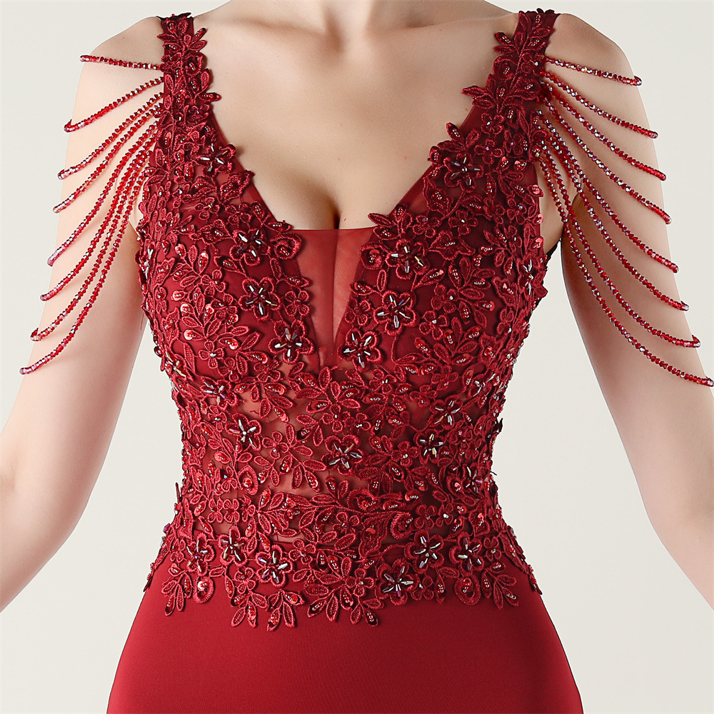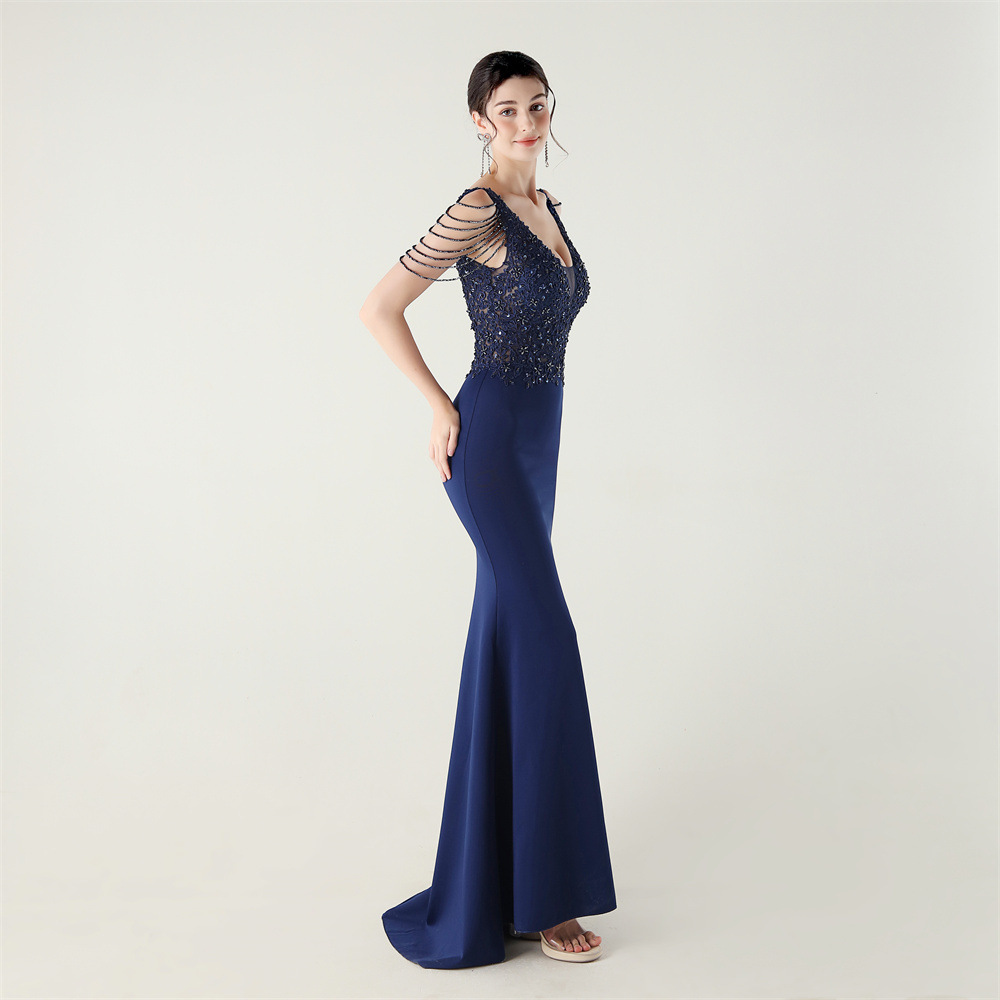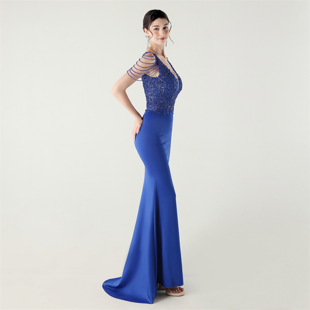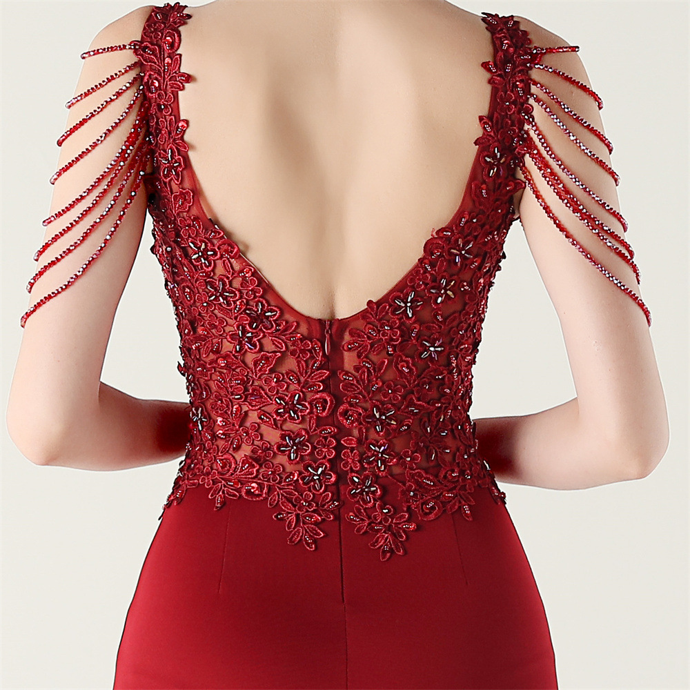 This Women Heavy Lace Beaded Slit Fishtail Skirt Sexy Elegant Evening Evening Dress Design Made Of Good Quality Polyester And Spandex Material, Which Is Stretchy, Durable And Comfortable. The Long Evening Dresses And Gowns Is Always The main Choice For All Kinds Of Parties, Cocktail, Prom, Events, And Dating Occasions. Evening Gowns At BamBam Comes With Huge Selections - Sequins, Beaded, Satin, Velvet, Lace.... When You Need retail Evening Dresses, BamBam retail Women Garment Online Shop Is Your One-Stop Online Shopping Choice.