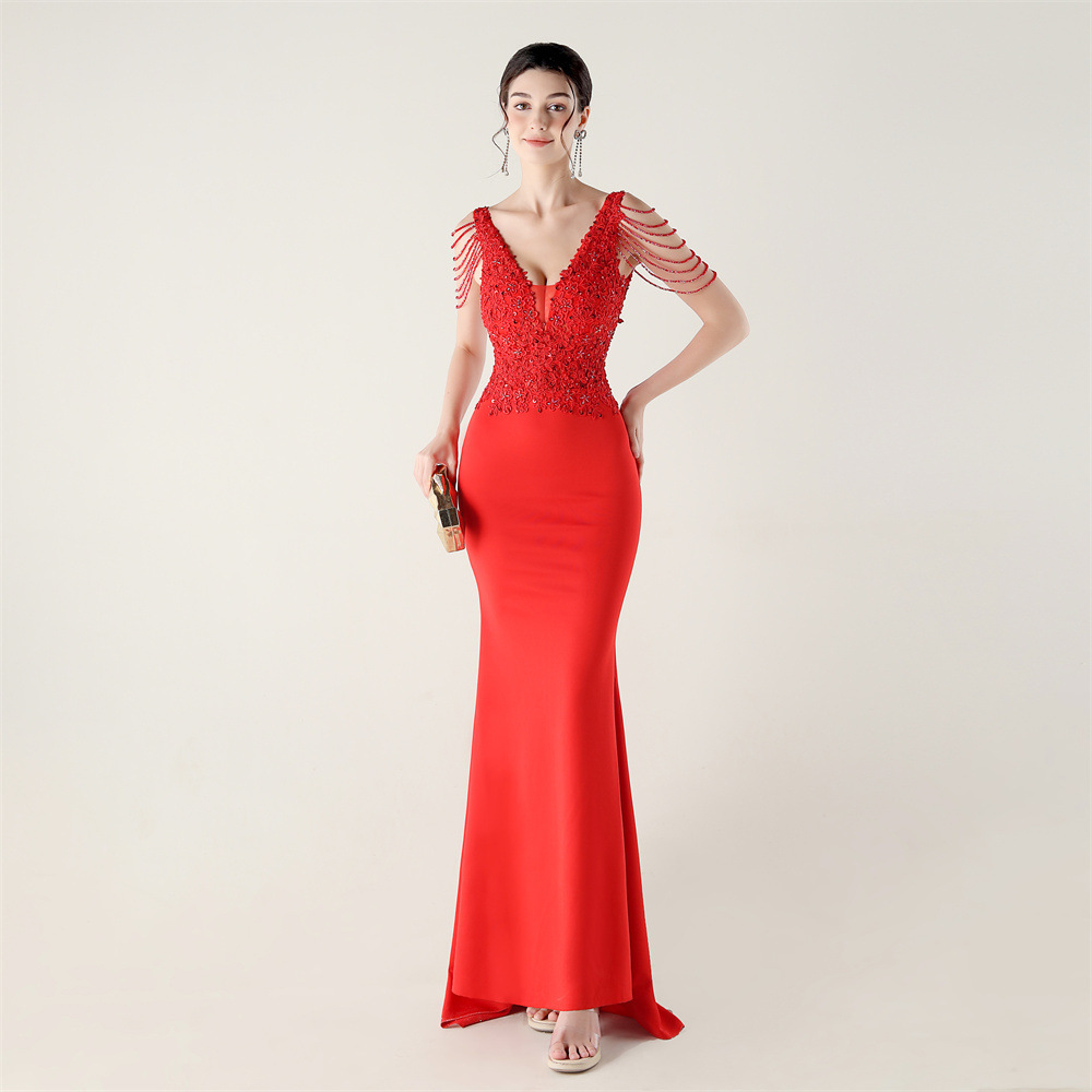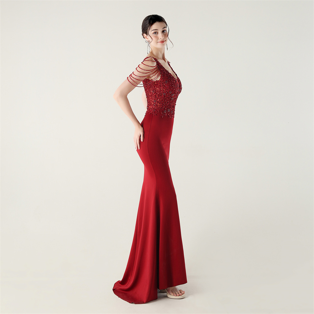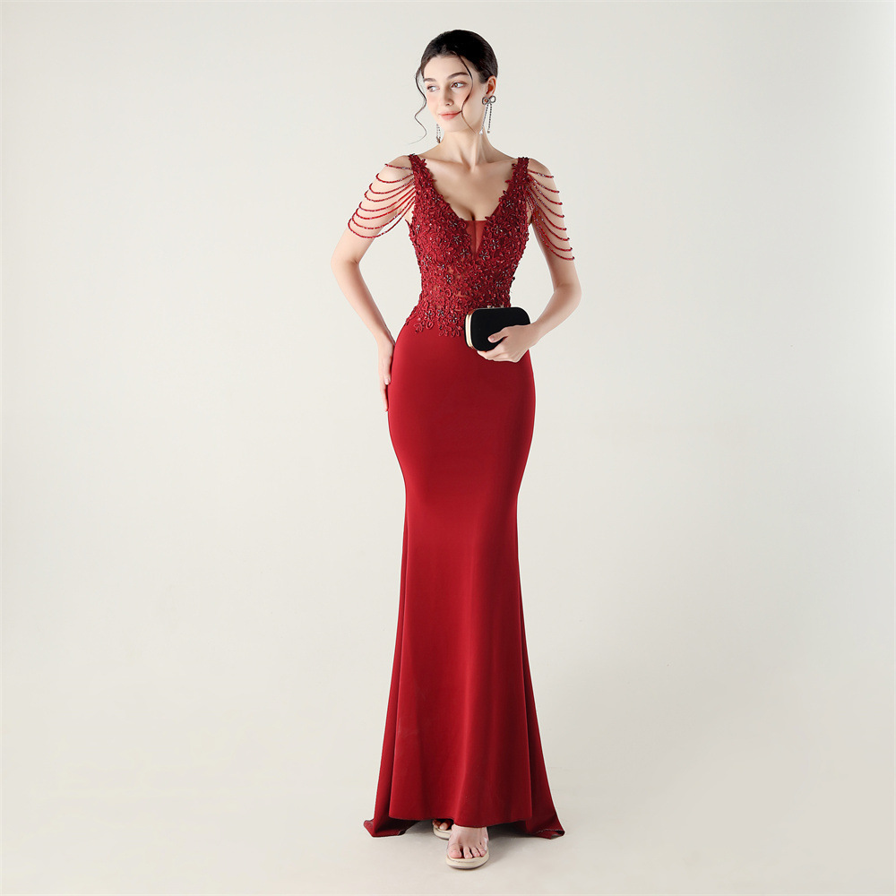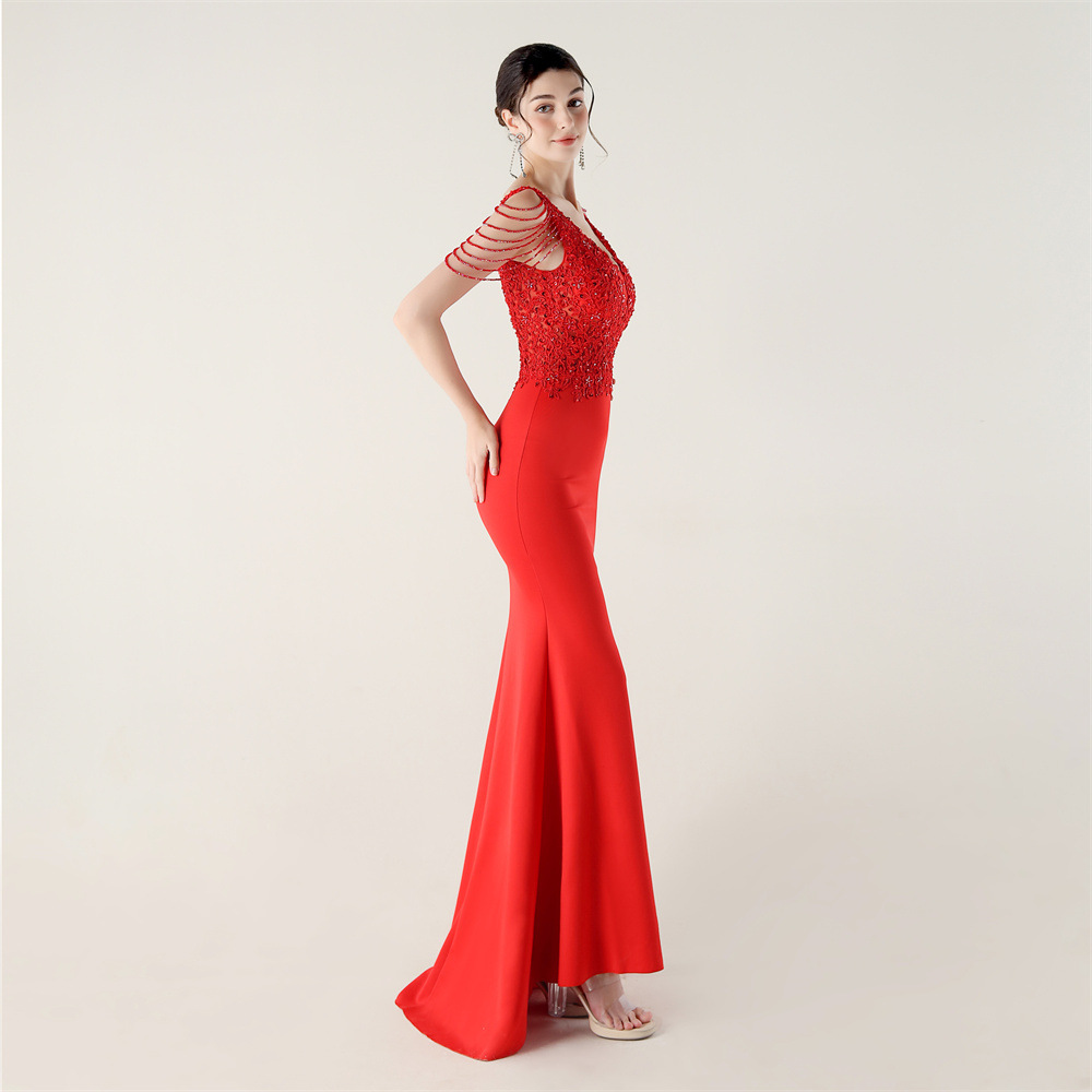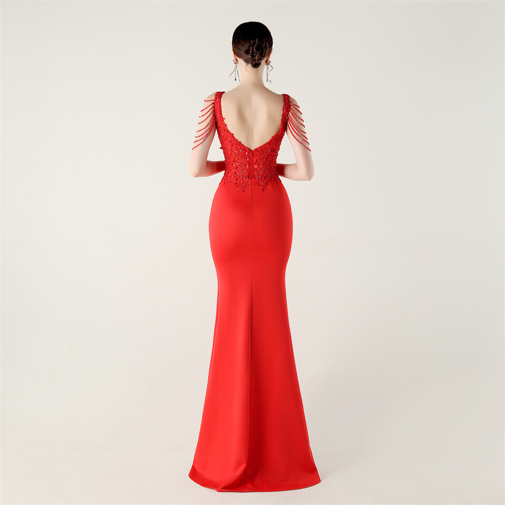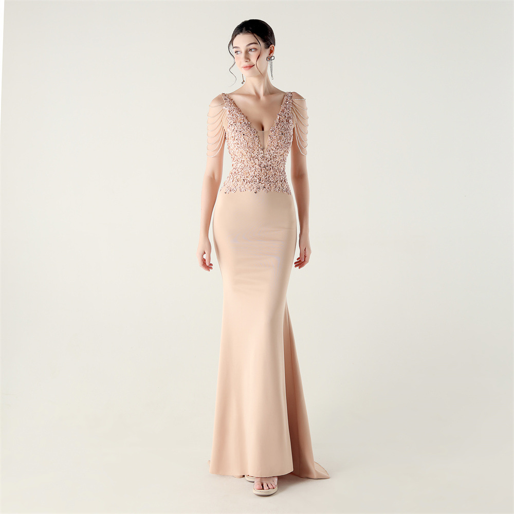 This Women Heavy Lace Beaded Slit Fishtail Skirt Sexy Elegant Evening Evening Dress Design Made Of Good Quality Polyester And Spandex Material, Which Is Stretchy, Durable And Comfortable. The Long Evening Dresses And Gowns Is Always The main Choice For All Kinds Of Parties, Cocktail, Prom, Events, And Dating Occasions. Evening Gowns At BamBam Comes With Huge Selections - Sequins, Beaded, Satin, Velvet, Lace.... When You Need retail Evening Dresses, BamBam retail Women Garment Online Shop Is Your One-Stop Online Shopping Choice.