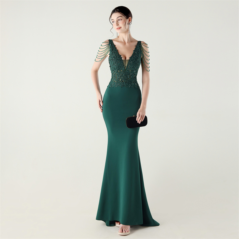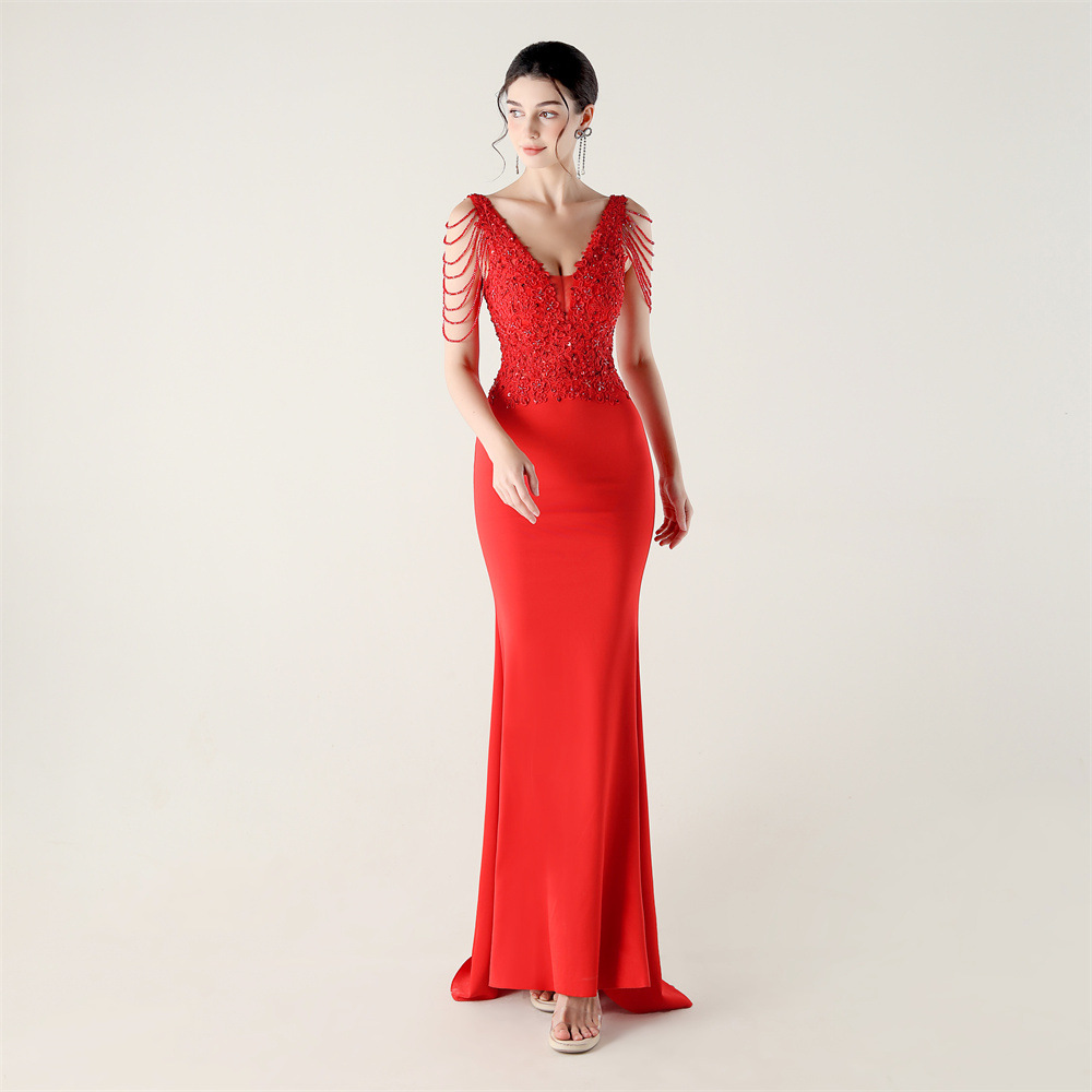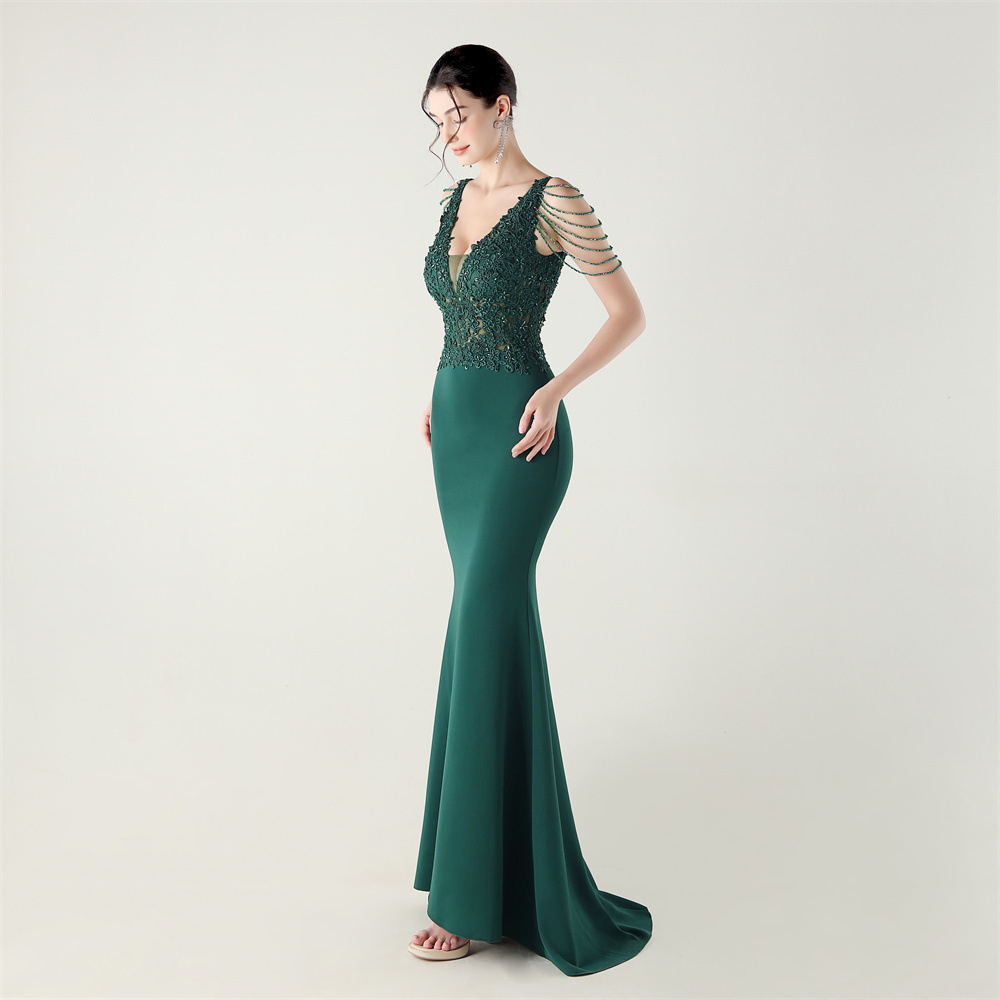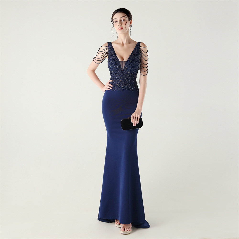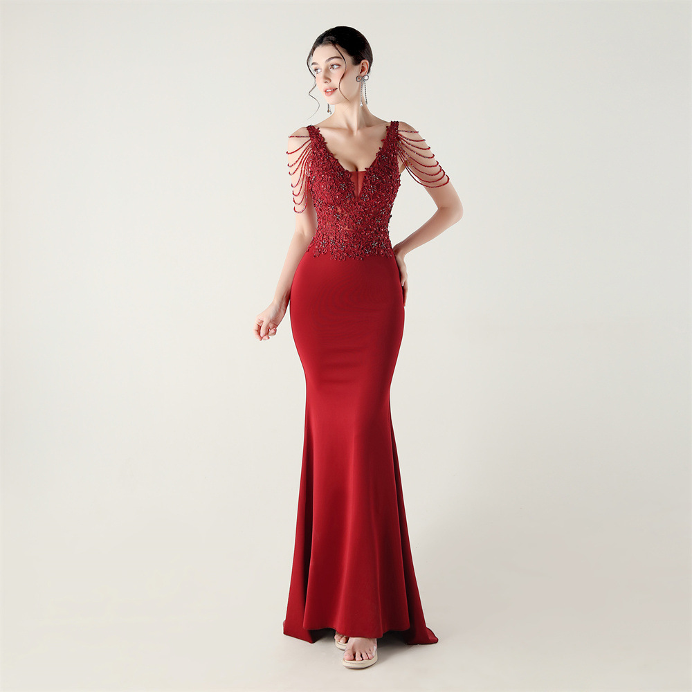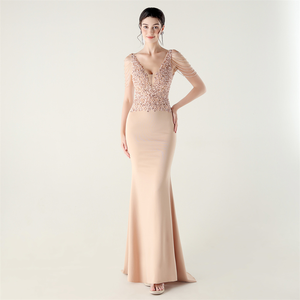 This Women Heavy Lace Beaded Slit Fishtail Skirt Sexy Elegant Evening Evening Dress Design Made Of Good Quality Polyester And Spandex Material, Which Is Stretchy, Durable And Comfortable. The Long Evening Dresses And Gowns Is Always The main Choice For All Kinds Of Parties, Cocktail, Prom, Events, And Dating Occasions. Evening Gowns At BamBam Comes With Huge Selections - Sequins, Beaded, Satin, Velvet, Lace.... When You Need retail Evening Dresses, BamBam retail Women Garment Online Shop Is Your One-Stop Online Shopping Choice.