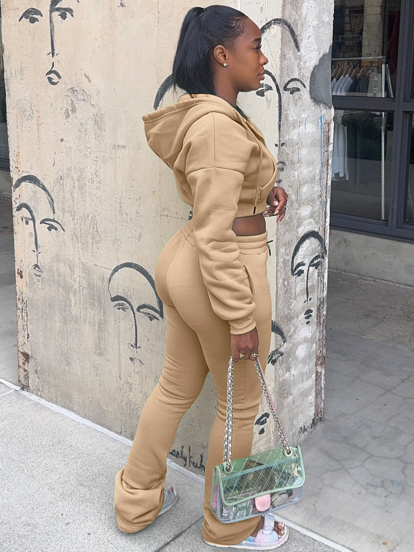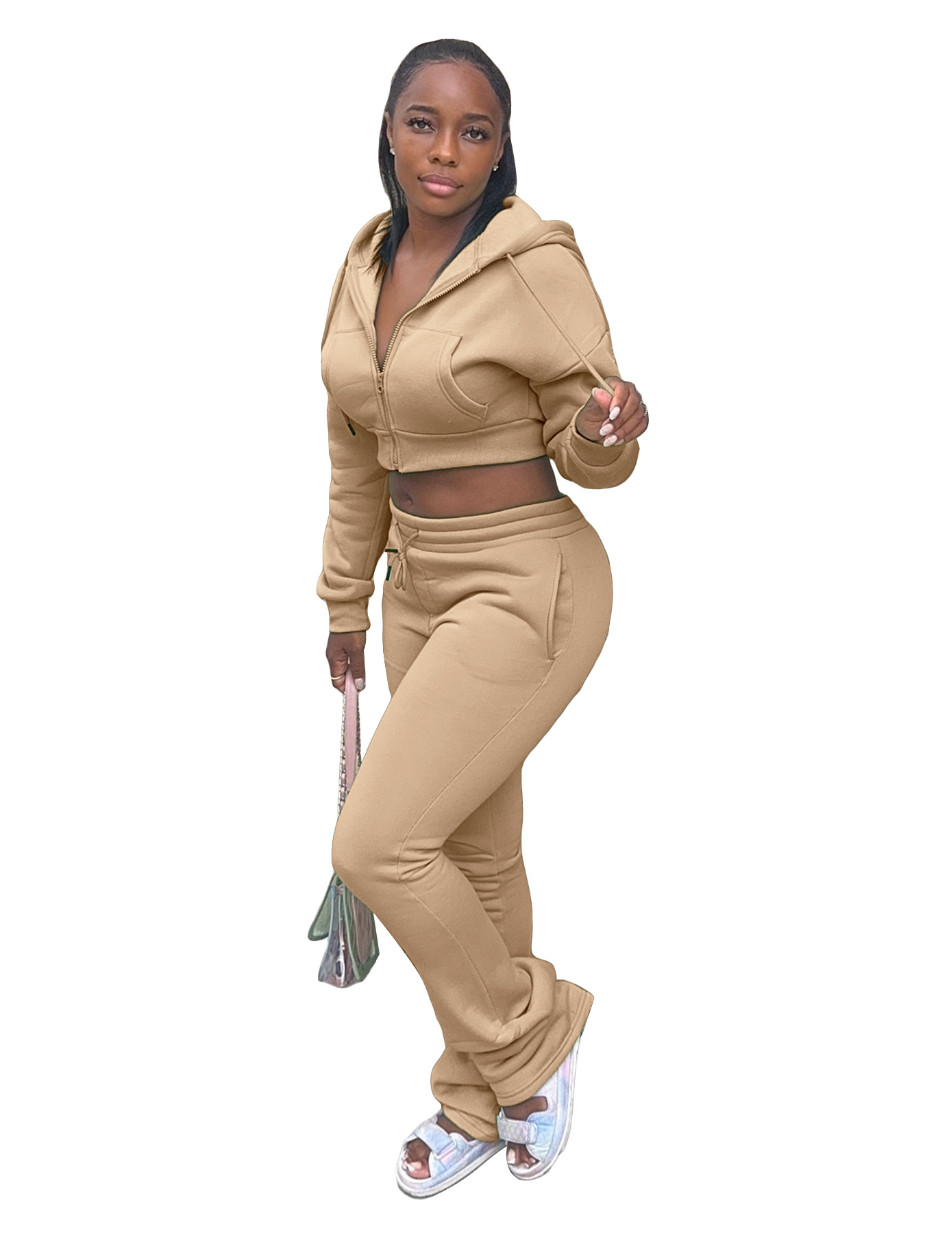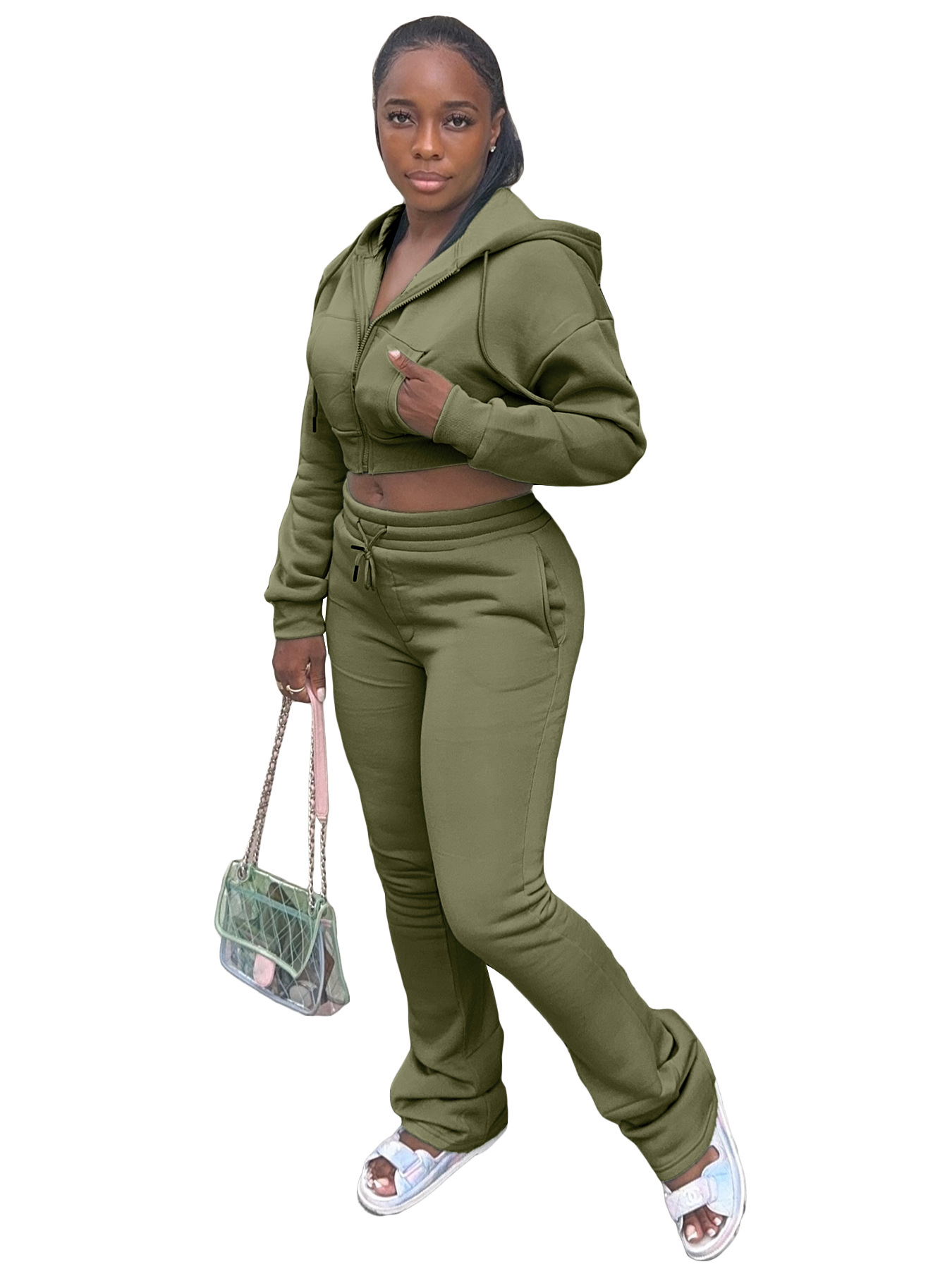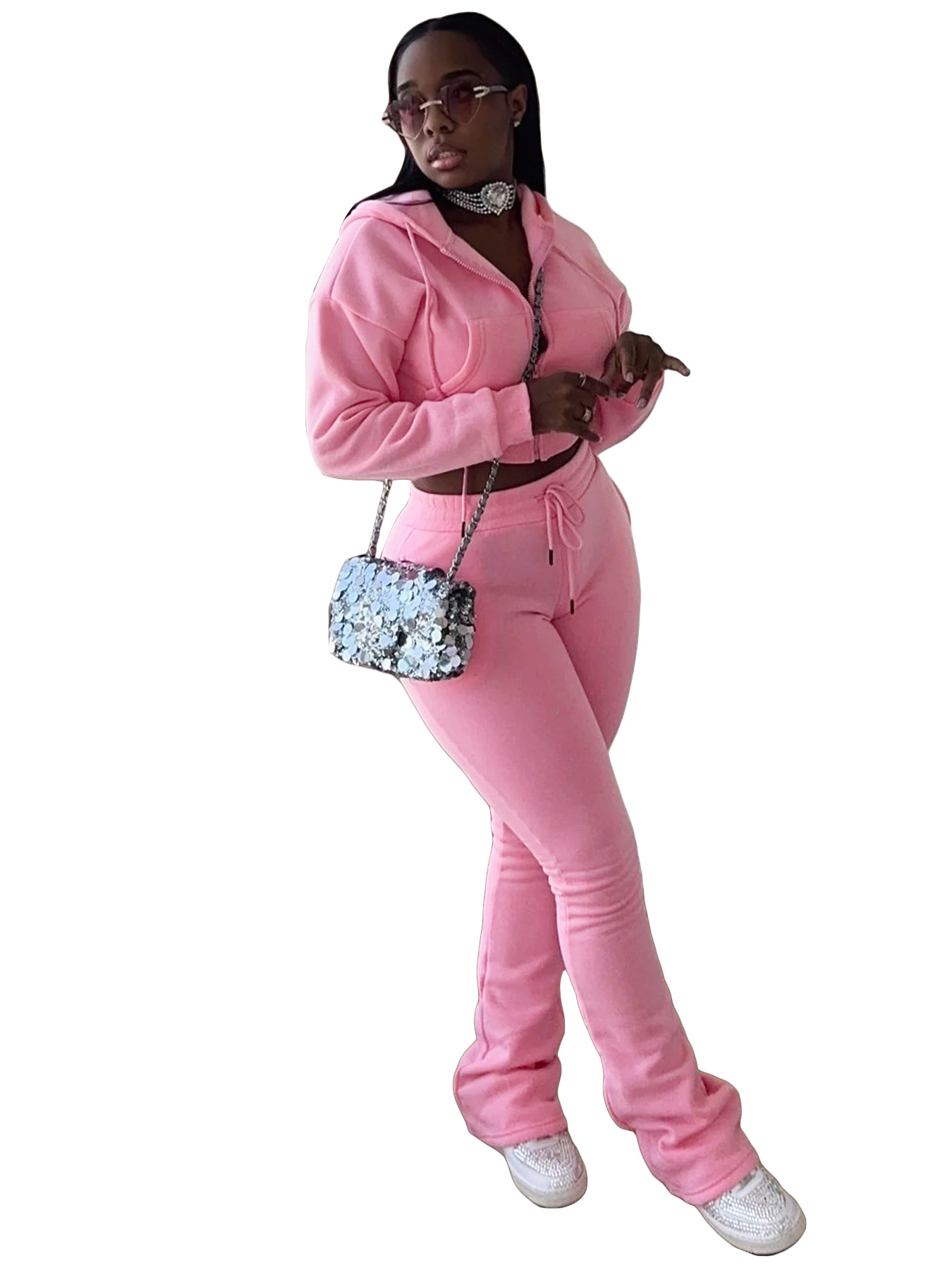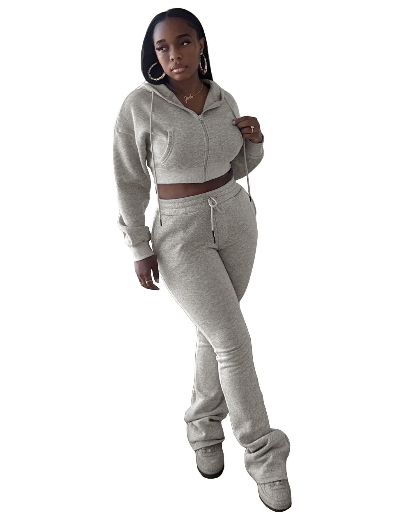 This Women Hoodies And Bell Bottom Pants Two-Piece Set Design Made Of High Quality polyester And Spandex Material. It Is Stretchy, Durable And Comfortable. It Is a Must-Have Outfit For All Seasons. retail Two Piece Pant Sets Can Solve Your cloth selection Troubles. Explore More 2 Piece Pants Set On BamBam retail Women Clothing Online Store.