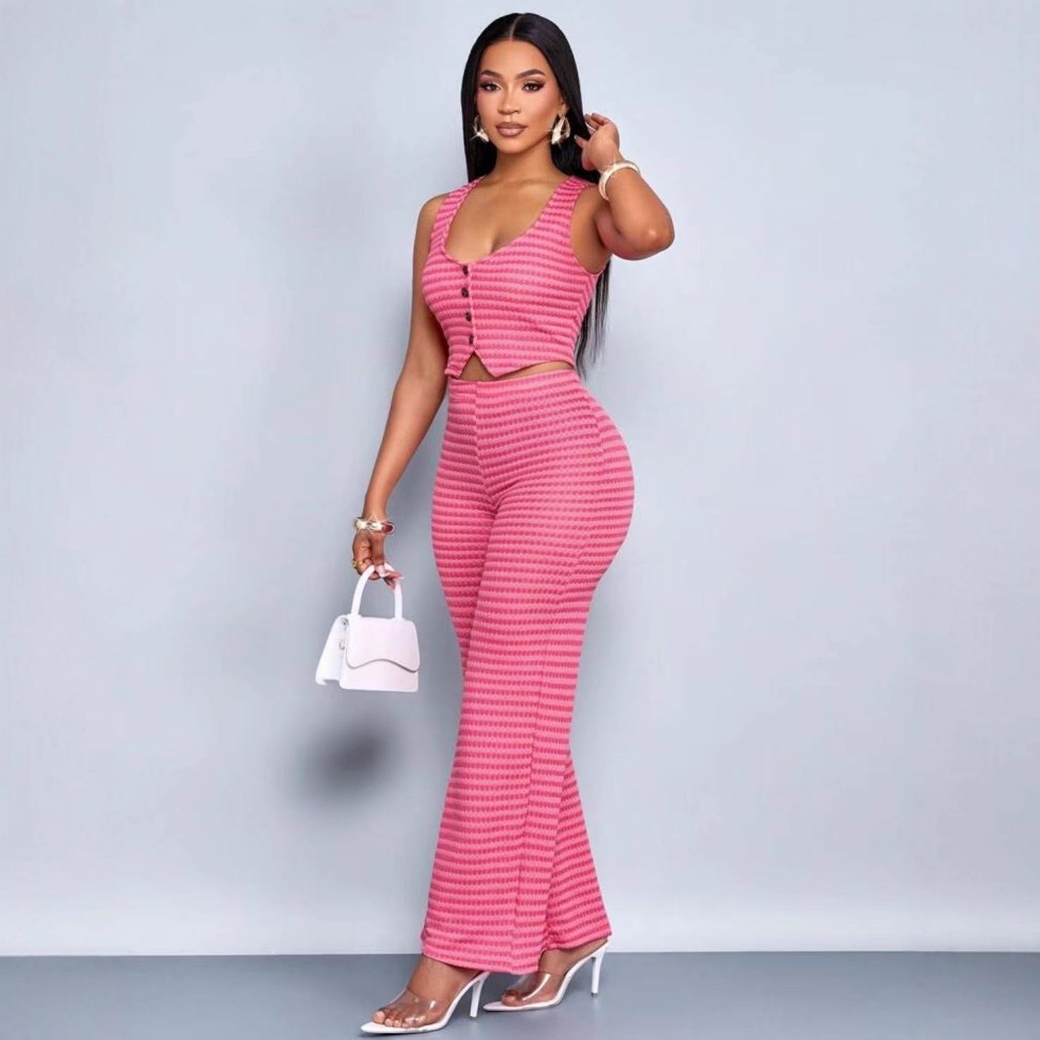 This Women Knitting Casual Summer Striped Top And Long Pants Two-Piece Set Design Made Of High Quality polyester And Spandex Material. It Is Stretchy, Durable And Comfortable. It Is a Must-Have Outfit For All Seasons. retail Two Piece Pant Sets Can Solve Your cloth selection Troubles. Explore More 2 Piece Pants Set On BamBam retail Women Clothing Online Store.