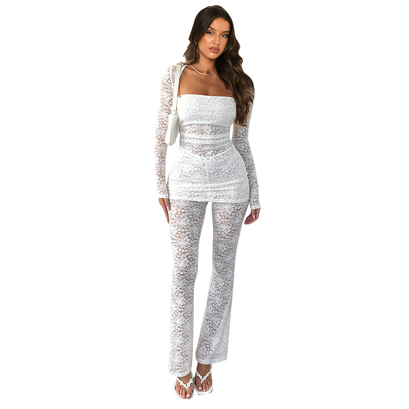 This Women Lace Strapless Shawl Top And Pants 2-Piece Set Design Made Of High Quality polyester And Spandex Material. It Is Stretchy, Durable And Comfortable. It Is a Must-Have Outfit For All Seasons. retail Two Piece Pant Sets Can Solve Your cloth selection Troubles. Explore More 2 Piece Pants Set On BamBam retail Women Clothing Online Store.