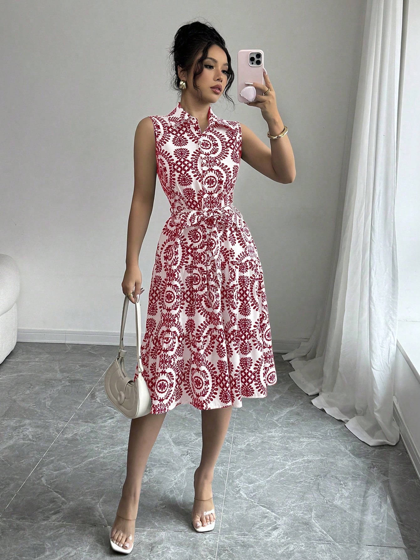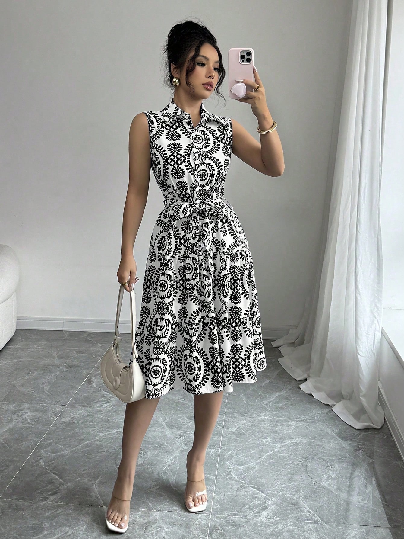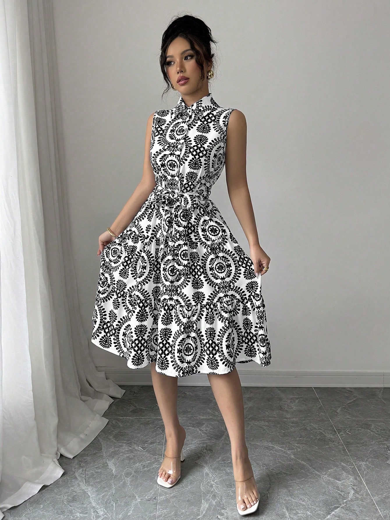 This Women Lace-Up Print Sleeveless Dress Design Made Of High Quality polyester And Spandex Material. It Is Stretchy, Durable And Comfortable. Casual Dresses With Long Sleeves Can Not Only Be Worn As Outerwear In Spring And Autumn, But Also Matching a Jacket In Winter, It Is a Must Have Item For Every Season. Grab Really Great Buy Casual Dresses For Women And Grow Your Business. No Moq In BamBam.