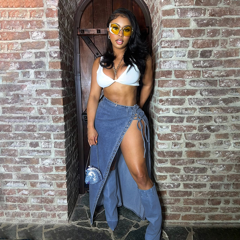 This Women Lace-Up Side Slit Denim Skirt And Made Of polyester And Spandex Material. It Is a Must-Have Item For Everyday use. Skirts Styles Range From Casual To Sporty, Sexy To Classic, No One Can Refuse The Temptation Of Skirts. Shop retail Skirts For Women At BamBam You Will Find wider Range Selections - Women’s Maxi And Denim Skirts, Mini And Leather Skirts, High Waist And Pencil Skirts, Midi And Pleated Skirts, Bohemian And Chiffon Skirts...When You Need More retail Women Skirts, You Can Always Find What You Need On Our retail Women Clothing Online Store.