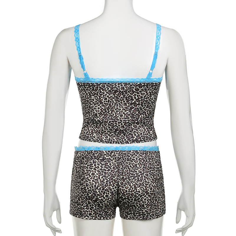 This Women Leopard Print Lace Tank Top And Shorts Two-Piece Set Design Made Of High Quality polyester And Spandex Material. It Is Stretchy, Durable And Comfortable. It Come With The Top And Shorts. retail Short Sets Saves Some People From The Trouble Of Matching. And For Matchmakers It Is More Flexible Than One-Piece Outfit. Two Piece Short Set Can Be Worn Together Or Individually, Ladies Can Match Them According To Different Occasions. Grab Different Two Piece Short Sets For This Spring And Summer.