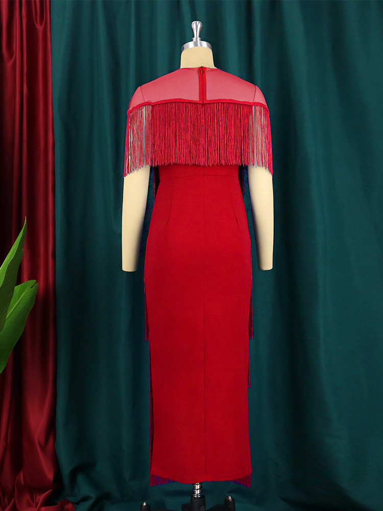 This Women Mesh Patchwork Tassel Round Neck Sexy Evening Bodycon Dresses Design Made Of Good Quality Polyester And Spandex Material, Which Is Stretchy, Durable And Comfortable. The Long Evening Dresses And Gowns Is Always The main Choice For All Kinds Of Parties, Cocktail, Prom, Events, And Dating Occasions. Evening Gowns At BamBam Comes With Huge Selections - Sequins, Beaded, Satin, Velvet, Lace.... When You Need retail Evening Dresses, BamBam retail Women Garment Online Shop Is Your One-Stop Online Shopping Choice.