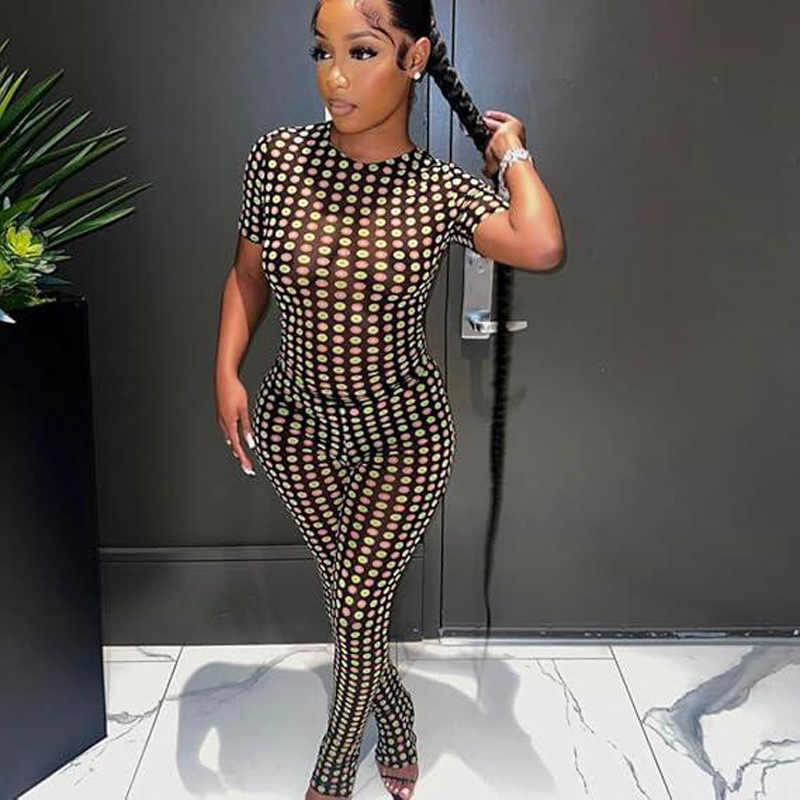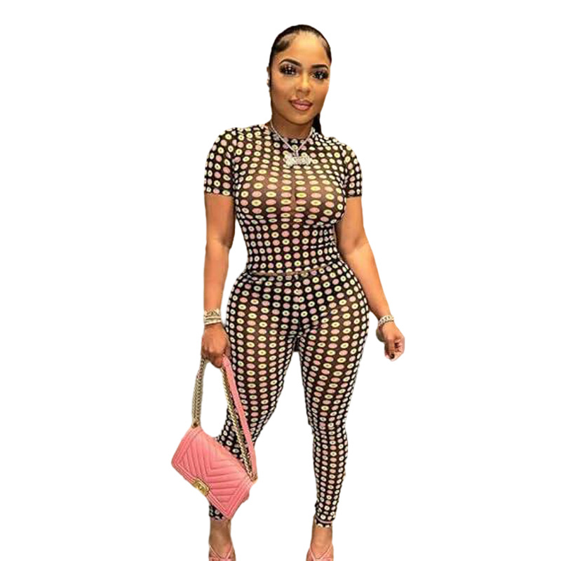 This Women Multi-Color Polka Dot Mesh Printed Short Sleeve Top And Pants Two-Piece Set Design Made Of High Quality polyester And Spandex Material. It Is Stretchy, Durable And Comfortable. It Is a Must-Have Outfit For All Seasons. retail Two Piece Pant Sets Can Solve Your cloth selection Troubles. Explore More 2 Piece Pants Set On BamBam retail Women Clothing Online Store.