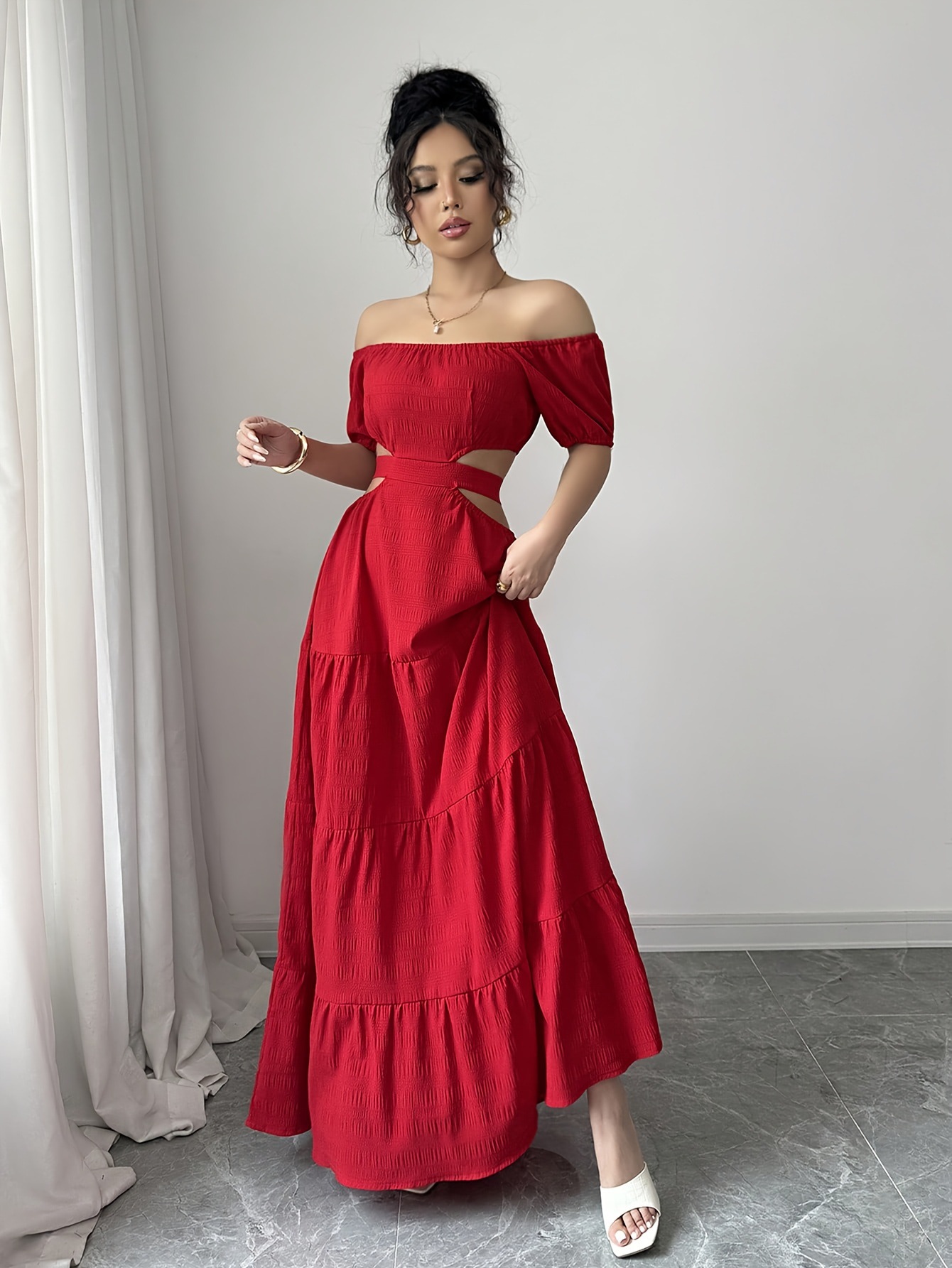 This Women Off Shoulder French Sexy Holidays Open Waist Waist Red Dress Design Made Of High Quality polyester And Spandex Material, Which Is Stretchy, Soft And Comfortable. It's Always On Trend. This Casual Maxi Dresses Is a Must-Have For Vocations And Dating Occasions. Maxi Dresses At BamBam Comes With Huge Selections Of Colors, Sizes, Material, And Designs. When You Need retail affordable Maxi Dresses, You Can Always Find Vary Collection And No Moq On Our retail Women Fashion Online Store.