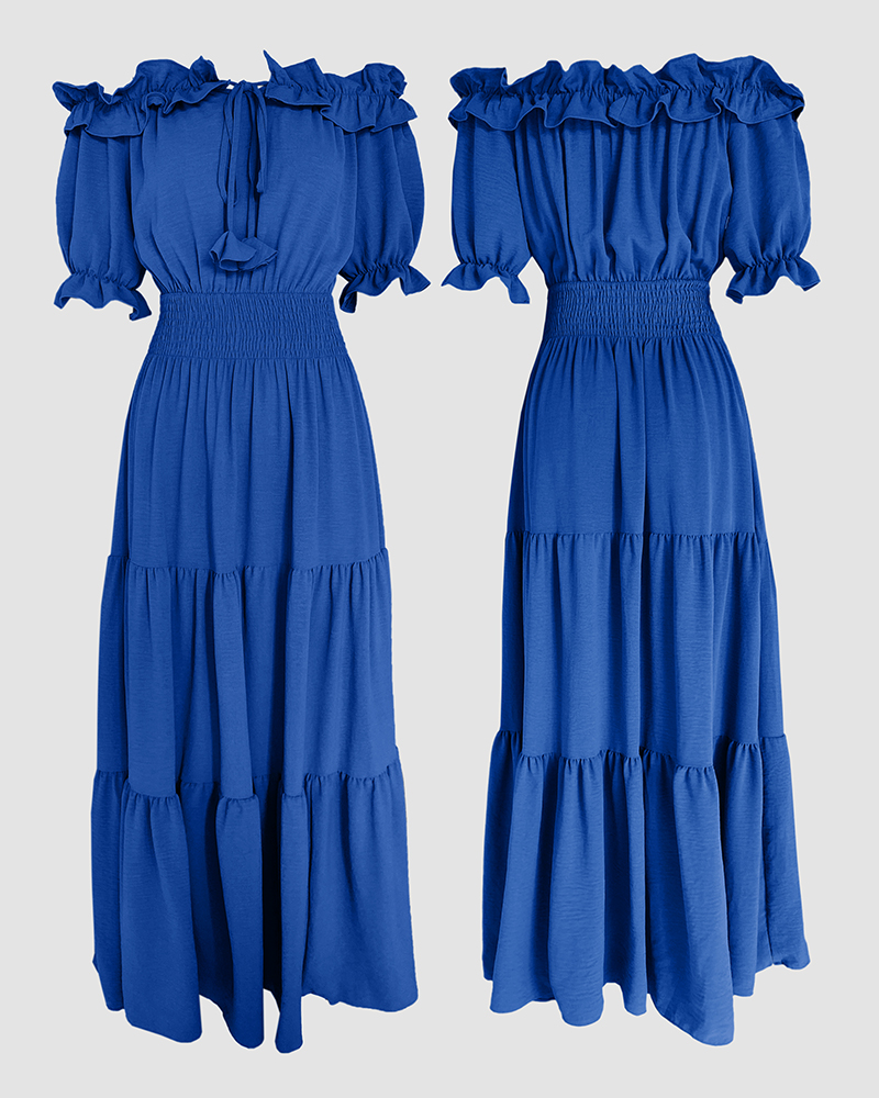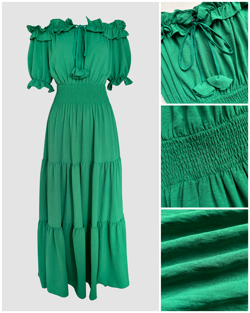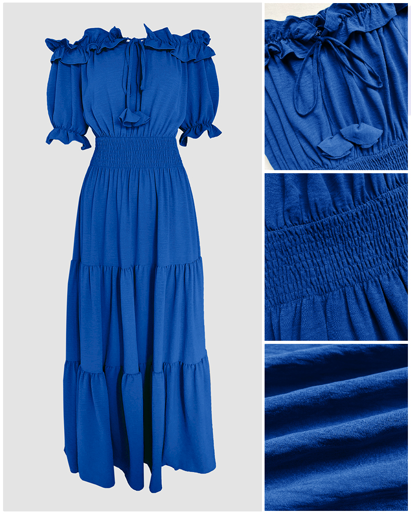 This Women Off-Shoulder Ruffle Edge Stretchy Bell Bottom Maxi Dress Design Made Of High Quality polyester And Spandex Material, Which Is Stretchy, Soft And Comfortable. It's Always On Trend. This Casual Maxi Dresses Is a Must-Have For Vocations And Dating Occasions. Maxi Dresses At BamBam Comes With Huge Selections Of Colors, Sizes, Material, And Designs. When You Need retail affordable Maxi Dresses, You Can Always Find Vary Collection And No Moq On Our retail Women Fashion Online Store.