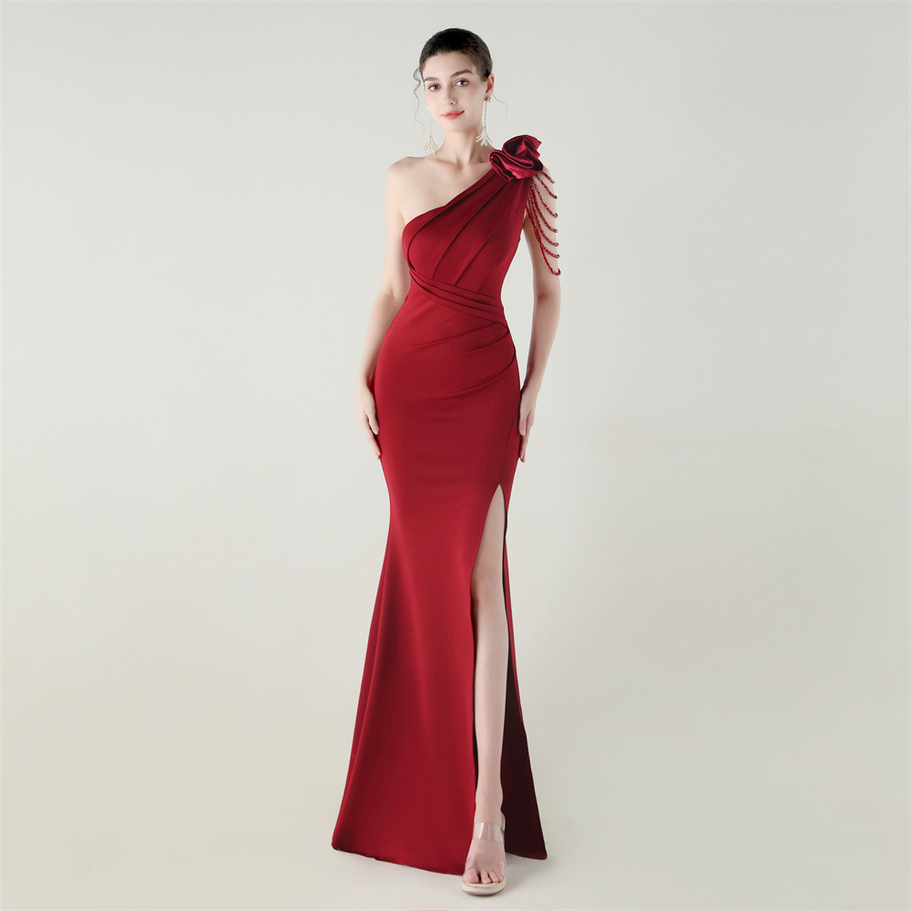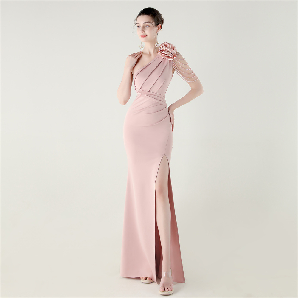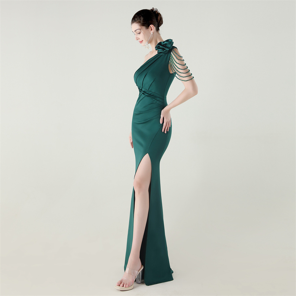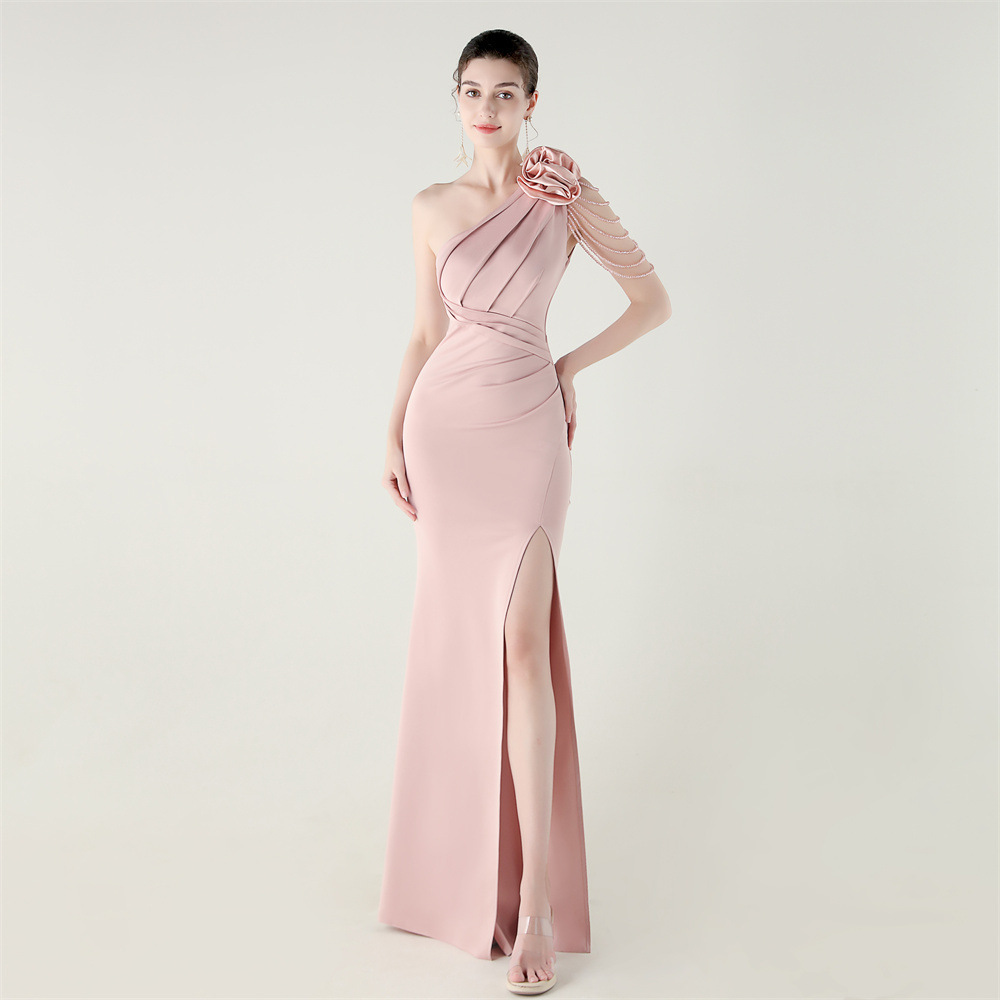 This Women One-Shoulder Flower Beaded Satin Sexy Slit Evening Dress Design Made Of Good Quality Polyester And Spandex Material, Which Is Stretchy, Durable And Comfortable. The Long Evening Dresses And Gowns Is Always The main Choice For All Kinds Of Parties, Cocktail, Prom, Events, And Dating Occasions. Evening Gowns At BamBam Comes With Huge Selections - Sequins, Beaded, Satin, Velvet, Lace.... When You Need retail Evening Dresses, BamBam retail Women Garment Online Shop Is Your One-Stop Online Shopping Choice.