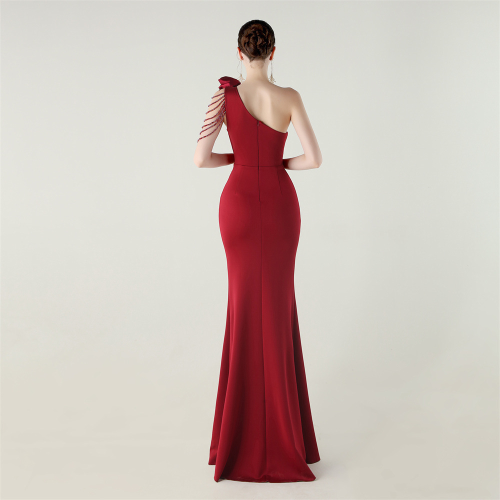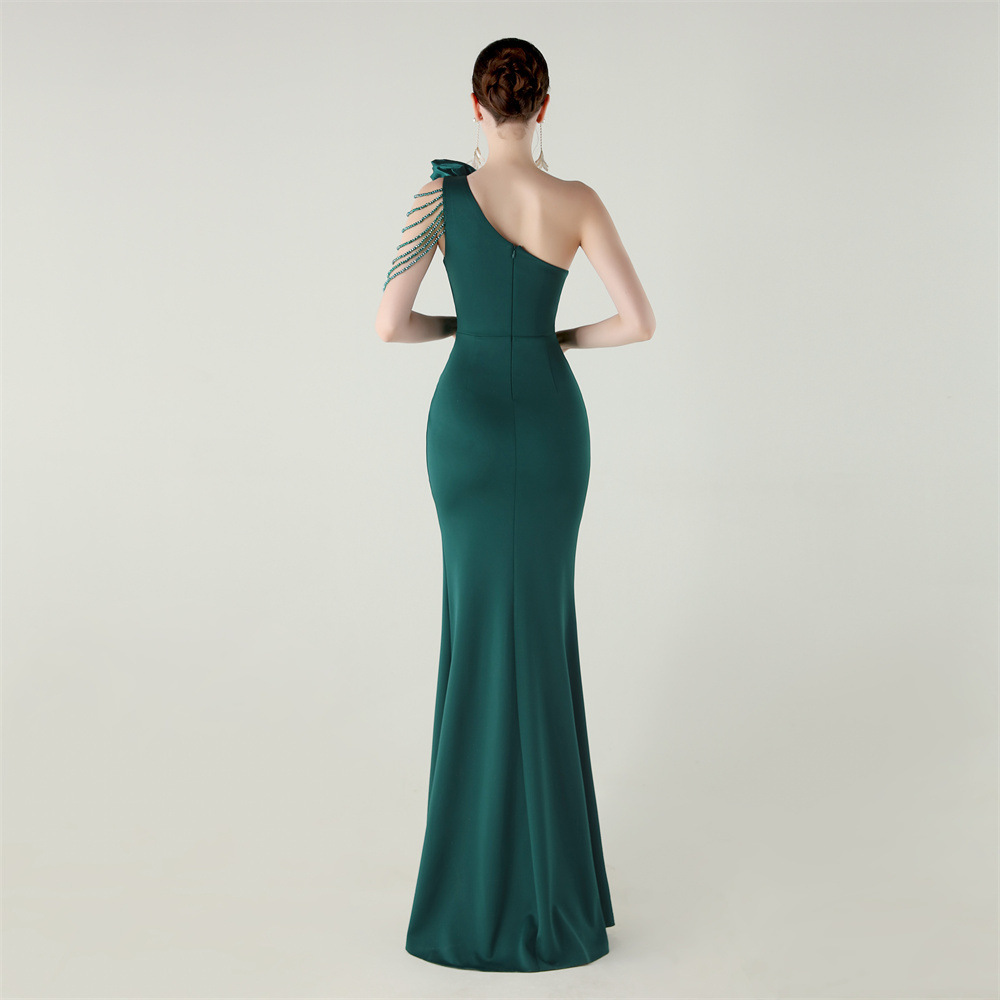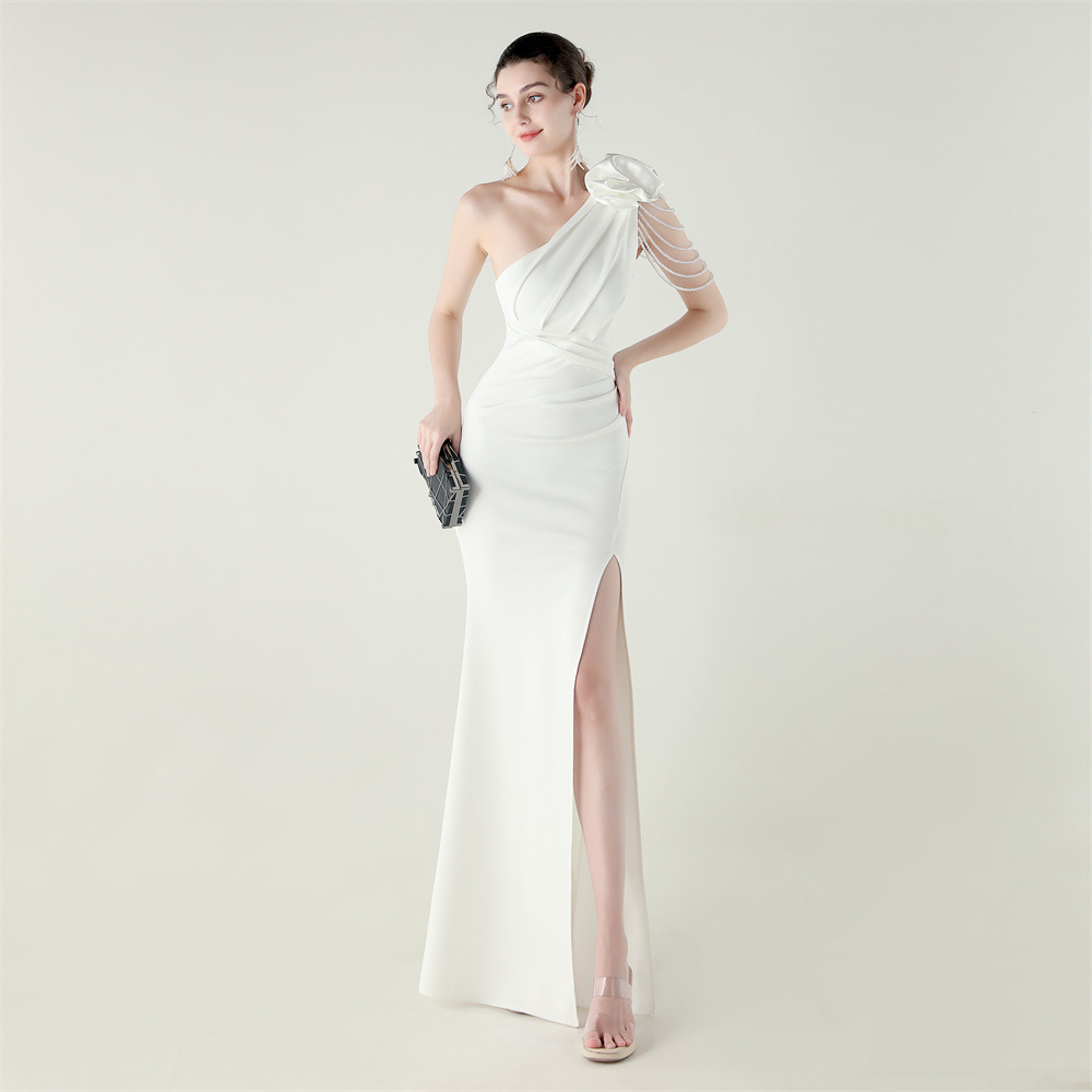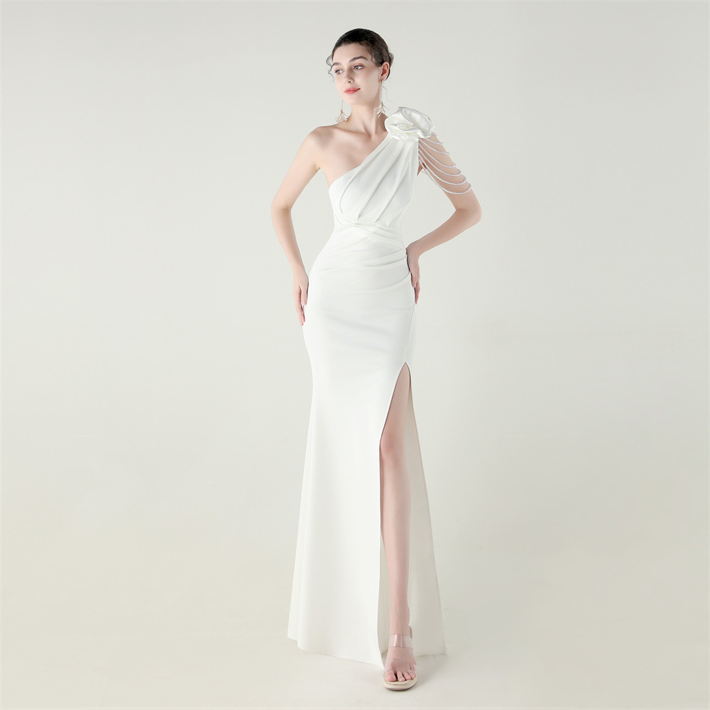 This Women One-Shoulder Flower Beaded Satin Sexy Slit Evening Dress Design Made Of Good Quality Polyester And Spandex Material, Which Is Stretchy, Durable And Comfortable. The Long Evening Dresses And Gowns Is Always The main Choice For All Kinds Of Parties, Cocktail, Prom, Events, And Dating Occasions. Evening Gowns At BamBam Comes With Huge Selections - Sequins, Beaded, Satin, Velvet, Lace.... When You Need retail Evening Dresses, BamBam retail Women Garment Online Shop Is Your One-Stop Online Shopping Choice.