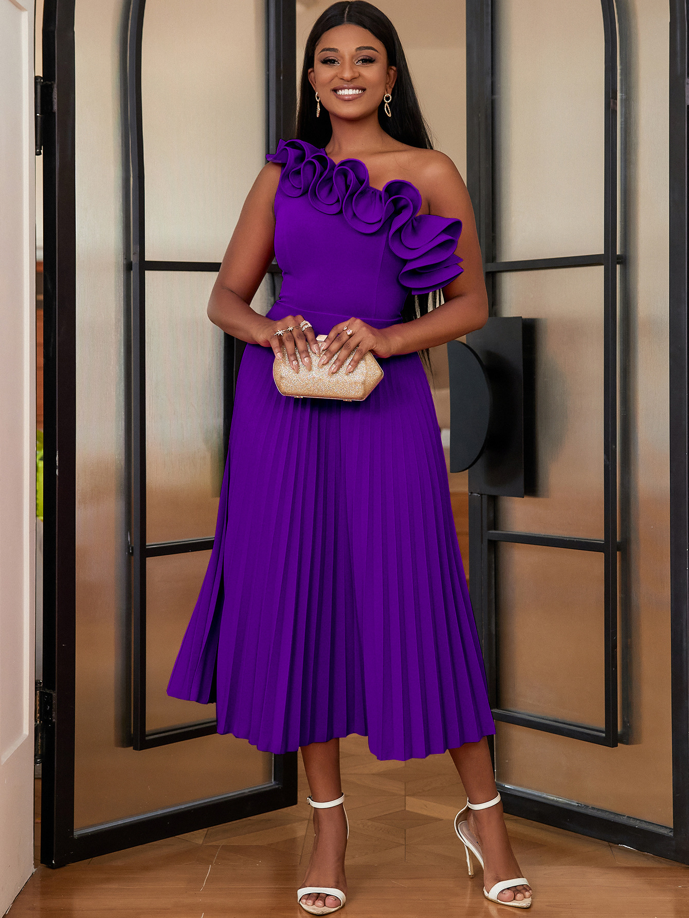 This Women One Shoulder Slash Shoulder Formal Party Pleated Dress Design Made Of High Quality polyester And Spandex Material. It's nice and stretchy, feels and wears comfortably on your body. Women’s Midi dresses suits all Kinds Of Occasions - Daily Wear, Go To The Church, Commuting And Events Occasion. Midi Dresses can't be Boring, Find Best Midi Dresses At BamBam With Trendy Styles.