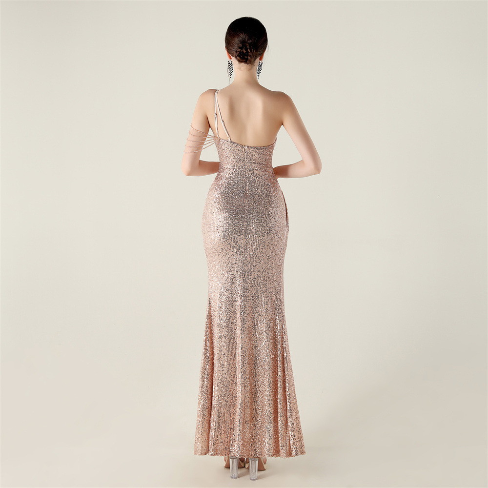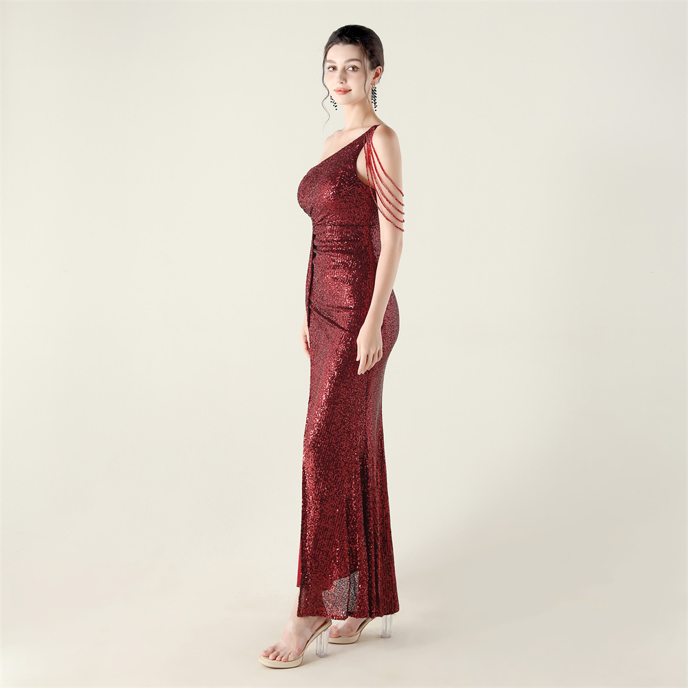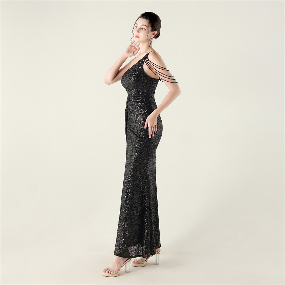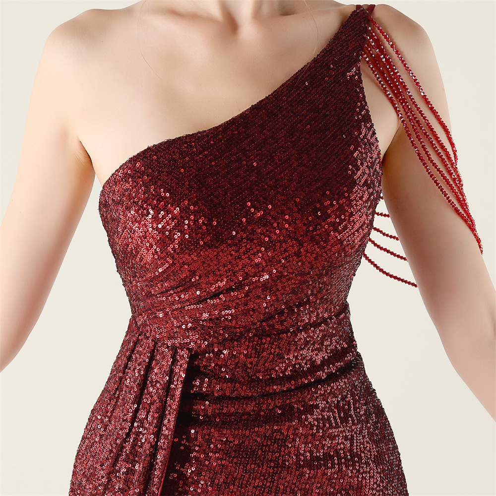 This Women One-Shoulder Slash Shoulder Sequined Beaded Chain Formal Party Evening Dress Design Made Of Good Quality polyester And Spandex Material, Which Is Stretchy, Durable And Comfortable. The Long Evening Dresses And Gowns Is Always The main Choice For All Kinds Of Parties, Cocktail, Prom, Events, And Dating Occasions. Evening Gowns At BamBam Comes With Huge Selections - Sequins, Beaded, Satin, Velvet, Lace.... When You Need retail Evening Dresses, BamBam retail Women Garment Online Shop Is Your One-Stop Online Shopping Choice.