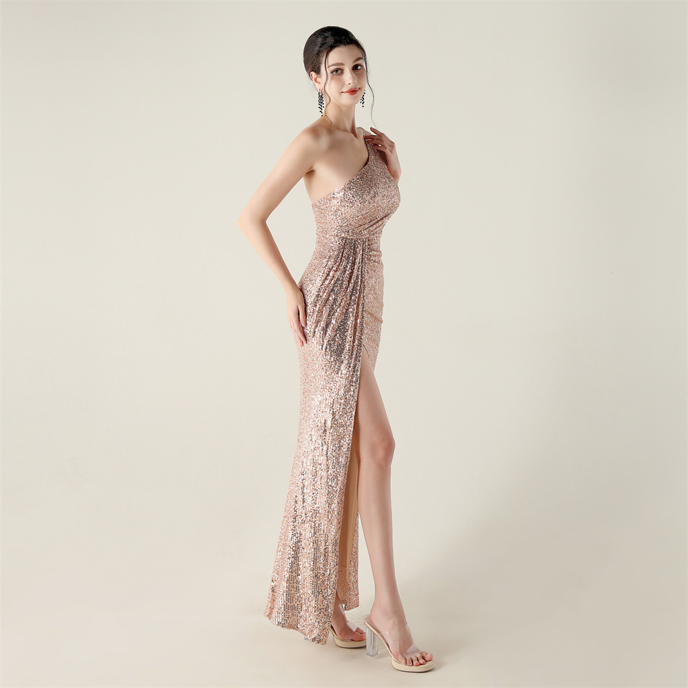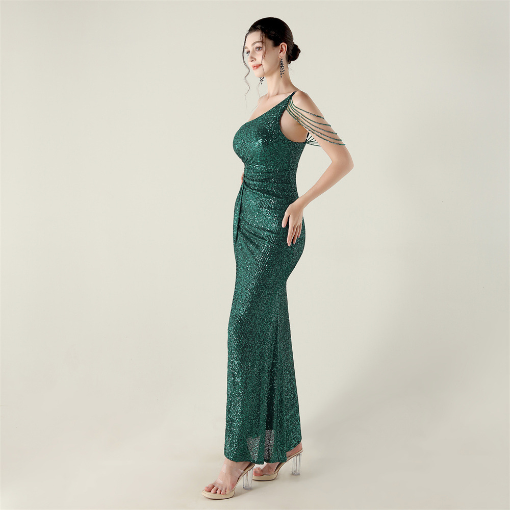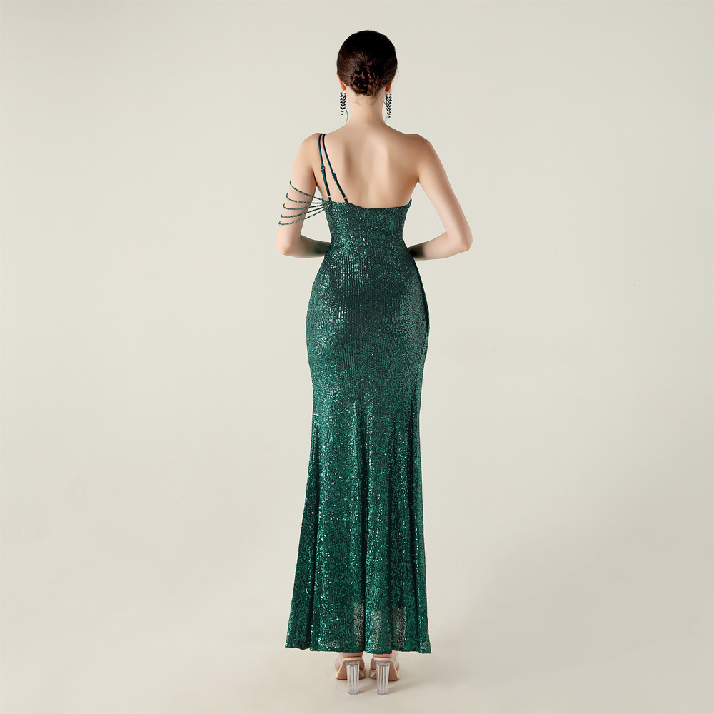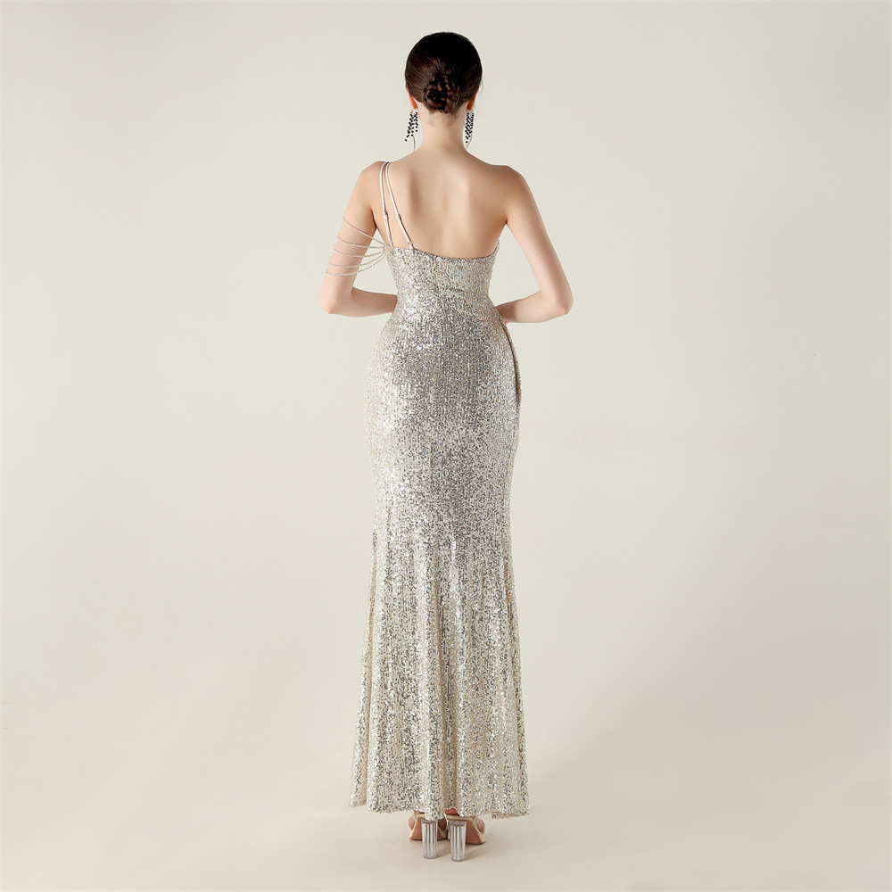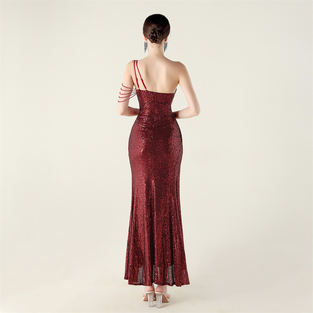 This Women One-Shoulder Slash Shoulder Sequined Beaded Chain Formal Party Evening Dress Design Made Of Good Quality polyester And Spandex Material, Which Is Stretchy, Durable And Comfortable. The Long Evening Dresses And Gowns Is Always The main Choice For All Kinds Of Parties, Cocktail, Prom, Events, And Dating Occasions. Evening Gowns At BamBam Comes With Huge Selections - Sequins, Beaded, Satin, Velvet, Lace.... When You Need retail Evening Dresses, BamBam retail Women Garment Online Shop Is Your One-Stop Online Shopping Choice.