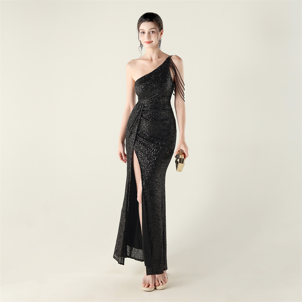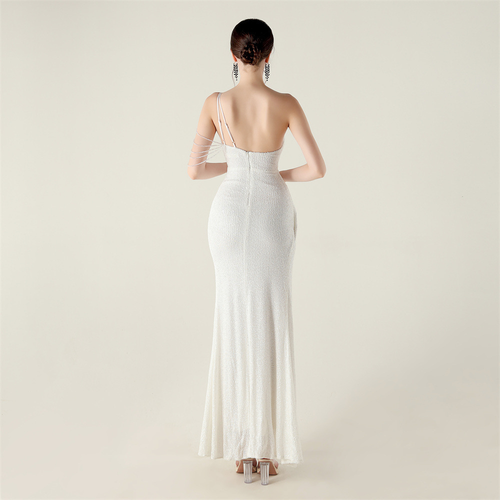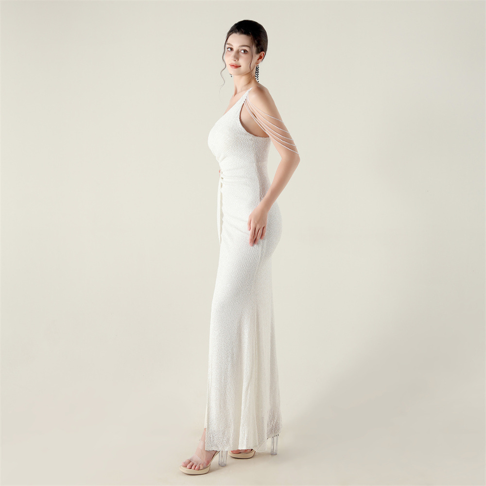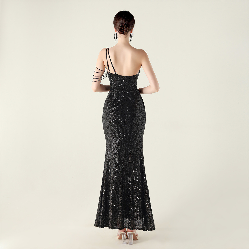 This Women One-Shoulder Slash Shoulder Sequined Beaded Chain Formal Party Evening Dress Design Made Of Good Quality polyester And Spandex Material, Which Is Stretchy, Durable And Comfortable. The Long Evening Dresses And Gowns Is Always The main Choice For All Kinds Of Parties, Cocktail, Prom, Events, And Dating Occasions. Evening Gowns At BamBam Comes With Huge Selections - Sequins, Beaded, Satin, Velvet, Lace.... When You Need retail Evening Dresses, BamBam retail Women Garment Online Shop Is Your One-Stop Online Shopping Choice.