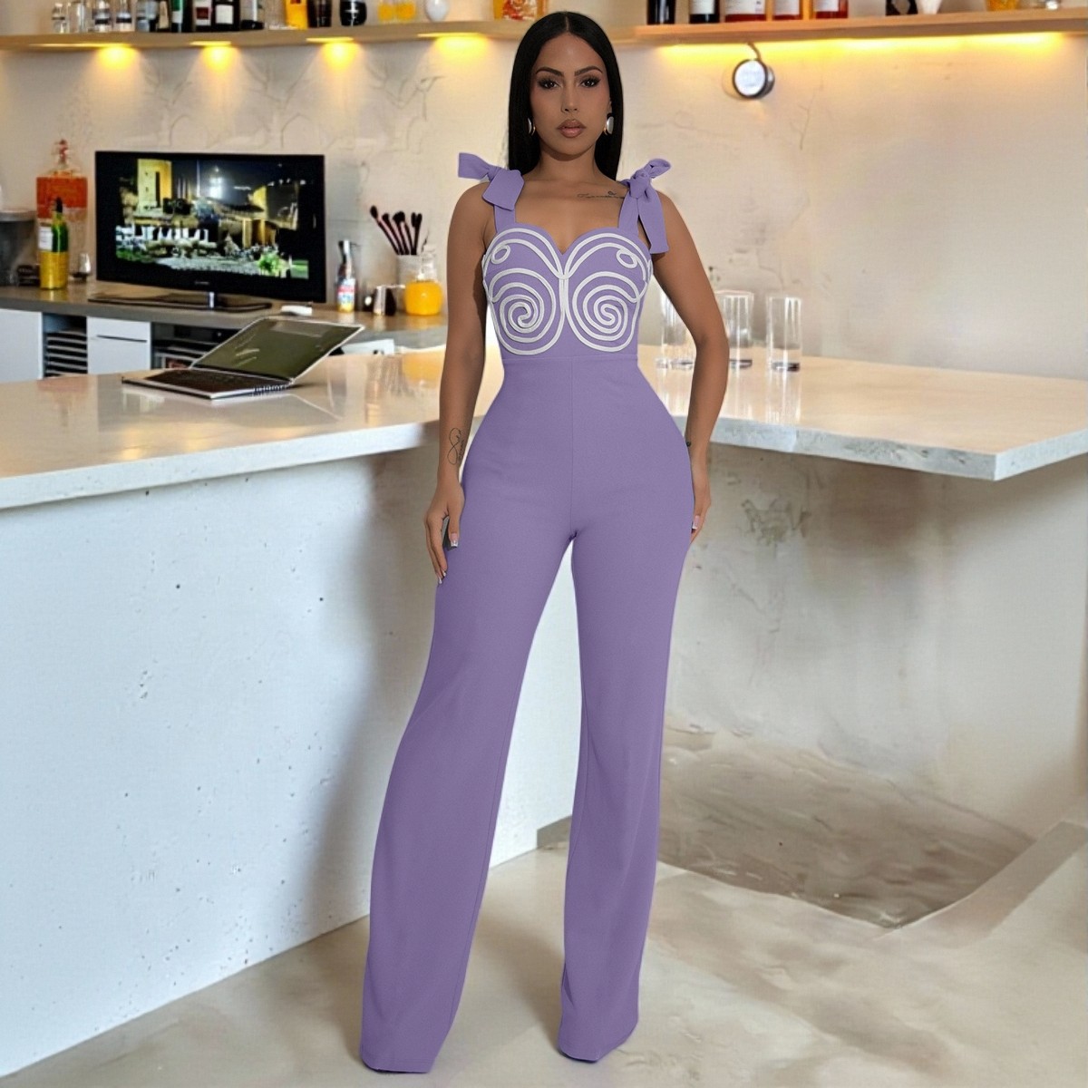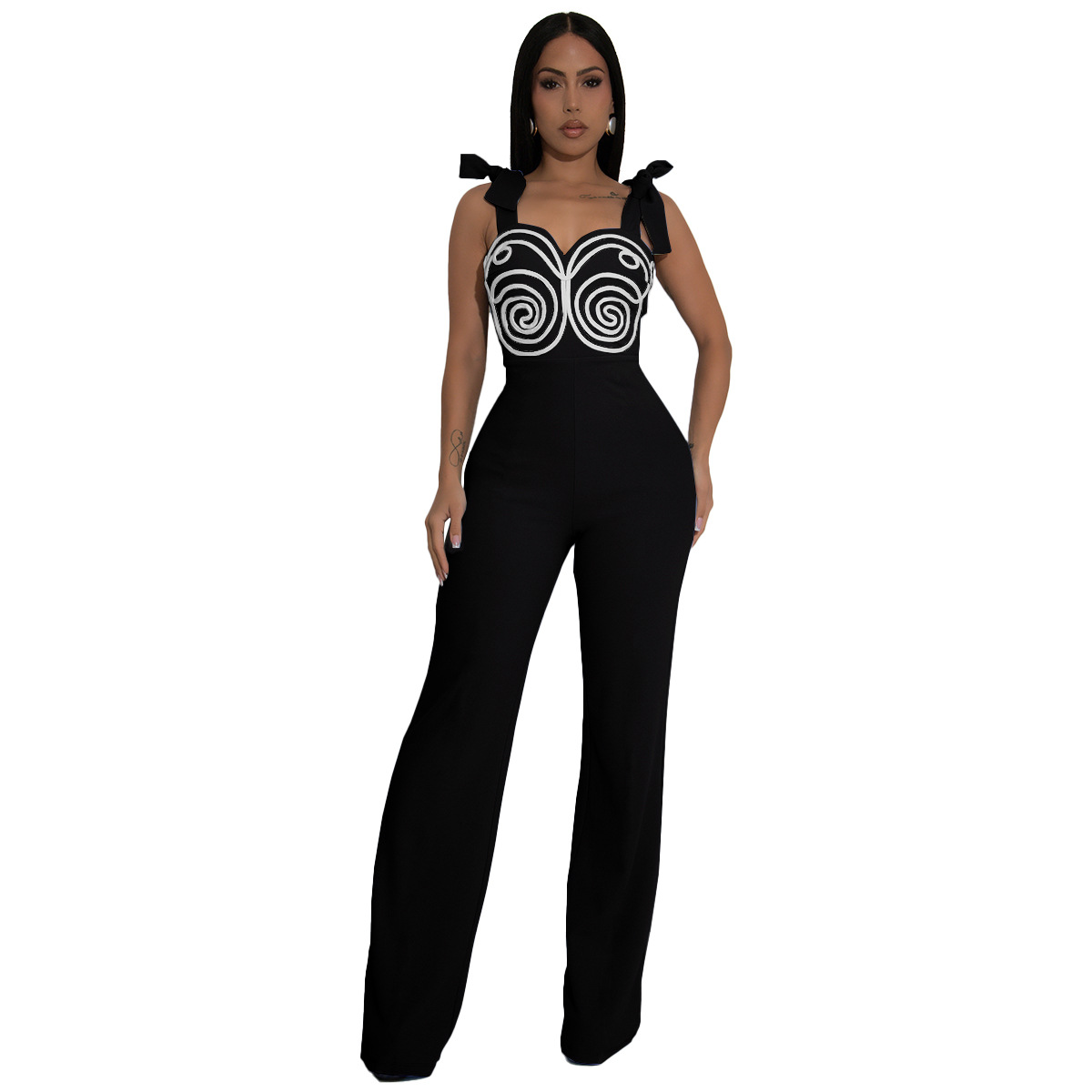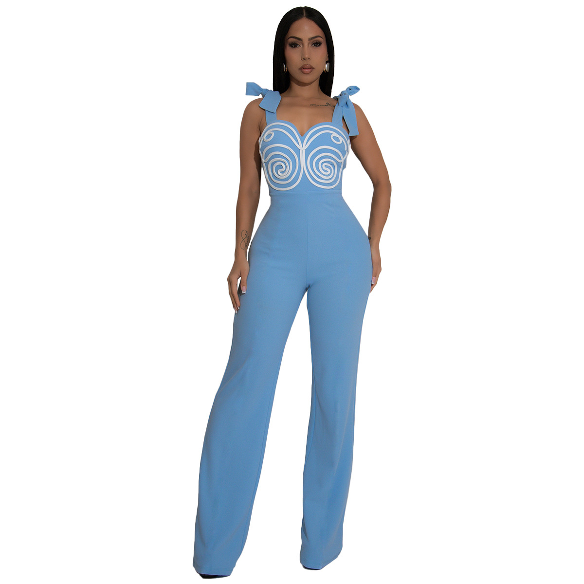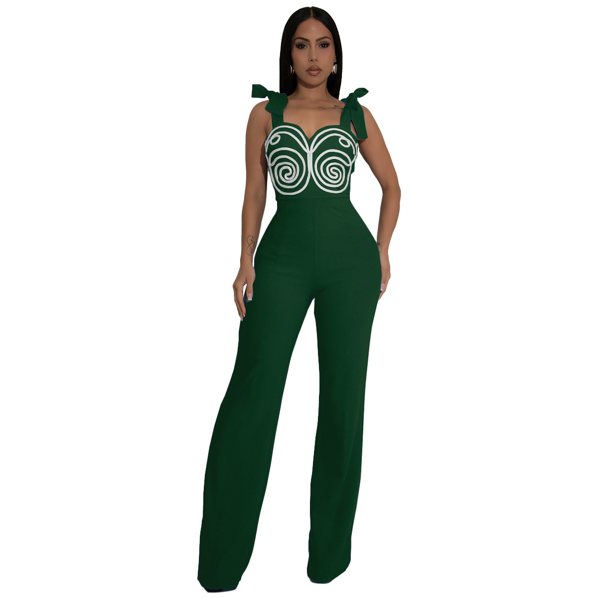 This Women Party Geometric Ribbon Embroidered Jumpsuit Design Made Of High Quality Polyster And Spandex Material. It Is Stretchy, Durable And Comfortable. Affordable Sexy Jumpsuits For Women Has Long Been a Party Favorite. BamBam provides a Rich selection Of Sequin, Beaded, See Through Mesh, Leopard, Floral Lace, Leather, Velvet, Tight And Fitted retail Jumpsuit Without Moq Limit.