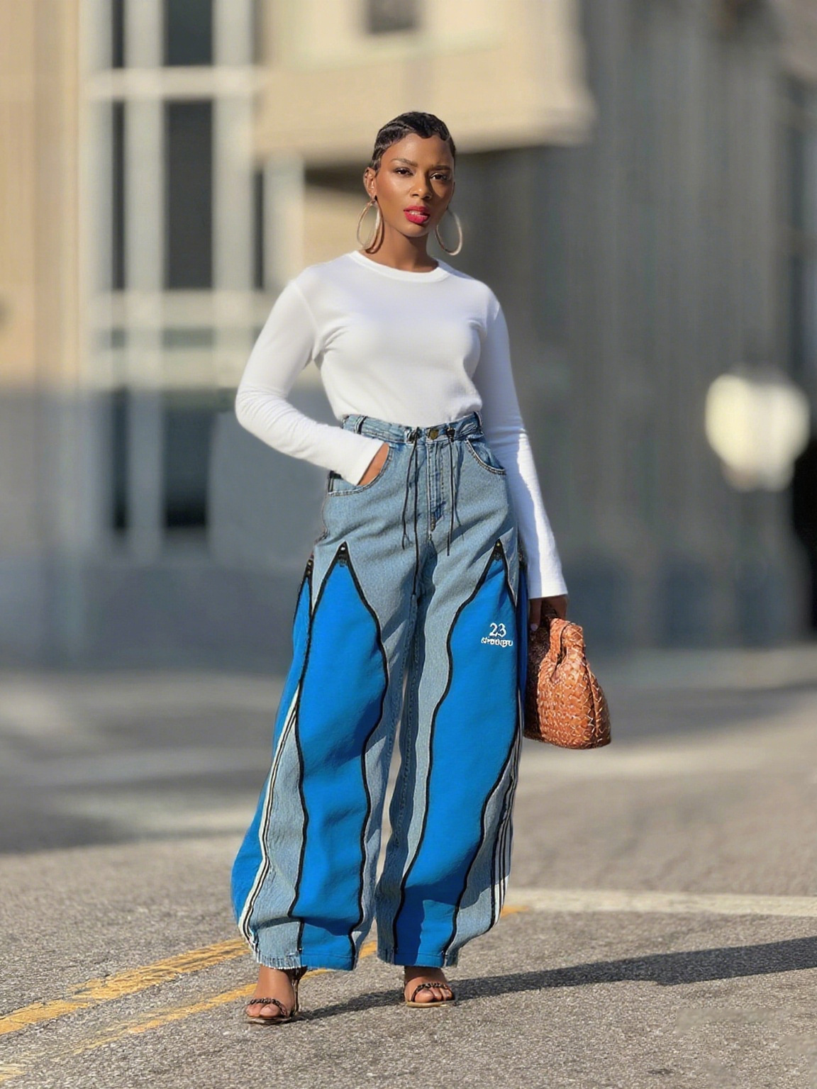 This Women Patchwork Contrast Zipper Denim Wide-Leg Pants Design Made Of Durable And Stretchy Jeans Fabric. It Is a Must-Have Item For everyday use. Trendy retail Jeans Is a Indispensable Item For Everyday Fashion. Women’s Jeans With High Waist Is a Must Have trouser/pant that helps bring the grace of shape of your legs out even more and fits perfectly snugging your thighs and body gracefully. Grab a Must Have High Waist Jeans retail For Your Closet, Just Choose Different Matching Tops To stay in control of Every Occasion Easily.