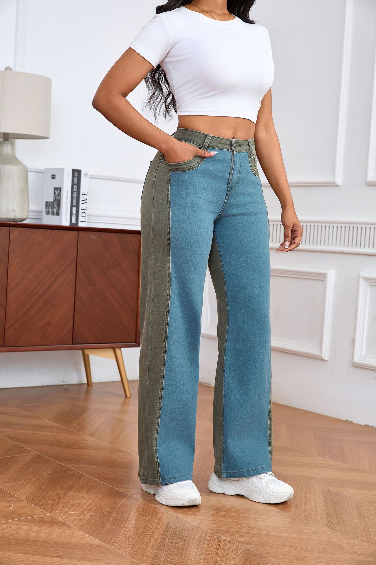 This Women Patchwork Wide-Leg Denim Pants, Fall American Style Contrast Color Pants Design Made Of Durable And Stretchy Jeans Fabric. It Is a Must-Have Item For everyday use. Trendy retail Jeans Is a Indispensable Item For Everyday Fashion. Women’s Jeans With High Waist Is a Must Have trouser/pant that helps bring the grace of shape of your legs out even more and fits perfectly snugging your thighs and body gracefully. Grab a Must Have High Waist Jeans retail For Your Closet, Just Choose Different Matching Tops To stay in control of Every Occasion Easily.