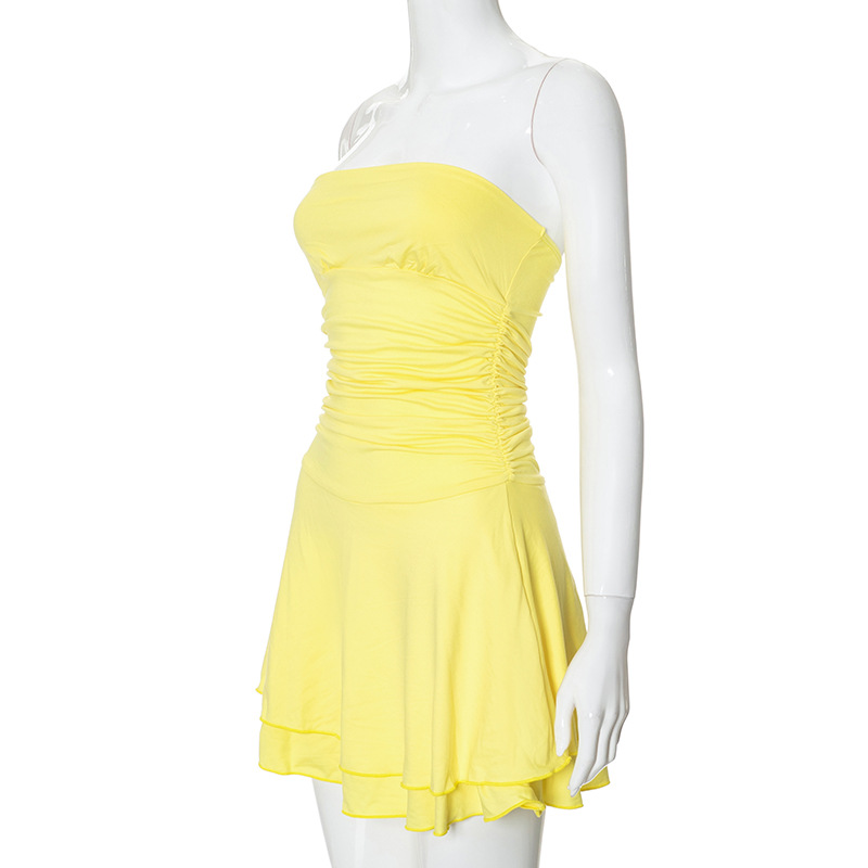This Women Pleated Skirt Solid Strapless Dress Design Made Of High Quality polyester And Spandex Material. It Is Stretchy, Durable And Comfortable. Casual Dresses With Long Sleeves Can Not Only Be Worn As Outerwear In Spring And Autumn, But Also Matching a Jacket In Winter, It Is a Must Have Item For Every Season. Grab Really Great Buy Casual Dresses For Women And Grow Your Business. No Moq In BamBam.